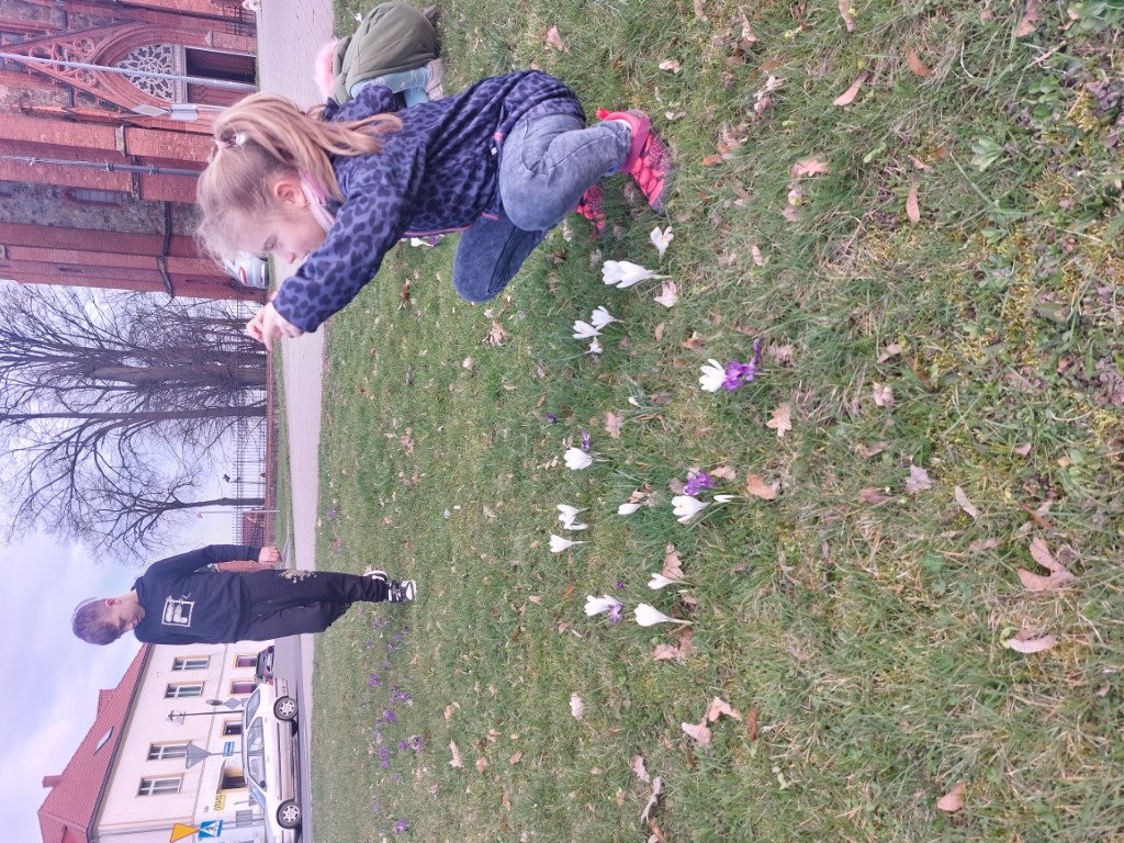 Tym razem, ku zaskoczeniu dzieci, zajęcia rozpoczęliśmy od spaceru. Trzeba przyznać, że to był dobry pomysł. Zobaczyć wiosnę, poczuć jej zapach, dotknąć jej delikatności. Niby nic, a jednak tak wiele. Cudownie było dostrzec piękno w drobiazgach. A przy okazji tak zwyczajnie porozmawiać i poruszyć wiele tematów…Tych, na które nie zawsze mamy wystarczająco czasu. Spacer był owocny. Wiosna odnaleziona! I chociaż to dopiero jej początek…To dobrze wiemy, że za chwilkę ta wyjątkowa pora roku swoim urokiem zachwyci chyba wszystkich. Nas już oczarowała.