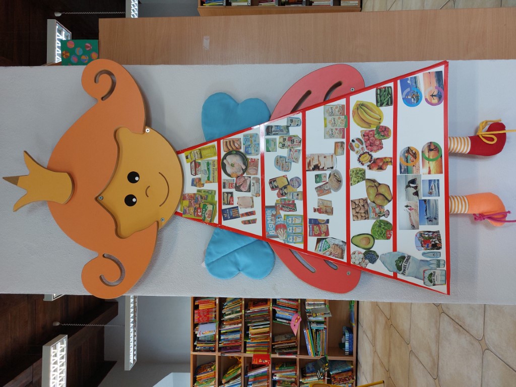 BiblioSMYKI obejrzały krótki filmik animowany pt. „Zuzka i piramida żywienia”, a następnie „nakarmiły” naszą biblioteczną Zuzkę produktami wyciętymi z gazetki. W ramach tanecznej pantomimy wykonaliśmy sałatkę owocową do utworu Gustavo Lima „Balada”. Na zakończenie dzieci stworzyły z plasteliny kolorowe kanapki, kaszki, płatki, owoce – czyli to, co najchętniej jedzą na śniadanie. Ślinka nam ciekła 😊