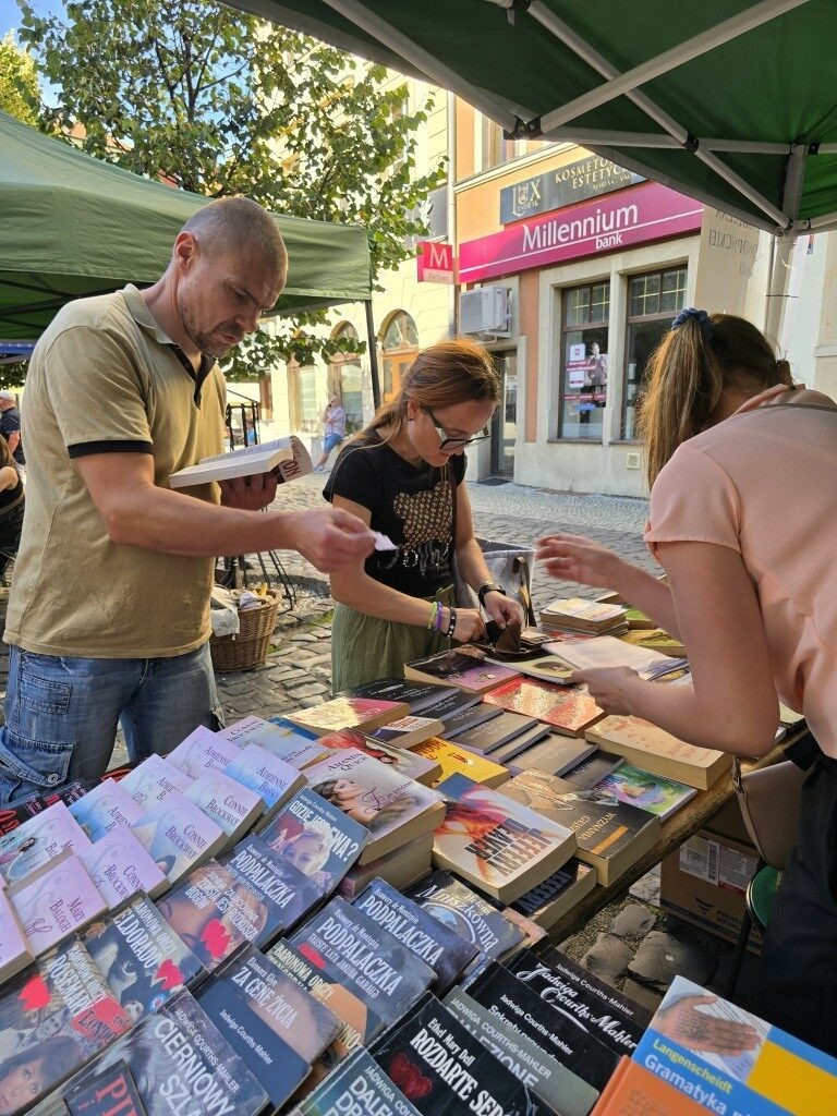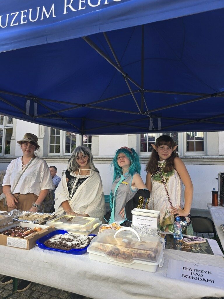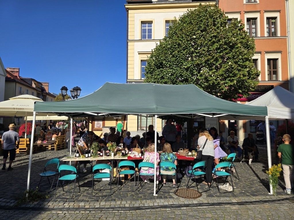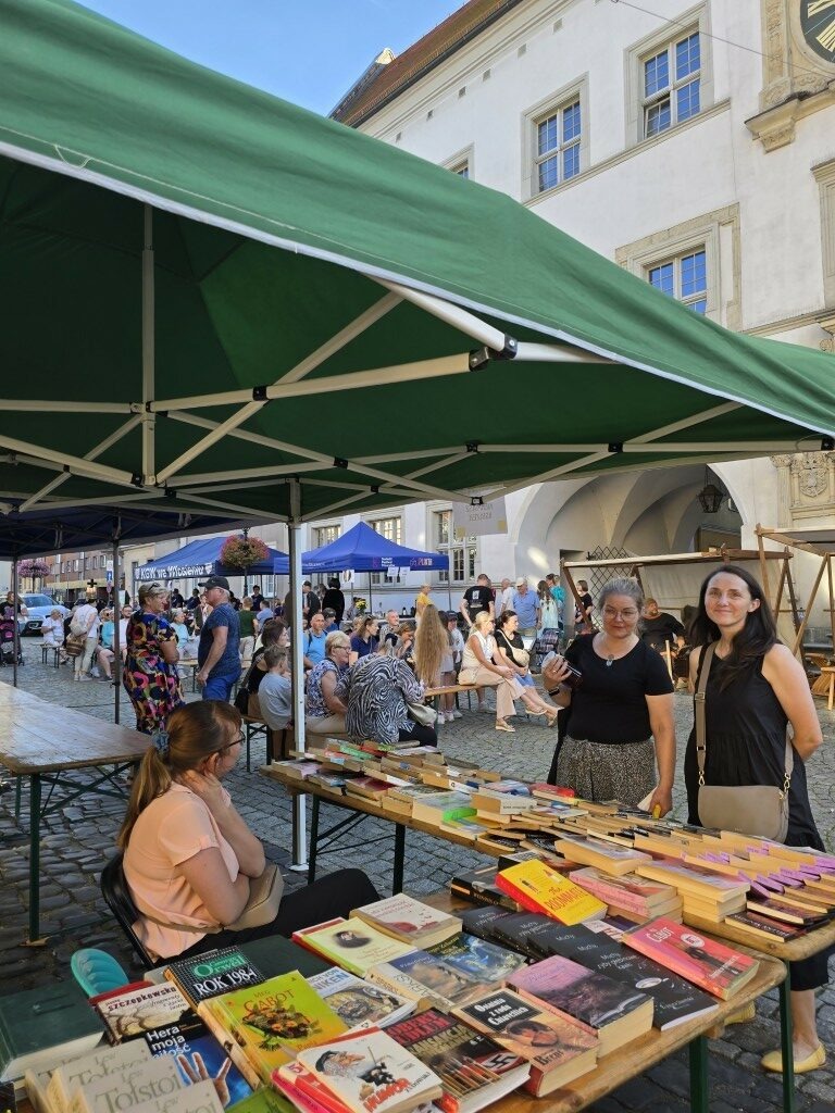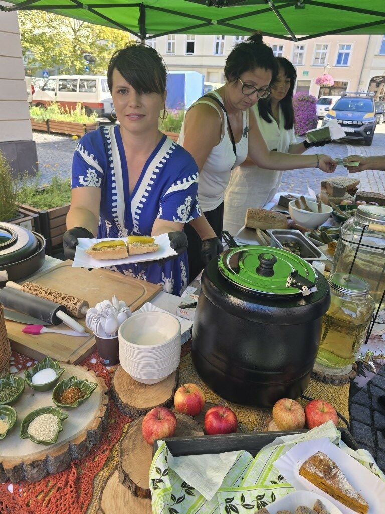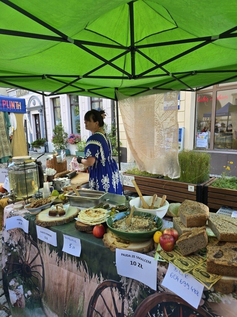 Przy tylu atrakcjach nie obyło się też bez smacznego jadła. Wspaniałe zapachy prowadziły do stoisk kulinarnych. Klub Kobiet MykobieTy przygotował, pieczone na miejscu, podpłomyki. Serwował zupę cebulową oraz raczył Klasztornym Chlebem Magdalenek i Klasztornymi Piernikami (przepisy inspirowane średniowieczną kuchnią klasztorną, również lubańskich sióstr Magdalenek oraz tradycyjnymi produktami Górnych Łużyc i Dolnego Śląska, stworzonymi przez Regionalne Centrum Edukacji Ekologicznej). Stoisko Koła Gospodyń Wiejskich z Włosienia uginało się od dobroci, od bigosu, po gofry. Nawet Teatrzyk nad Schodami postanowił upiec wspaniałe wypieki, by nazbierać w sakwę na swoje wydatki. Biblioteczna kawa i herbata pasowały do tego idealnie. Tak samo jak książki, kupione na przygotowanym przez nas kiermaszu.