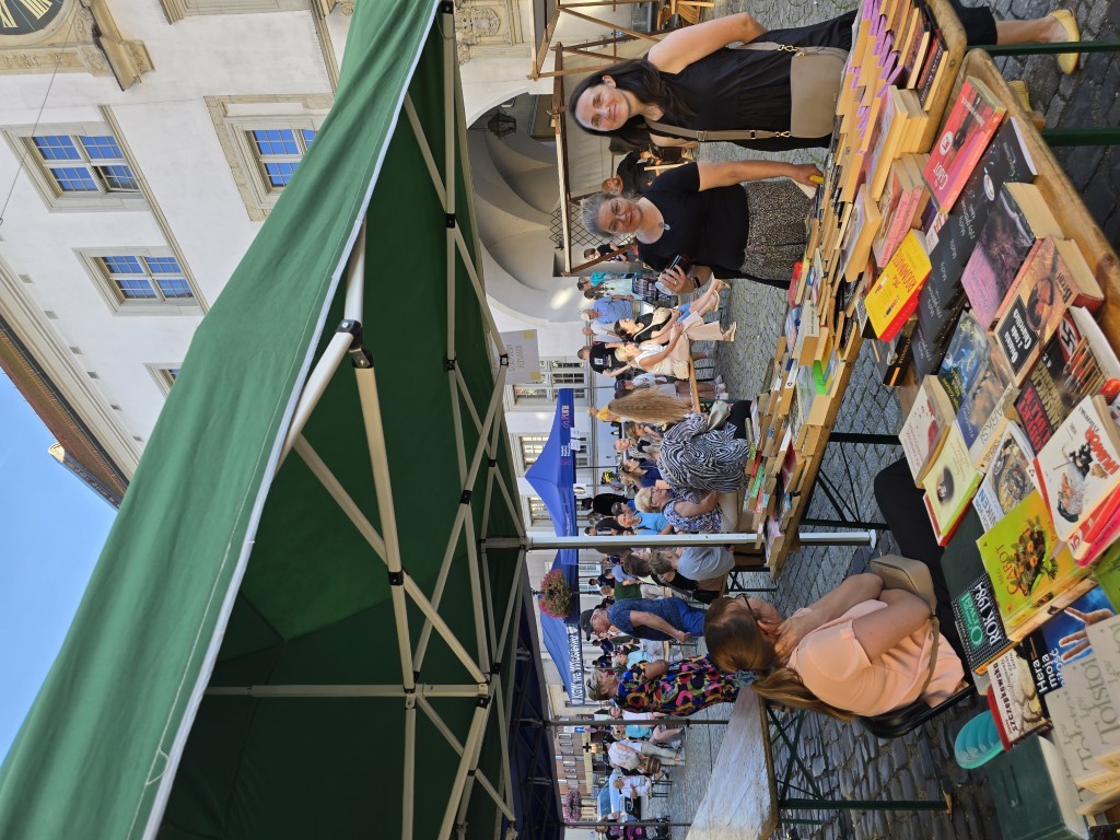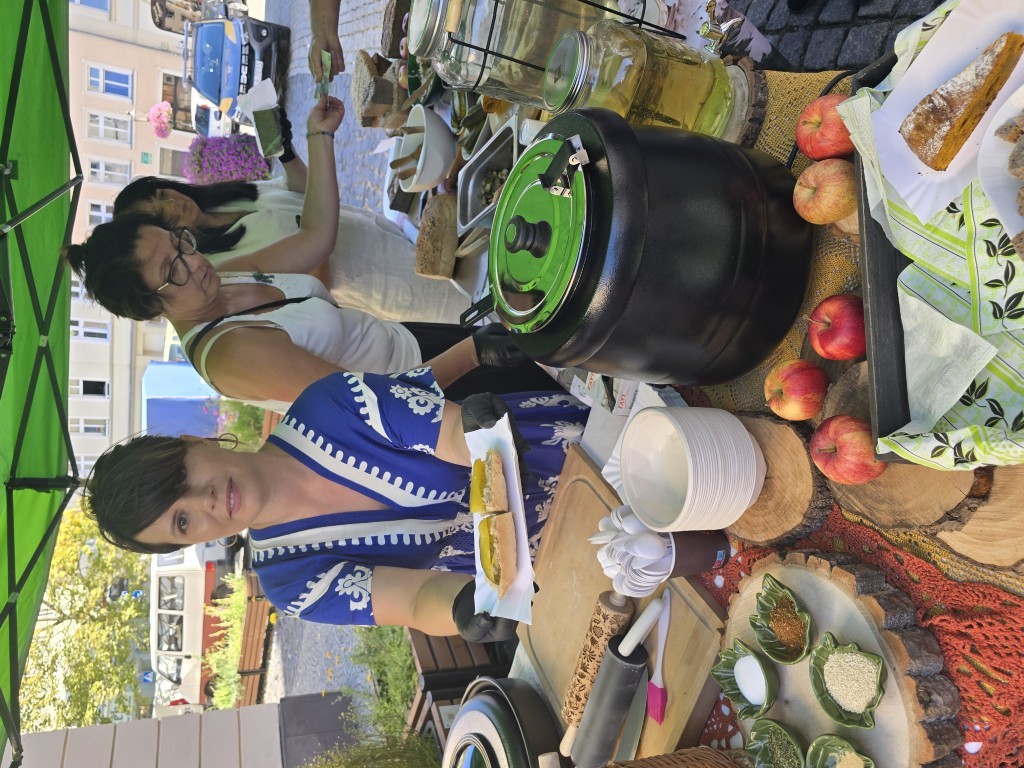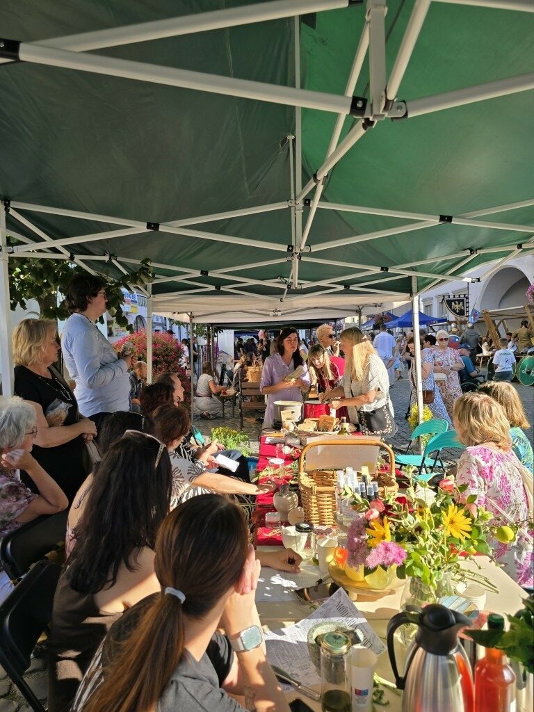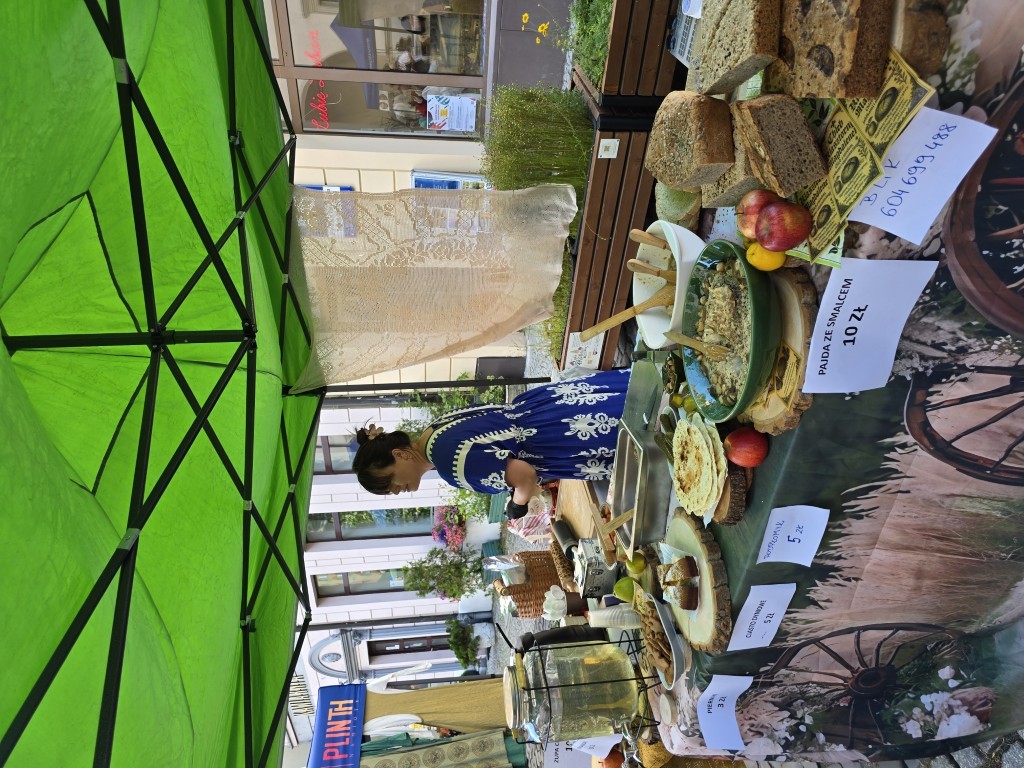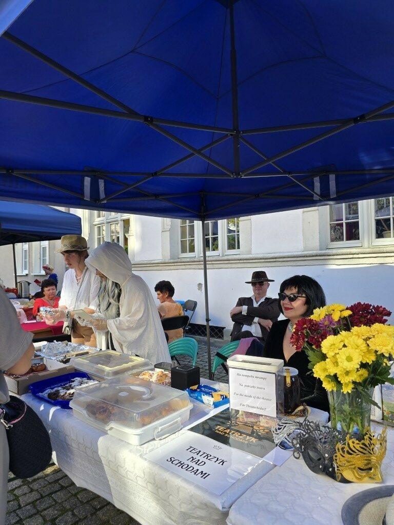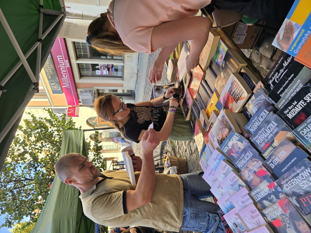 Przy tylu atrakcjach nie obyło się też bez smacznego jadła. Wspaniałe zapachy prowadziły do stoisk kulinarnych. Klub Kobiet MykobieTy przygotował, pieczone na miejscu, podpłomyki. Serwował zupę cebulową oraz raczył Klasztornym Chlebem Magdalenek i Klasztornymi Piernikami (przepisy inspirowane średniowieczną kuchnią klasztorną, również lubańskich sióstr Magdalenek oraz tradycyjnymi produktami Górnych Łużyc i Dolnego Śląska, stworzonymi przez Regionalne Centrum Edukacji Ekologicznej). Stoisko Koła Gospodyń Wiejskich z Włosienia uginało się od dobroci, od bigosu, po gofry. Nawet Teatrzyk nad Schodami postanowił upiec wspaniałe wypieki, by nazbierać w sakwę na swoje wydatki. Biblioteczna kawa i herbata pasowały do tego idealnie. Tak samo jak książki, kupione na przygotowanym przez nas kiermaszu.