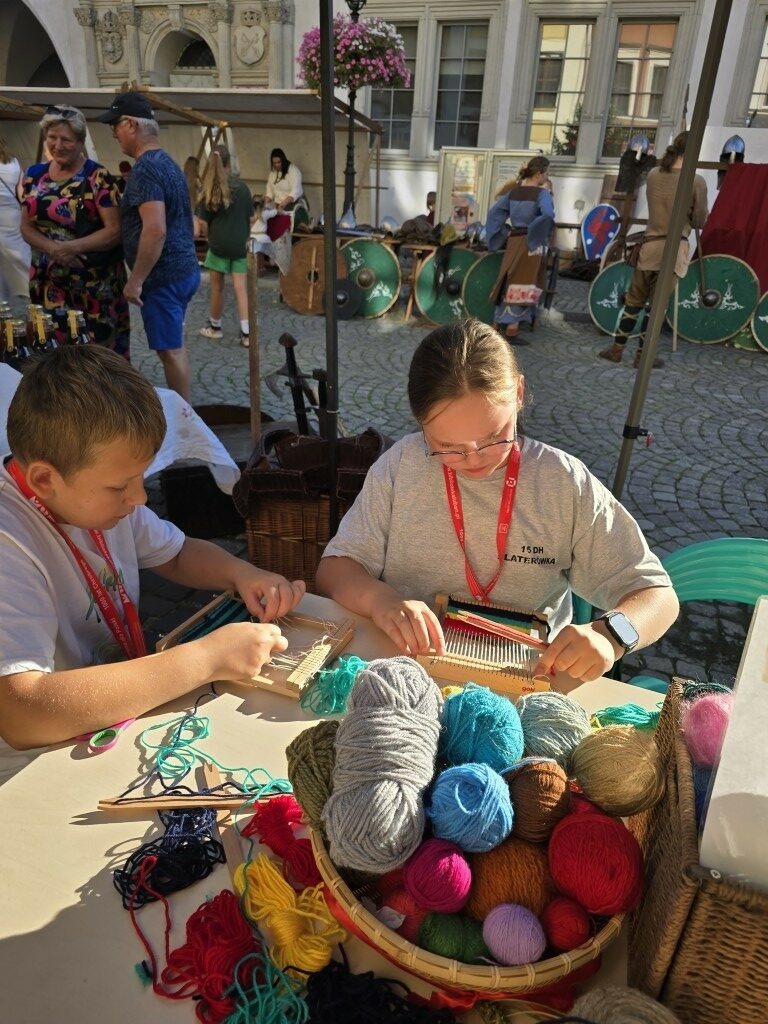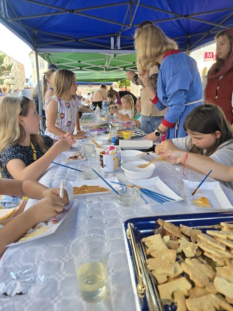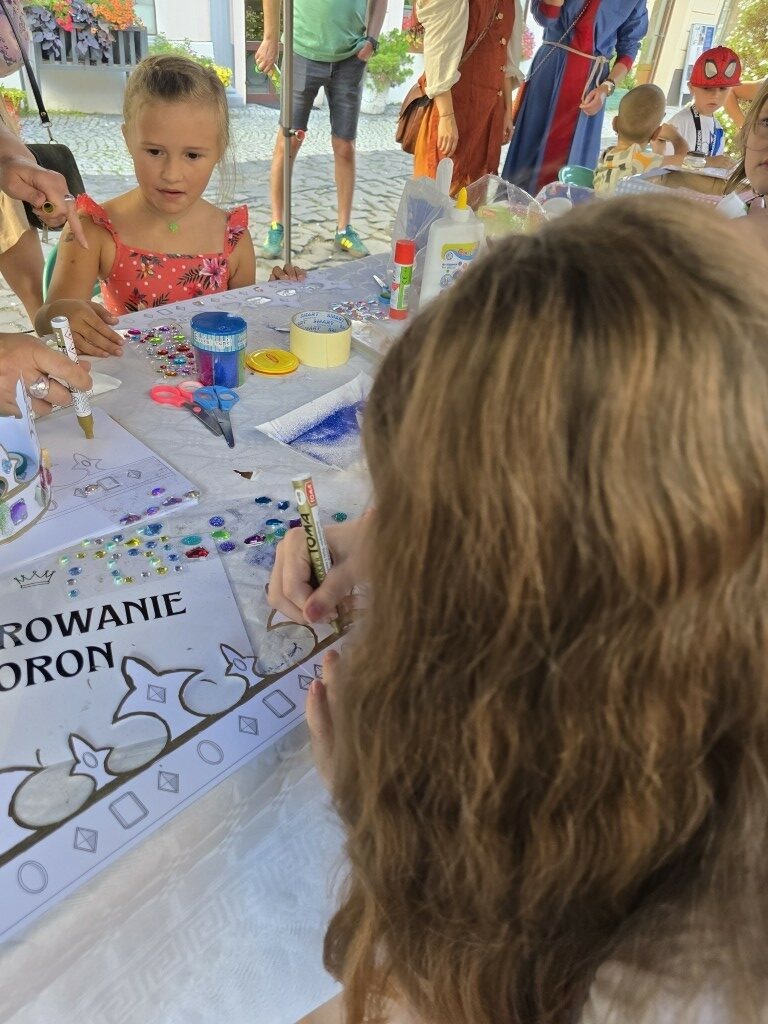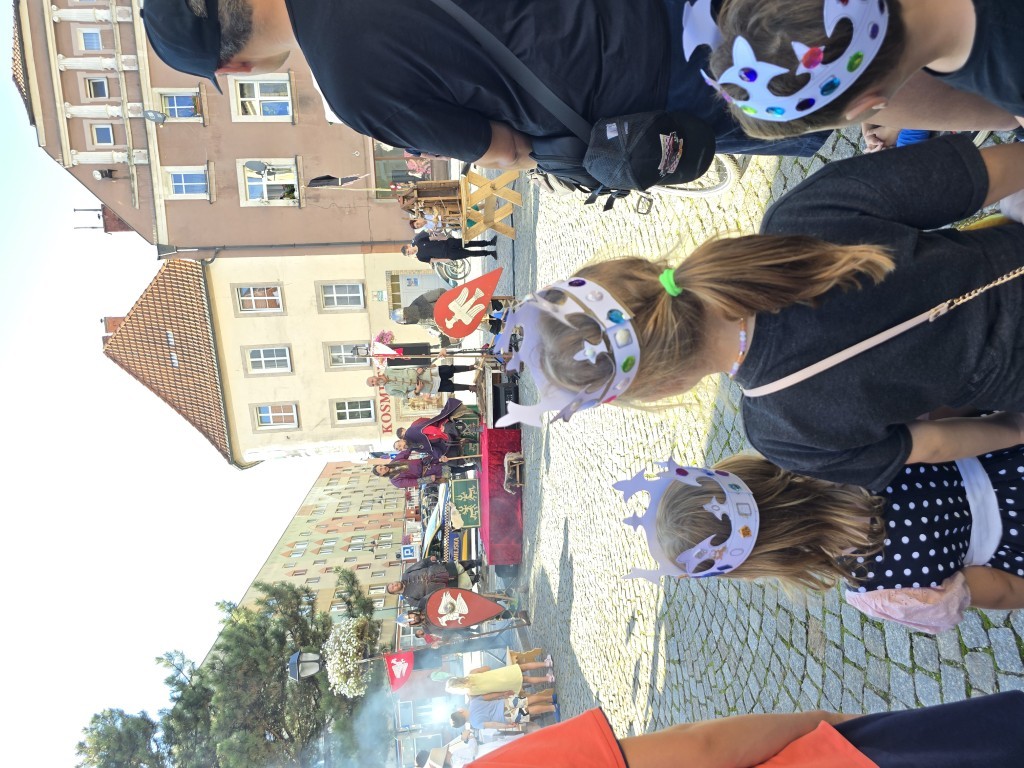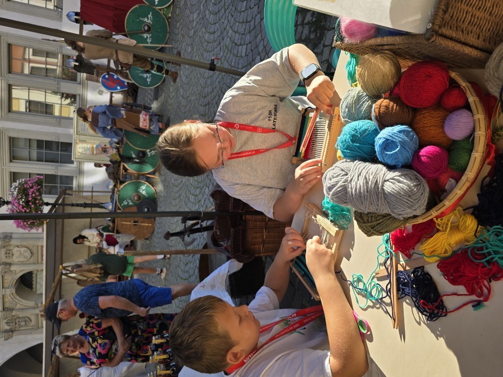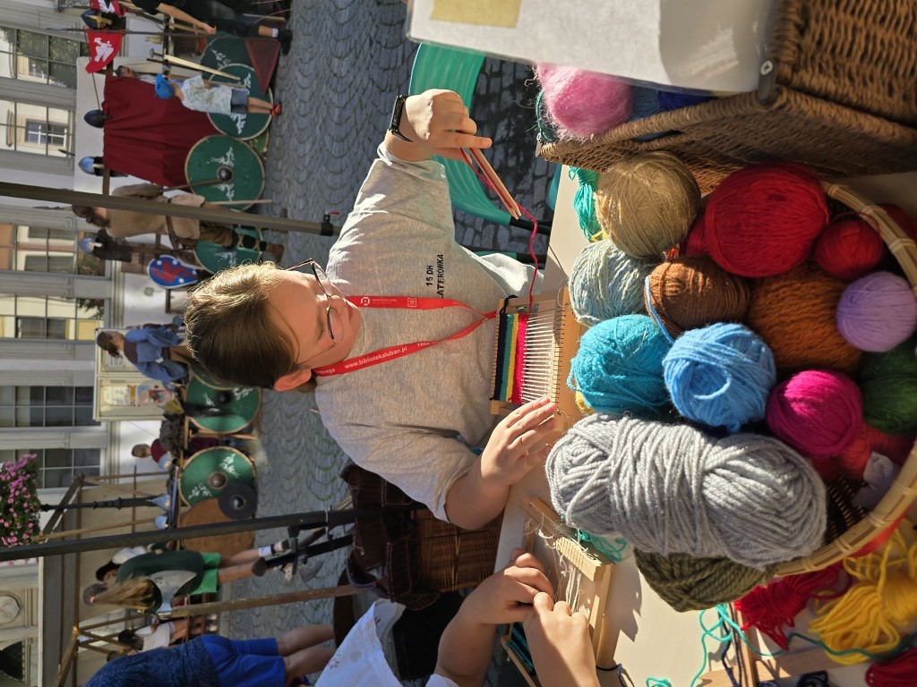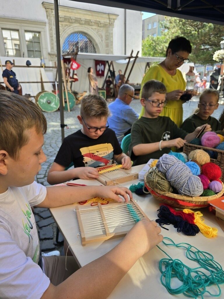 Pod naszymi namiotami raj miały dzieci, które mogły nauczyć się tkactwa na małych krosnach lub ozdobić ciasteczkowe korony, zamki lub jednorożce. A także przygotować własnoręcznie zrobione korony. Pokazaliśmy im także zabawy i gry plebejskie – rzut podkową, strzelanie z łuku, rzucanie do celu, walki workami ze słomą, skoki w workach. Sprawdzaliśmy także ich podstawową wiedzę historyczną. Dla najlepszych przygotowaliśmy cenne nagrody!