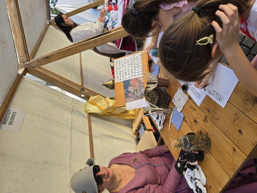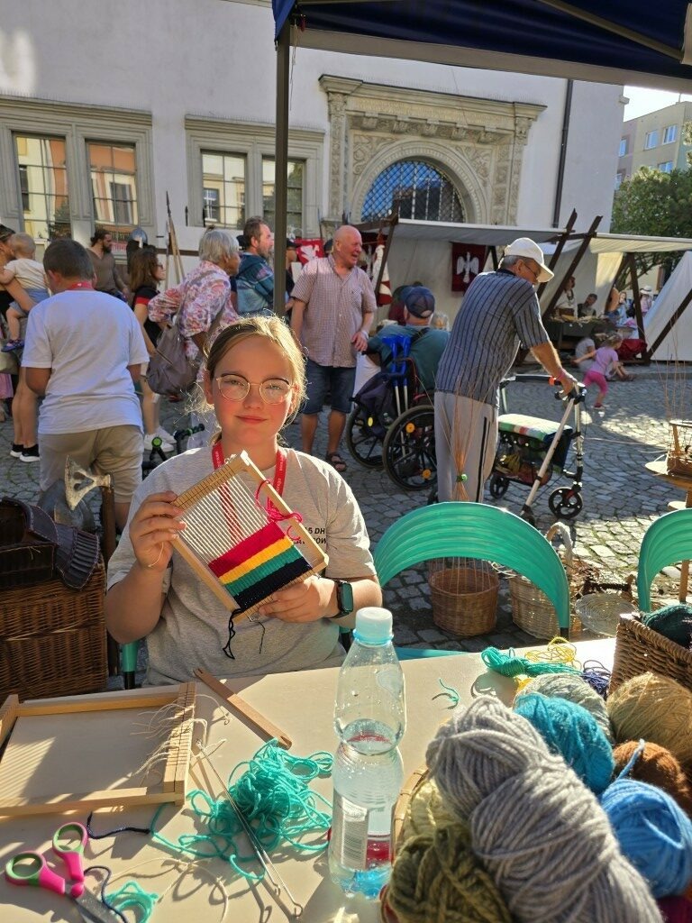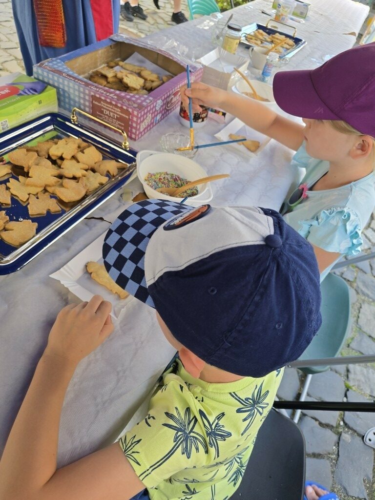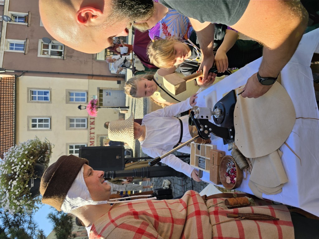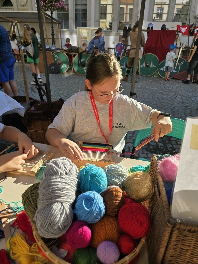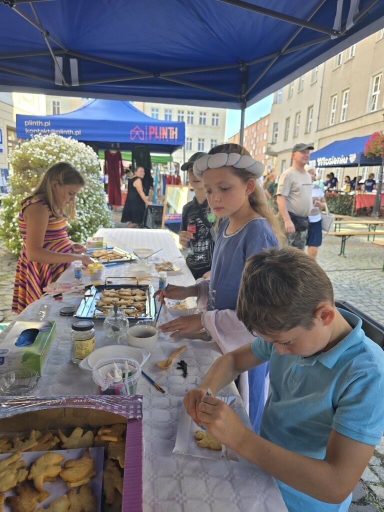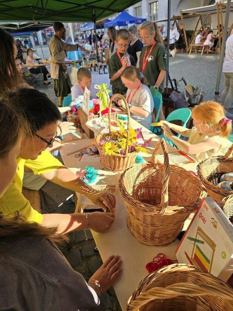 Pod naszymi namiotami raj miały dzieci, które mogły nauczyć się tkactwa na małych krosnach lub ozdobić ciasteczkowe korony, zamki lub jednorożce. A także przygotować własnoręcznie zrobione korony. Pokazaliśmy im także zabawy i gry plebejskie – rzut podkową, strzelanie z łuku, rzucanie do celu, walki workami ze słomą, skoki w workach. Sprawdzaliśmy także ich podstawową wiedzę historyczną. Dla najlepszych przygotowaliśmy cenne nagrody!