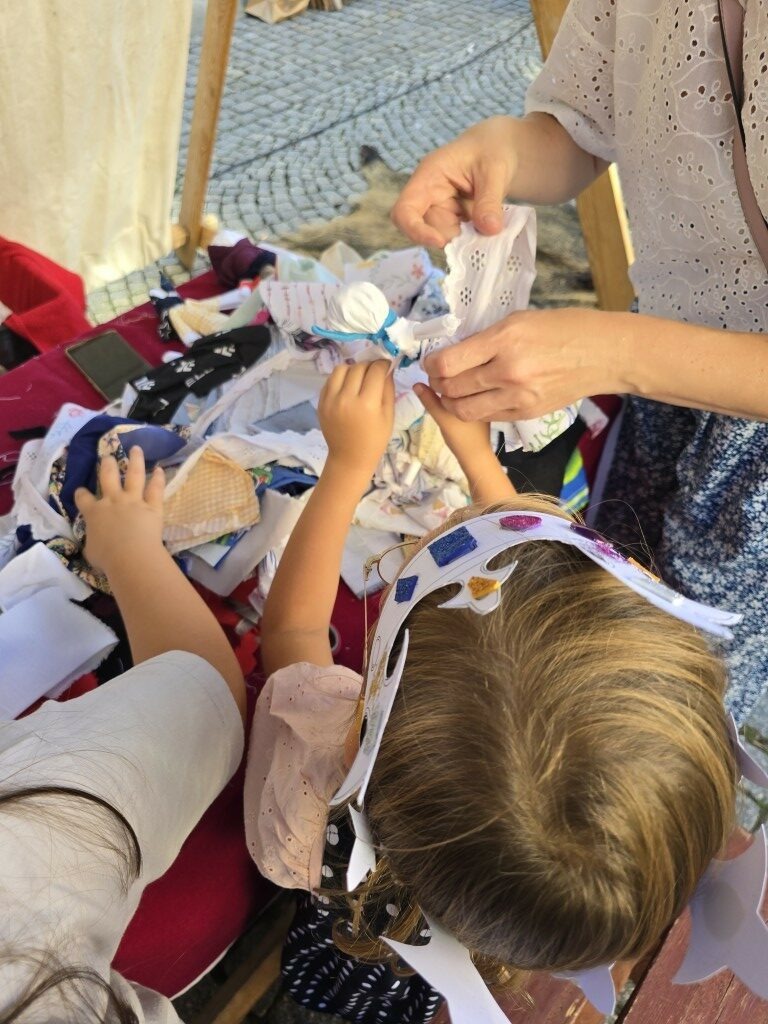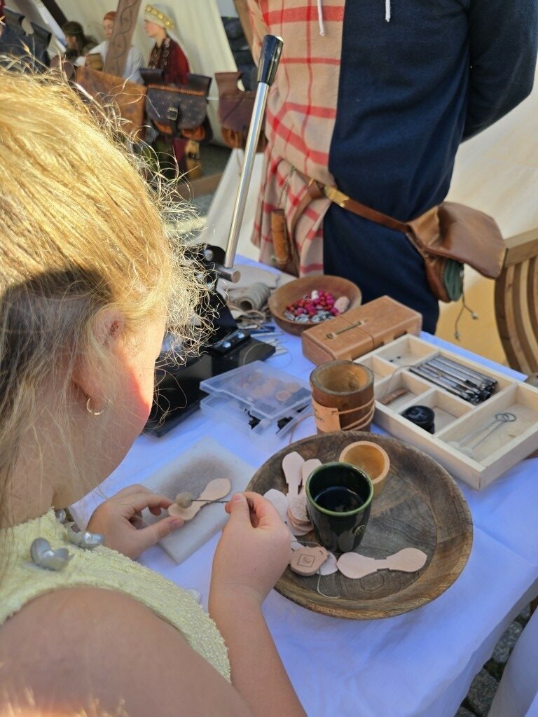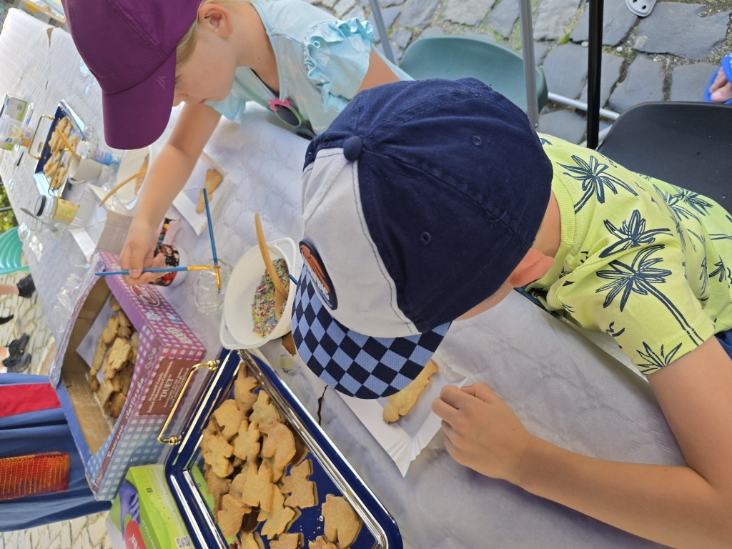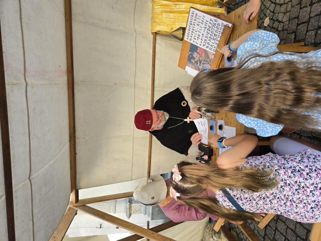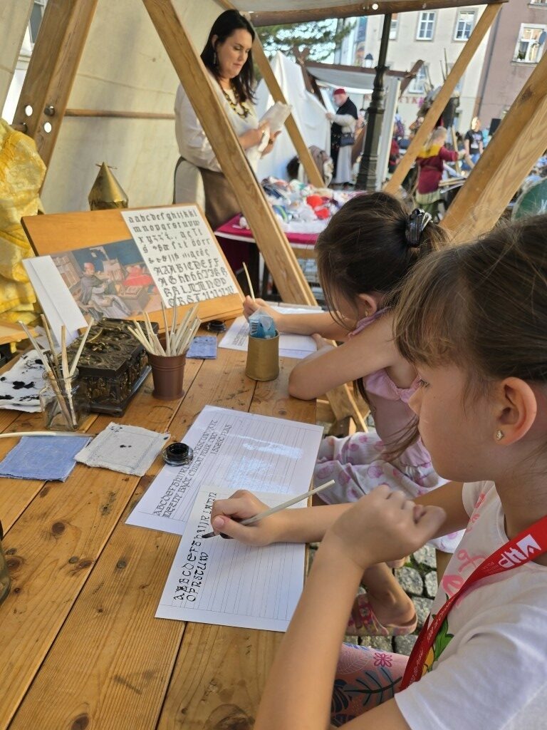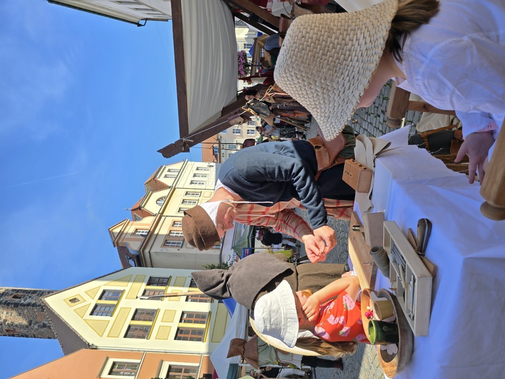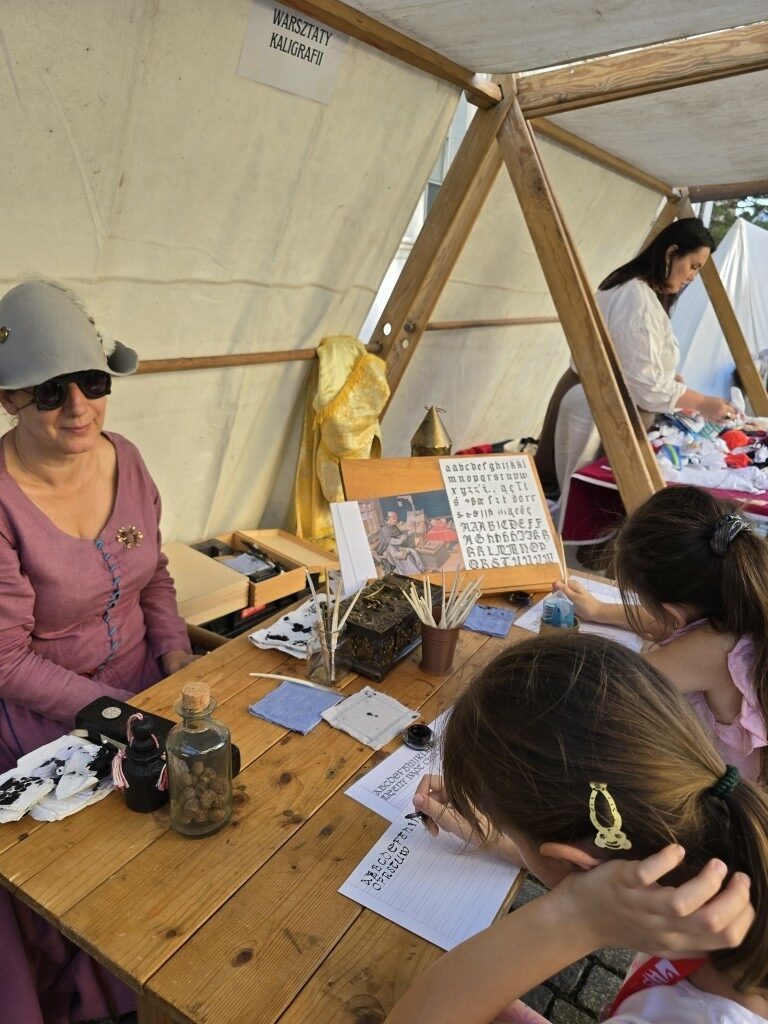 Pod naszymi namiotami raj miały dzieci, które mogły nauczyć się tkactwa na małych krosnach lub ozdobić ciasteczkowe korony, zamki lub jednorożce. A także przygotować własnoręcznie zrobione korony. Pokazaliśmy im także zabawy i gry plebejskie – rzut podkową, strzelanie z łuku, rzucanie do celu, walki workami ze słomą, skoki w workach. Sprawdzaliśmy także ich podstawową wiedzę historyczną. Dla najlepszych przygotowaliśmy cenne nagrody!