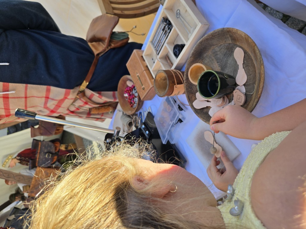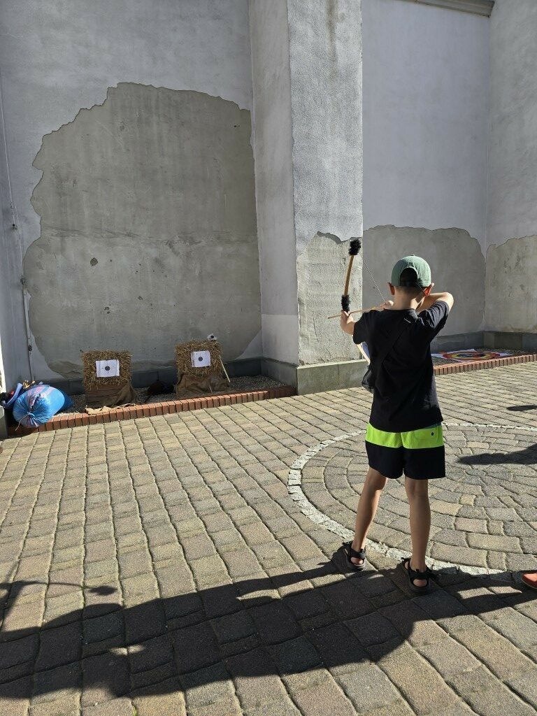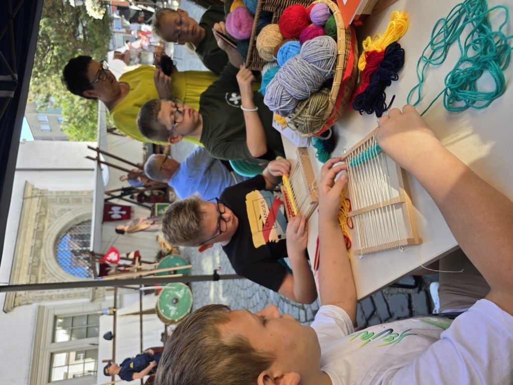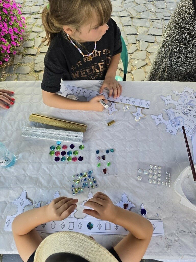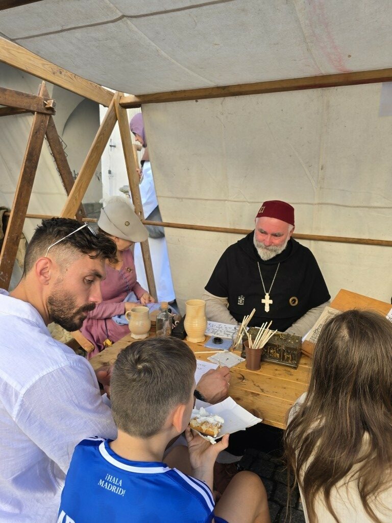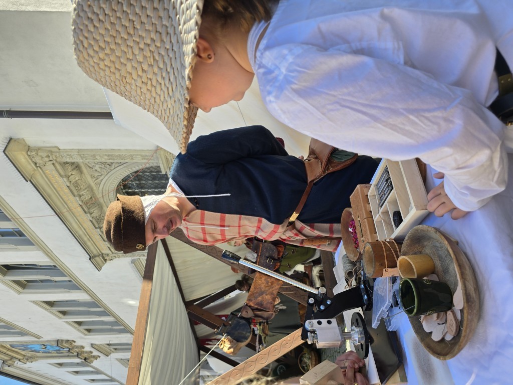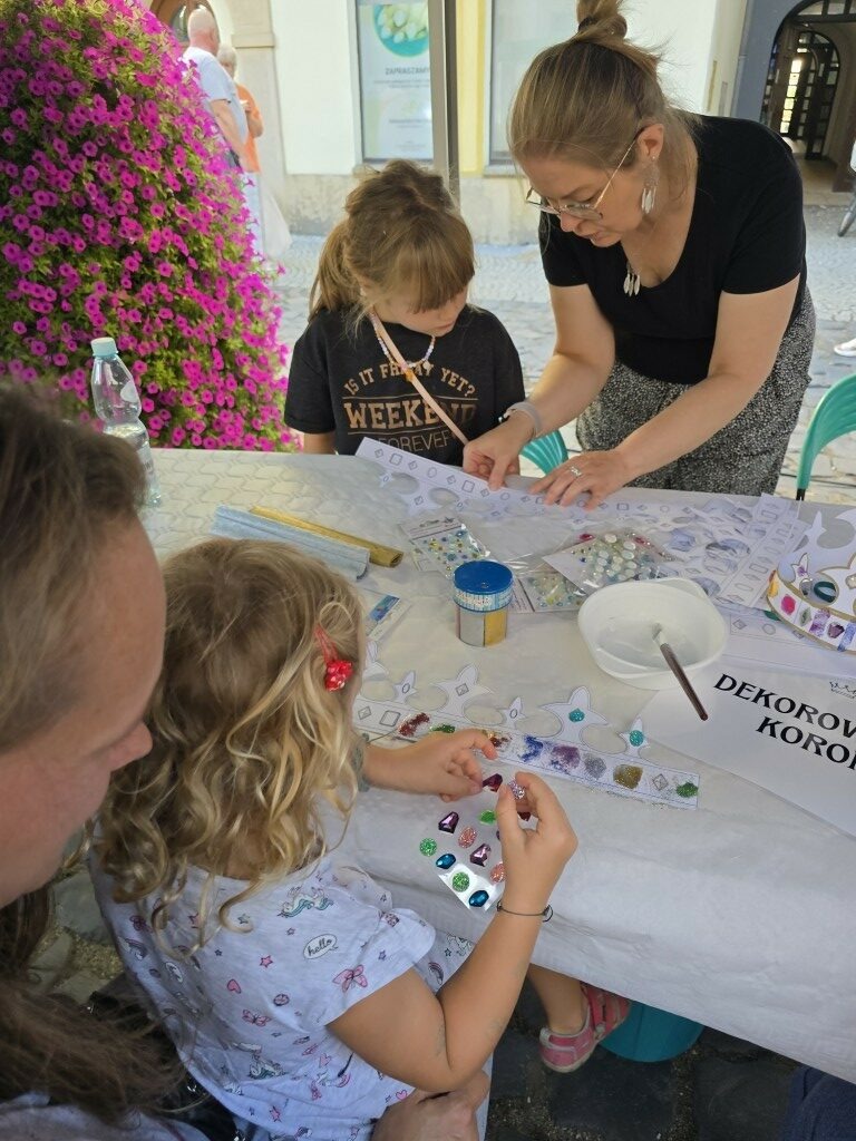 Pod naszymi namiotami raj miały dzieci, które mogły nauczyć się tkactwa na małych krosnach lub ozdobić ciasteczkowe korony, zamki lub jednorożce. A także przygotować własnoręcznie zrobione korony. Pokazaliśmy im także zabawy i gry plebejskie – rzut podkową, strzelanie z łuku, rzucanie do celu, walki workami ze słomą, skoki w workach. Sprawdzaliśmy także ich podstawową wiedzę historyczną. Dla najlepszych przygotowaliśmy cenne nagrody!