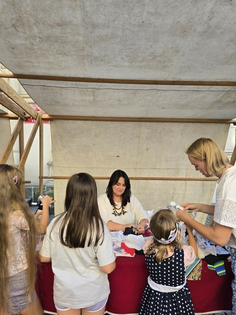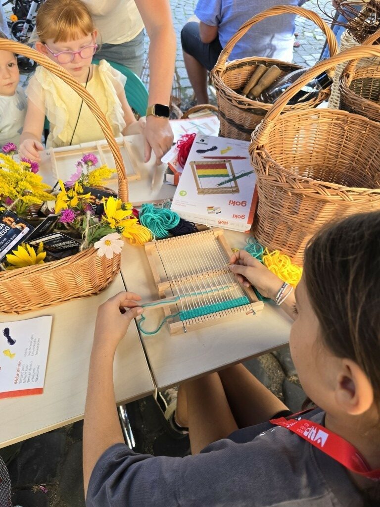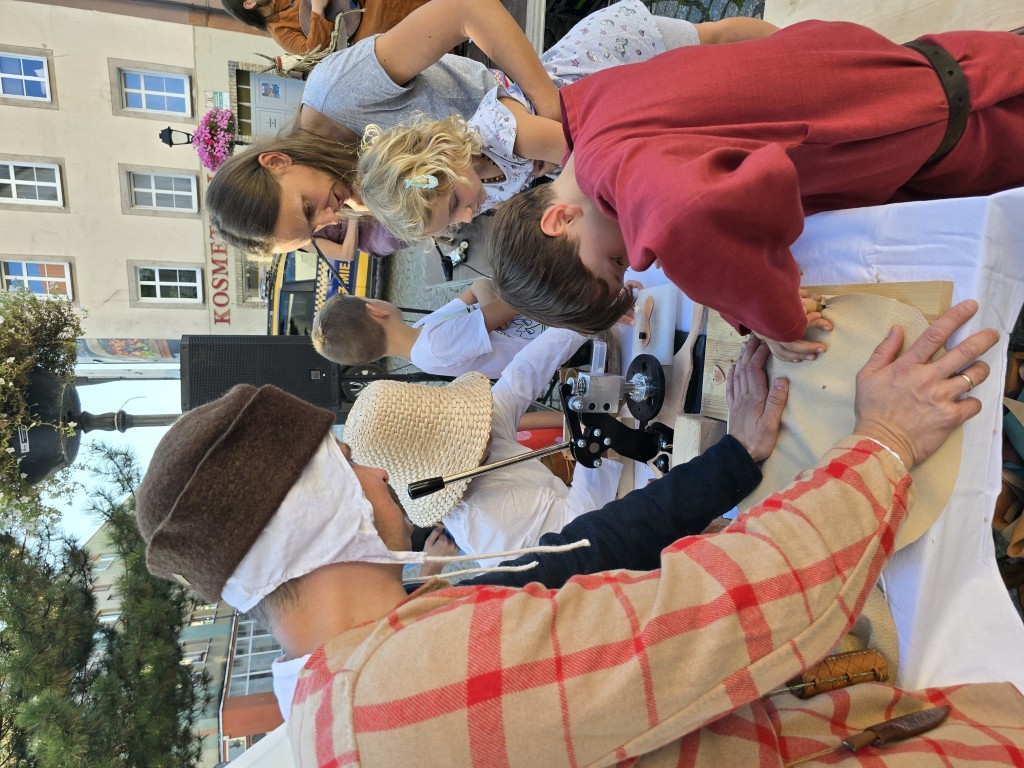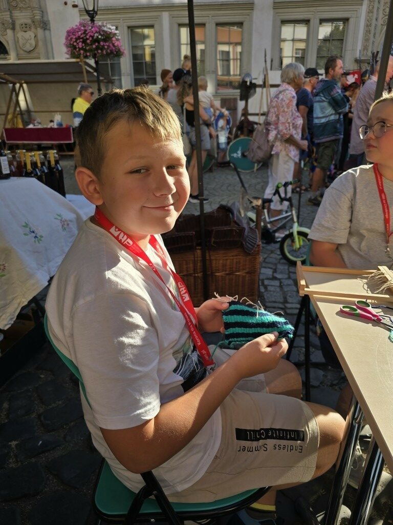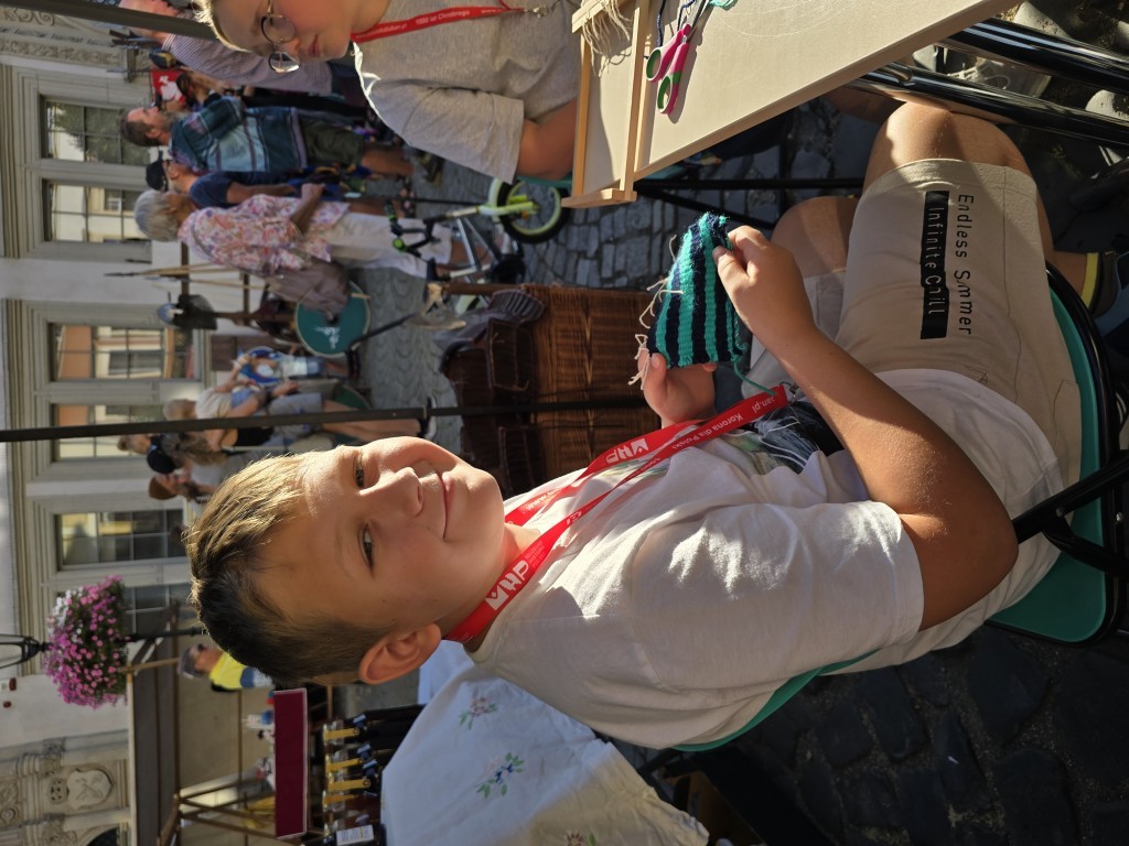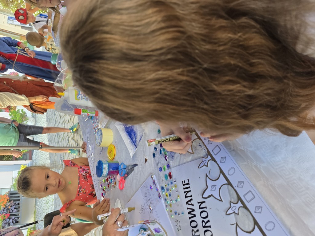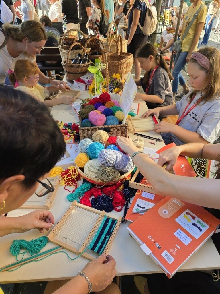 Pod naszymi namiotami raj miały dzieci, które mogły nauczyć się tkactwa na małych krosnach lub ozdobić ciasteczkowe korony, zamki lub jednorożce. A także przygotować własnoręcznie zrobione korony. Pokazaliśmy im także zabawy i gry plebejskie – rzut podkową, strzelanie z łuku, rzucanie do celu, walki workami ze słomą, skoki w workach. Sprawdzaliśmy także ich podstawową wiedzę historyczną. Dla najlepszych przygotowaliśmy cenne nagrody!