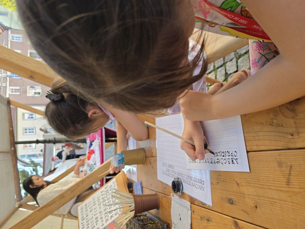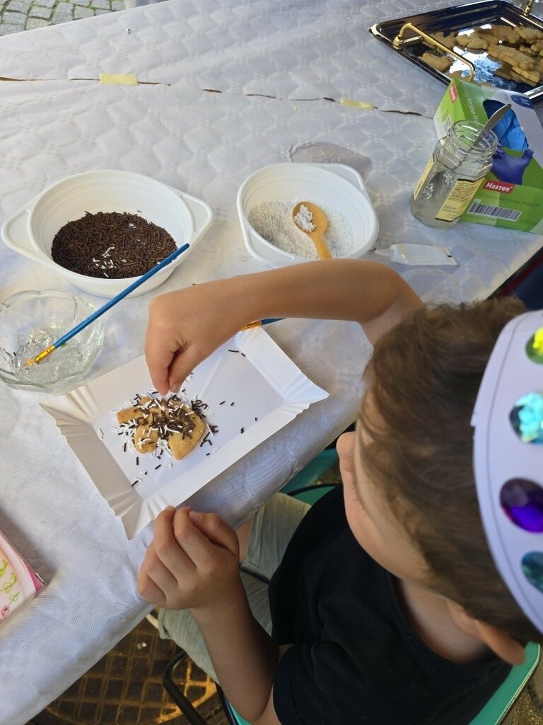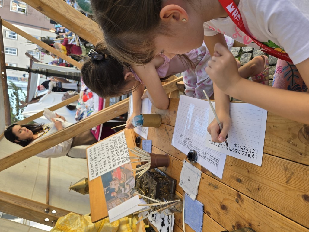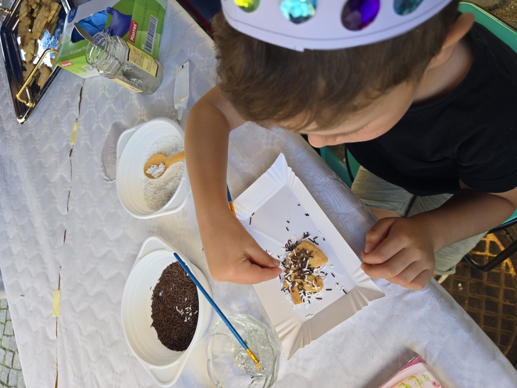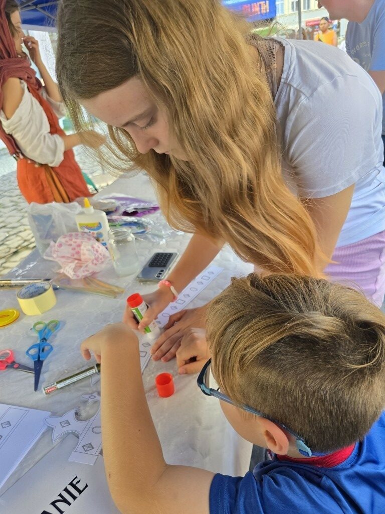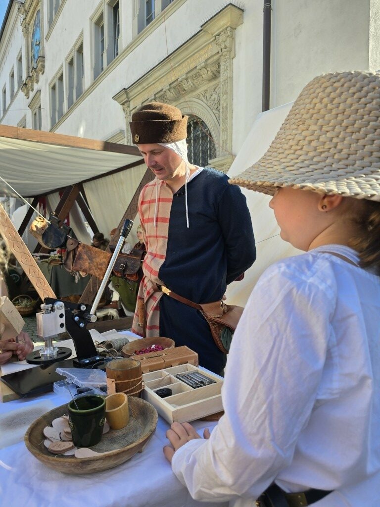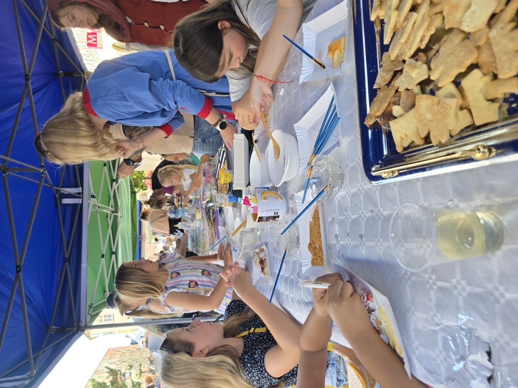 Pod naszymi namiotami raj miały dzieci, które mogły nauczyć się tkactwa na małych krosnach lub ozdobić ciasteczkowe korony, zamki lub jednorożce. A także przygotować własnoręcznie zrobione korony. Pokazaliśmy im także zabawy i gry plebejskie – rzut podkową, strzelanie z łuku, rzucanie do celu, walki workami ze słomą, skoki w workach. Sprawdzaliśmy także ich podstawową wiedzę historyczną. Dla najlepszych przygotowaliśmy cenne nagrody!