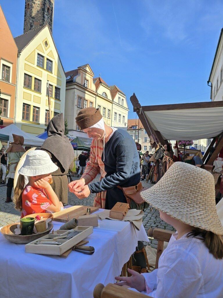 Niesamowitą atmosferę stworzyła Drużyna Wojów Serbo-Łużyckich „Biełoboh”. Wspaniałe stroje, ich prezencja oraz scenki, które poprowadziły nas od ślubu Mieszka z Dobrawą po Koronację Chrobrego. A wszystko to z profesjonalizmem i szczyptą humoru („tylko nie w szczepionkę!”). Poza inscenizacjami przybyli goście mogli przyjść do skryby, który pokazywał, jak pisze się gęsim piórem. Można było wykuć swój własny denar, a także przygotować wielobarwną motankę.