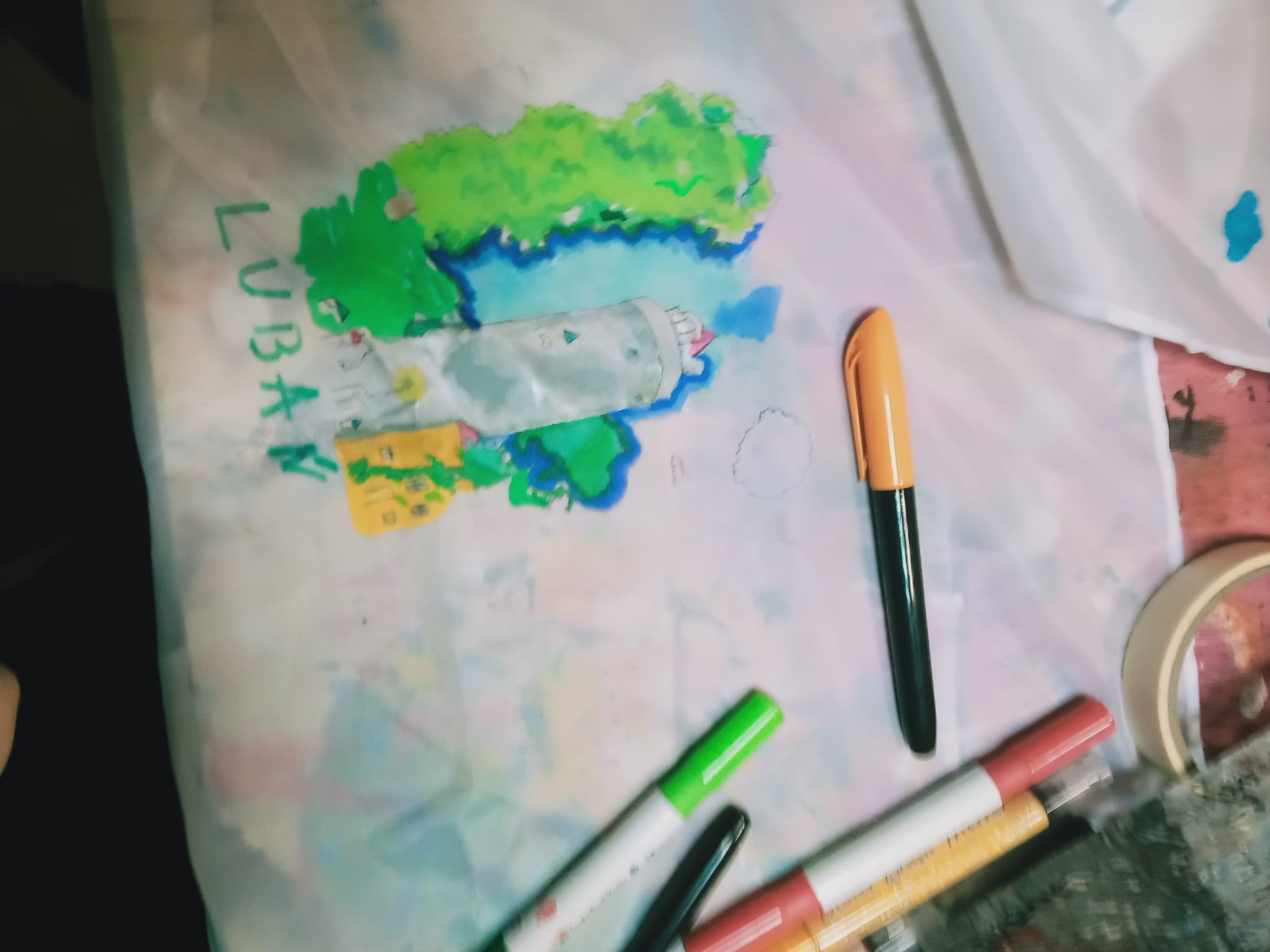 Pod okiem lokalnej twórczyni dzieci wzięły udział w warsztatach malowania na tkaninach. Zajęcia łączyły elementy edukacji regionalnej z rozwijaniem kreatywności i zdolności manualnych. Przy użyciu specjalnych farb i mazaków do malowania tkanin uczestnicy przenosili na chusty charakterystyczne miejsca związane z Lubaniem, takie jak Wieża Bracka czy Ratusz. Dzieci samodzielnie dobierały kolory i kompozycje, ucząc się jednocześnie precyzji oraz pracy z materiałem innym niż papier.