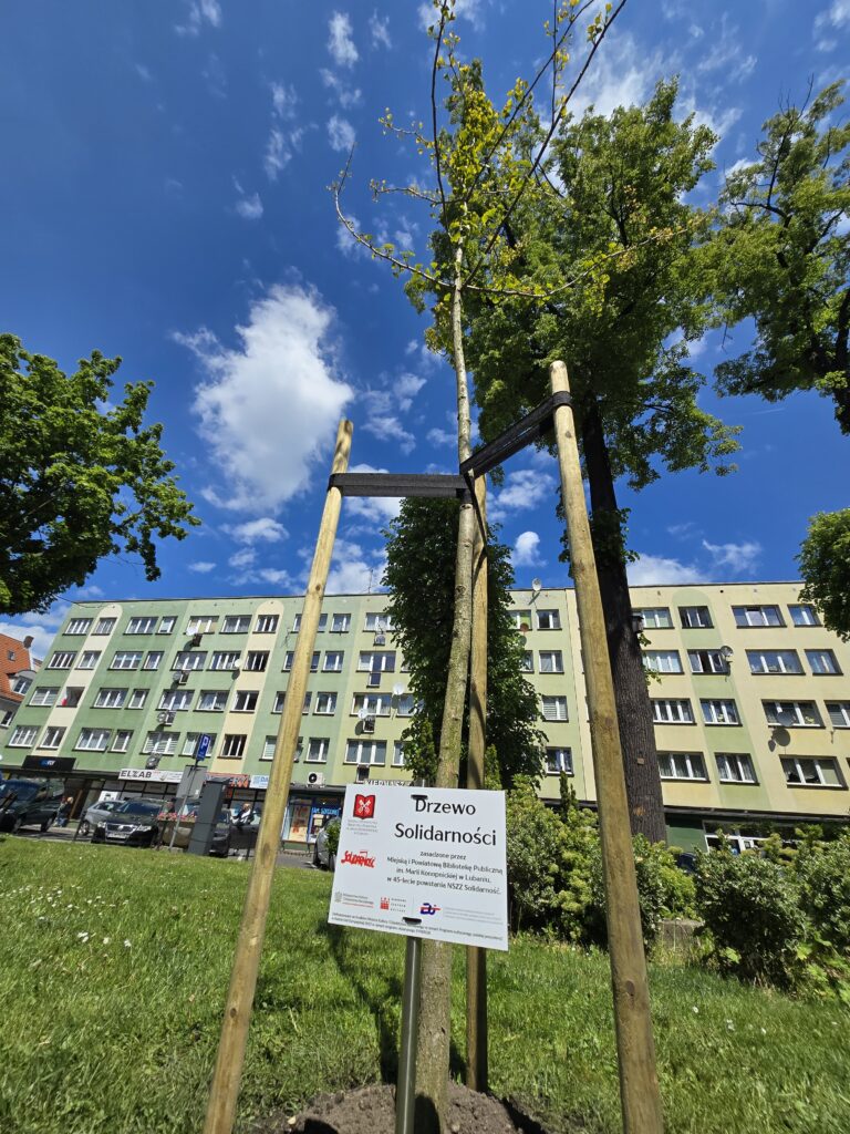 Miłorząb został opatrzony pamiątkową tabliczką z inskrypcją: „Drzewo Solidarności” zasadzone przez Miejską i Powiatową Bibliotekę Publiczną im. Marii Konopnickiej w Lubaniu w 45-lecie powstania NSZZ „Solidarność”, która będzie przypominać przyszłym pokoleniom o tym wyjątkowym wydarzeniu i jego głębokim znaczeniu.
