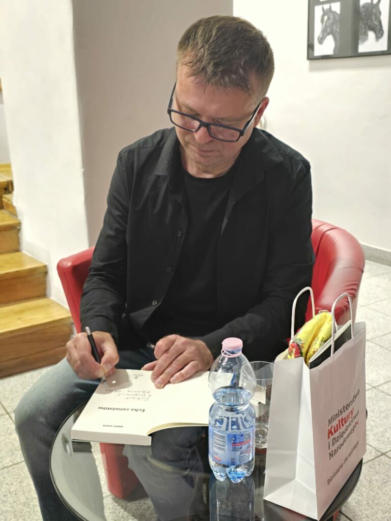 Spotkaliśmy się także z Mariuszem Gładzikiem, pisarzem z naszych okolic. Spotkanie z autorem było nie tylko okazją do bliższego poznania jego twórczości, ale też inspirującym momentem refleksji nad historią, tożsamością i znaczeniem słowa pisanego.