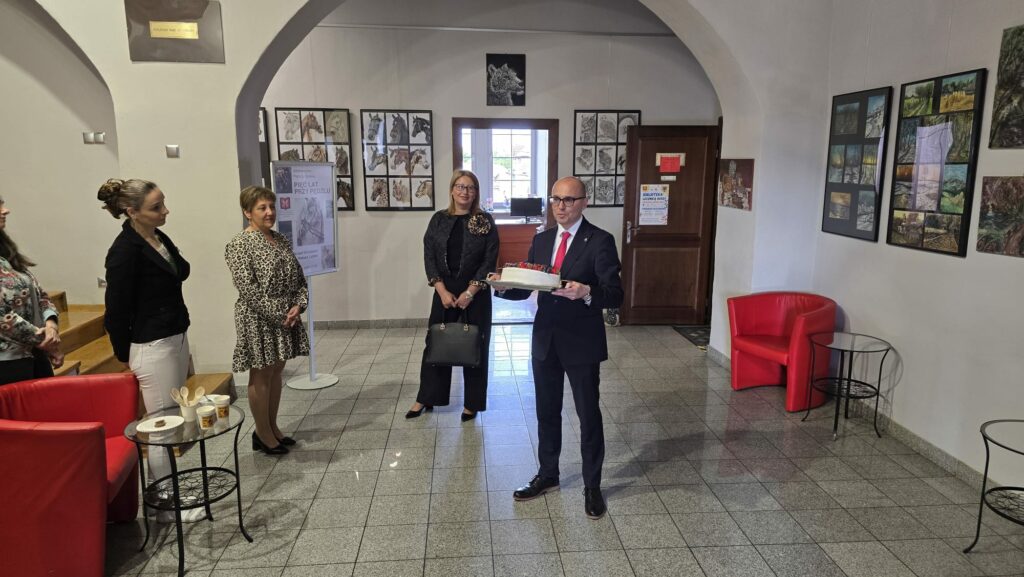 Zaczęliśmy od świętowania Dnia Bibliotekarza! Odwiedził nas Burmistrz Grzegorz Wieczorem wraz z zastępcą Panią Magdaleną Wydrą. A w rękach mieli…wspaniały tort! Otrzymaliśmy także przepiękne kwiaty od Rady Miasta, które wręczył Przewodniczący Pan Witold Chojnacki. Pani Dyrektor zabrała nas do Liberca. Odwiedziliśmy naszych partnerów z Krajská vědecká knihovna v Liberci (libereckiej biblioteki) oraz wspięliśmy się na Ještěd. Naszym przewodnikiem był…Pan Burmistrz!