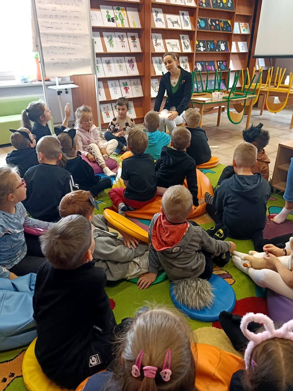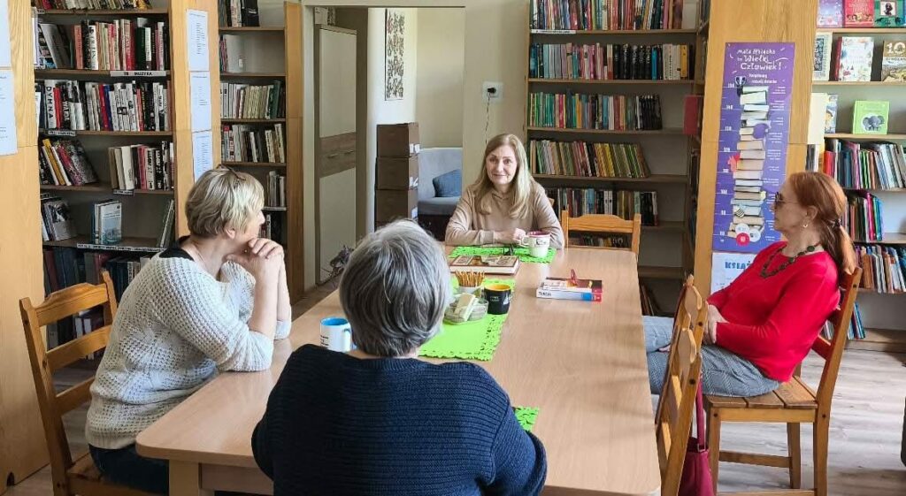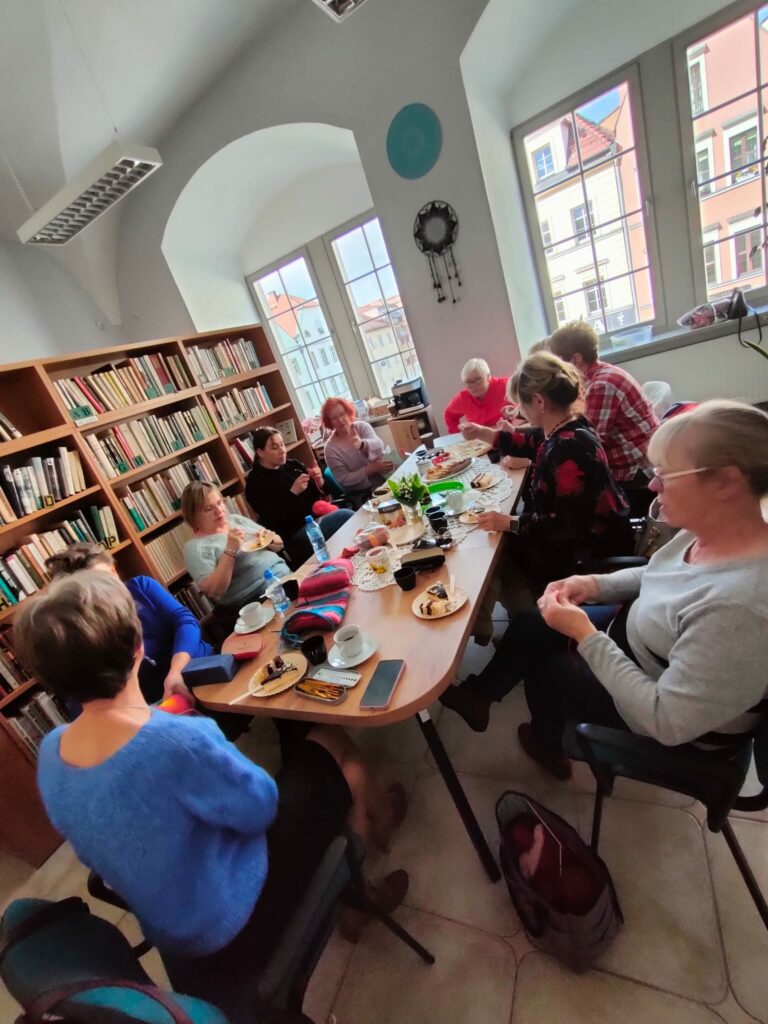 W ramach Tygodnia Bibliotek Pani Monika zorganizowała spotkanie zamknięte w Warsztatach Terapii Zajęciowej pod tytułem Bajka terapeutyczna jako pomoc w niemocy – wzmacnianie własnej wartości. Pokazała, jak można wykorzystać tekst literacki jako pomoc w zrozumieniu samego siebie i swoich uczuć.