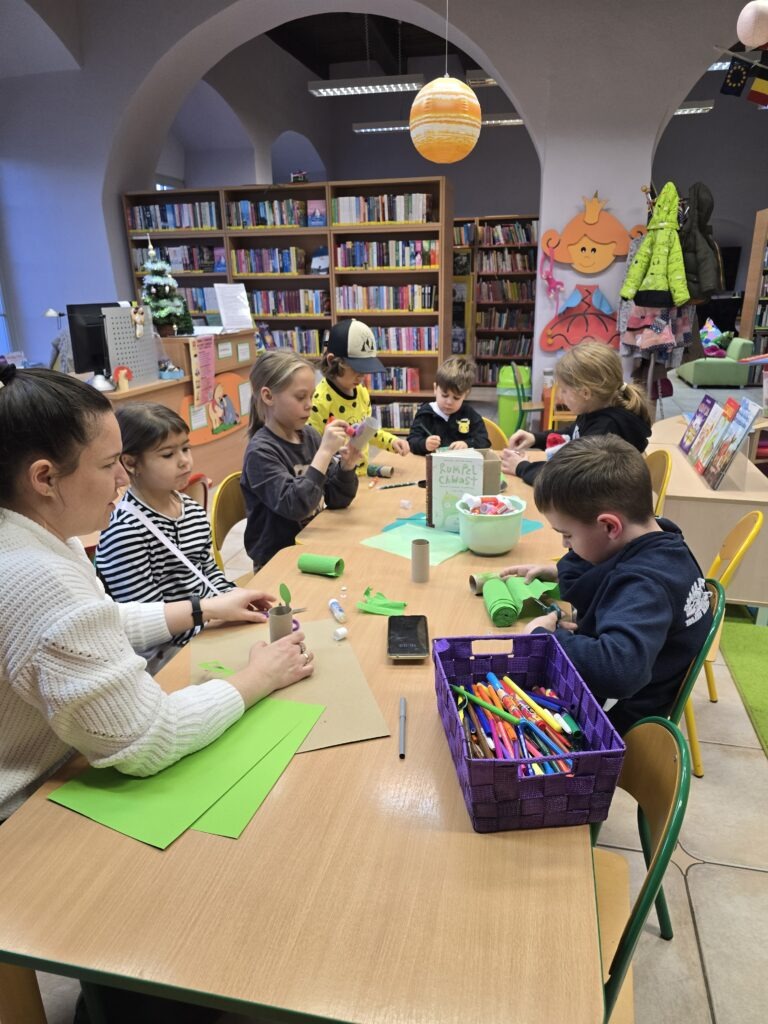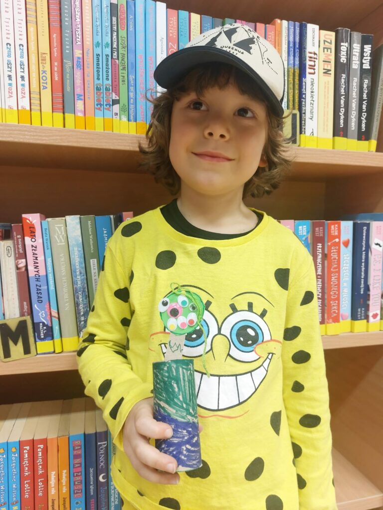 Na zakończenie spotkania uczestnicy wykonali pracę plastyczną – Rumpla Chwasta z rolki po papierze toaletowym. Każdy stworek był inny, wyjątkowy i niepowtarzalny, dokładnie tak jak jego autor.