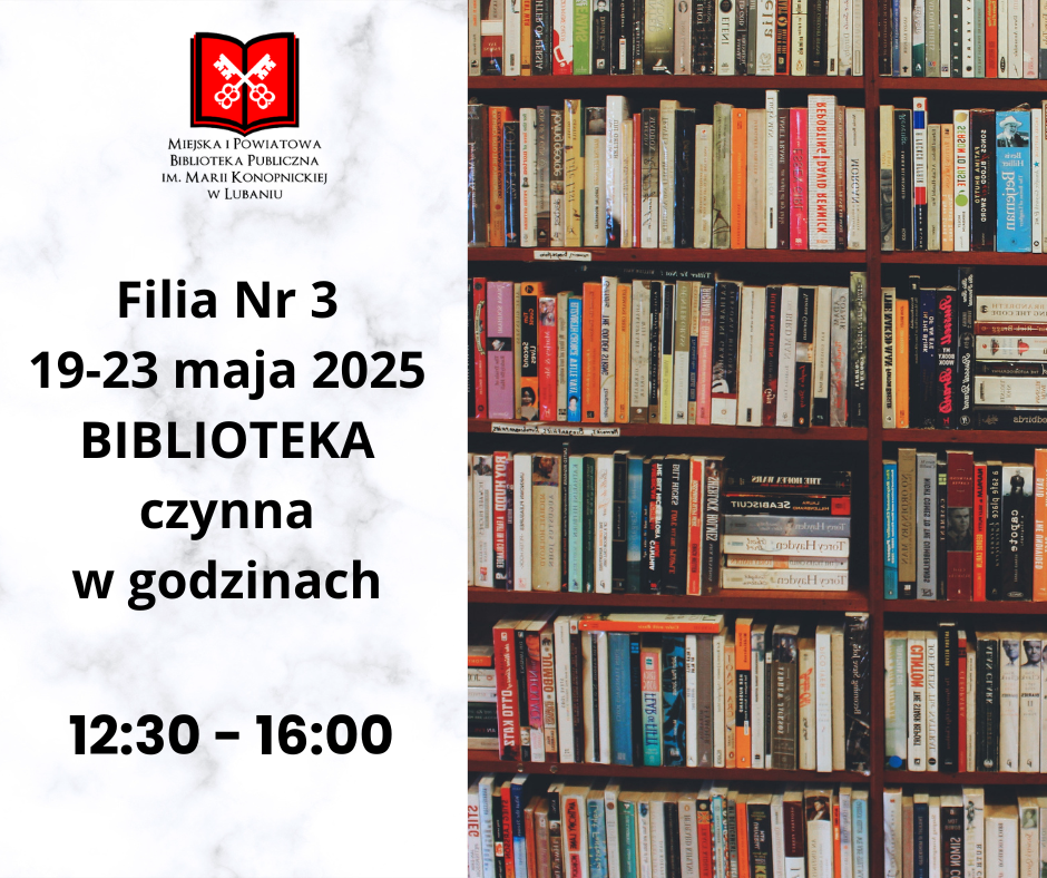 Uwaga, uwaga, #FiliaNr3 będzie zamknięta do 8 sierpnia. Zapraszamy do Wypożyczalni Dla Dorosłych w Rynku.