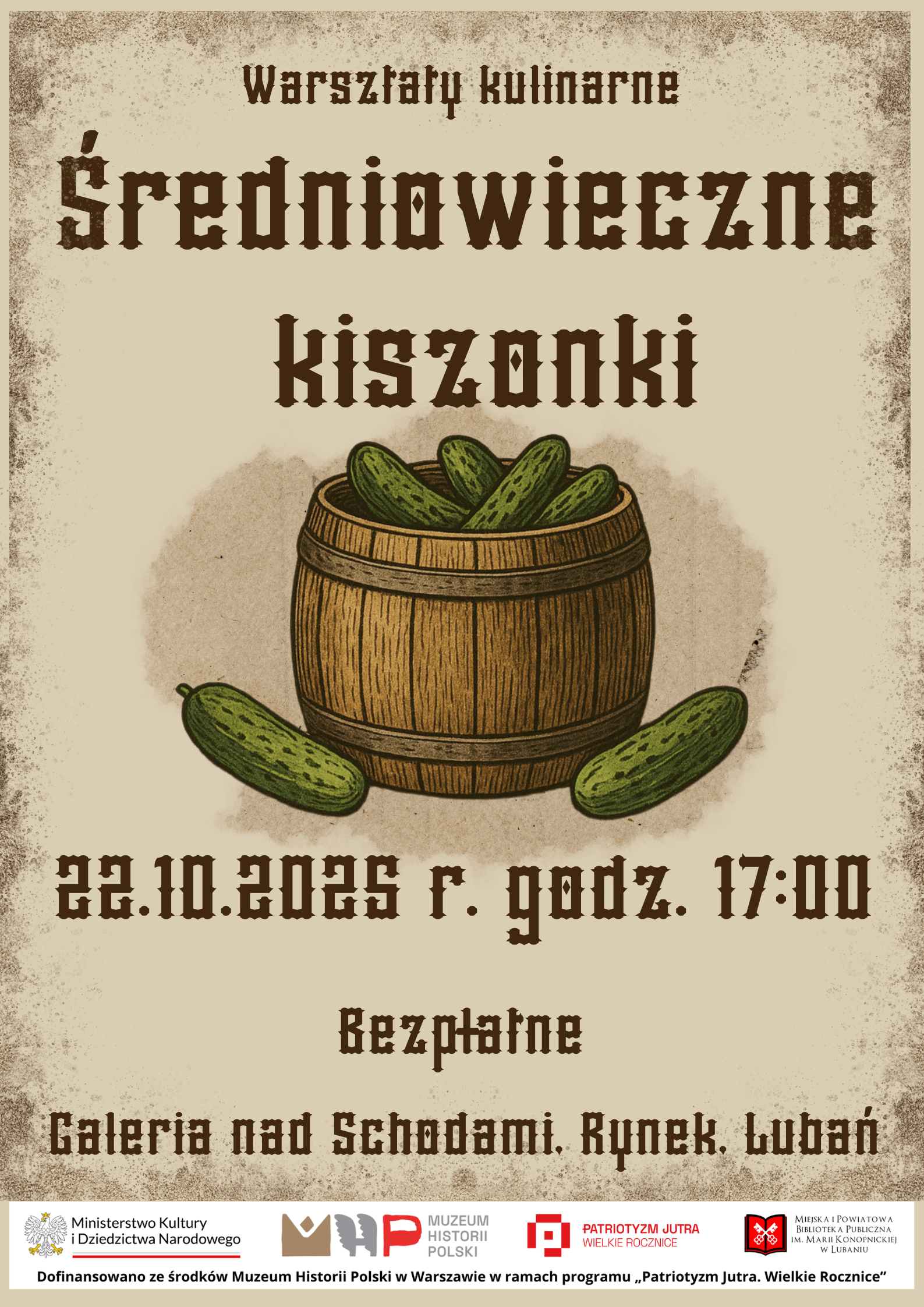 Zapraszamy 22 października o godz. 17:00 na wyjątkowe warsztaty o średniowiecznych kiszonkach, które poprowadzi Klub Kobiet MykobieTy.