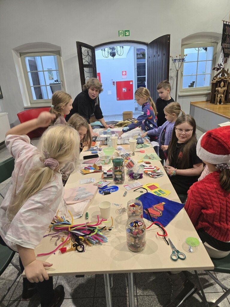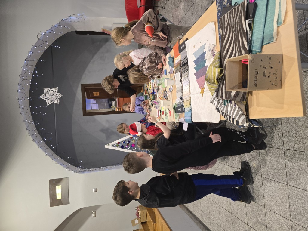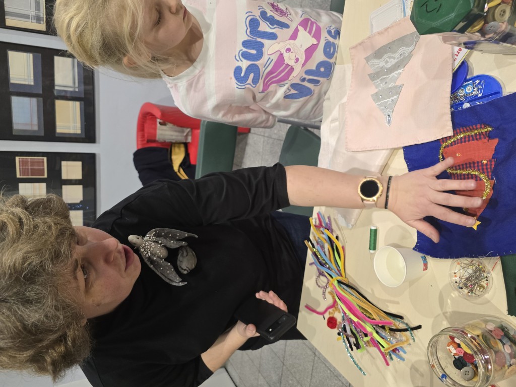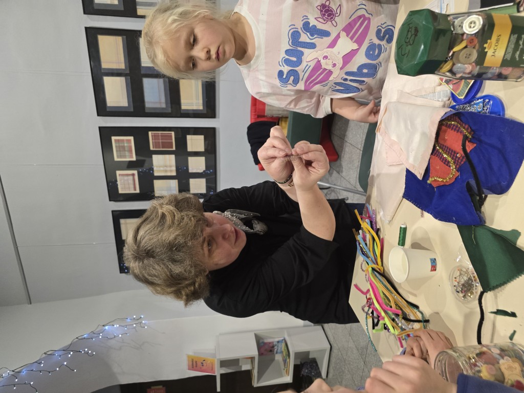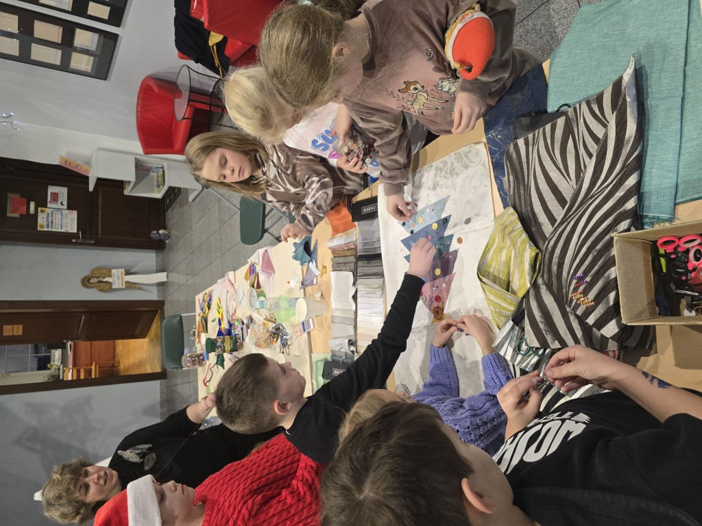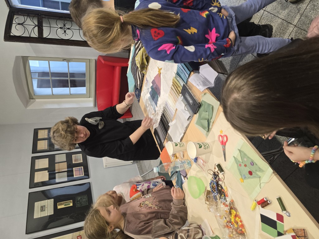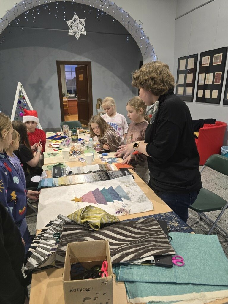 W grudniowe popołudnia, w ciepłej i twórczej atmosferze, dzieci pod okiem istruktorki Basi Krupy-Kapuśniak stawiały pierwsze kroki w posługiwaniu się igłą i nitką. Zajęcia rozpoczęły się od prezentacji różnorodnych tkanin, które stanowiły bazę do dalszych działań. Uczestnicy mieli okazję dotknąć i dokładnie obejrzeć materiały o odmiennych właściwościach, ucząc się rozpoznawać je nie tylko wzrokiem, ale także dotykiem.