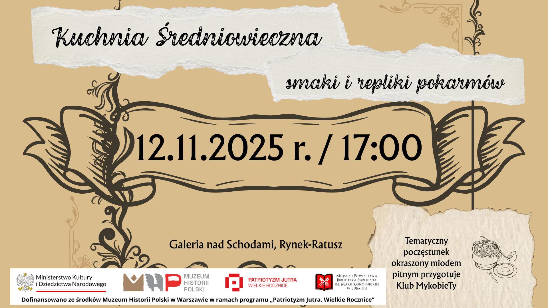 2 listopada (środa) o 17:00 w Galerii nad Schodami zapraszamy na fascynujący wykład „Kuchnia średniowieczna – smaki i repliki pokarmów” poświęcony średniowiecznym smakom i kulinarnym tradycjom!