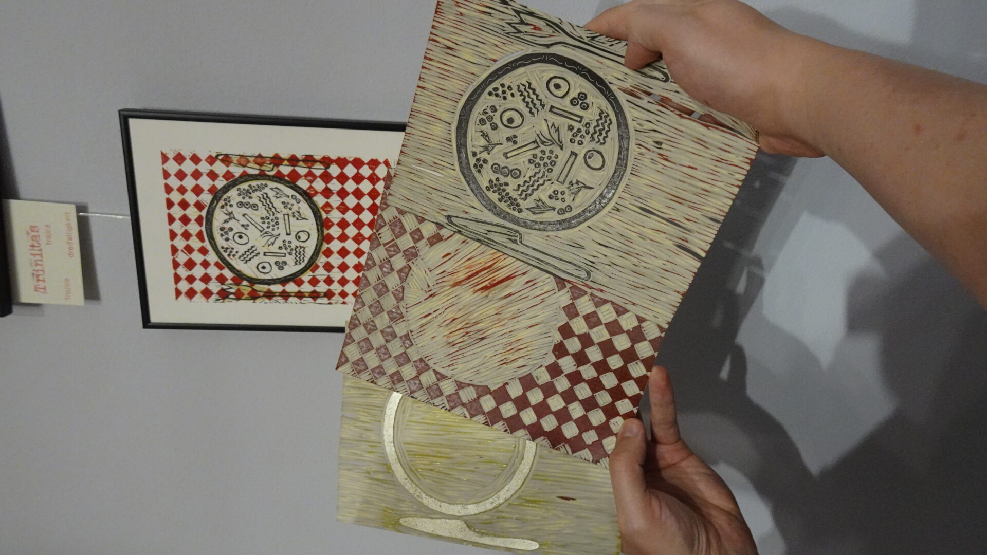 Artystka studiowała w Jabloncu nad Nysą sztukę̨ grawerowania medali i metali, która charakteryzuje się̨ szczególną precyzją, dokładnością̨ i dbałością o szczegóły. Dlatego, tworząc, chciałaby od tego uciec. Jej sztuka jest dzika, nie poddaje się typowemu rytmowi tworzenia linorytów, który zakłada zrobienie dziesiątków odbić, aby wybrać to jedno idealne. Pani Olga robi ich sześć i z nich zostawia to jedno najlepsze wg niej. Jednak nieidealne, co lubi w swojej sztuce. Na spotkaniu mogliśmy zobaczyć oryginalne matryce wykonane na linoleum, które stanowią wzór do powielania obrazów z wystawy.