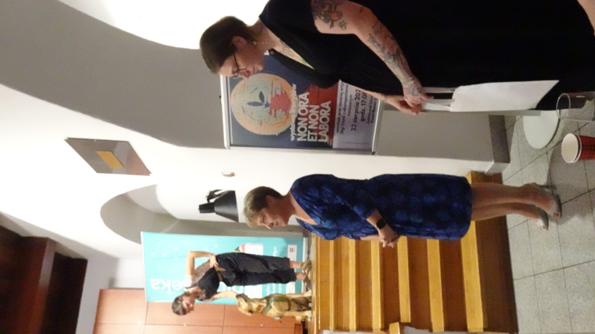 To było świetne, międzynarodowe spotkanie. Artystka była zdziwiona liczbą osób, które były ciekawe jej osobą oraz wystawą. Chętnych zapraszamy na oglądanie jej prac do 20 września 2024 r. w Galerii nad Schodami. Warto!