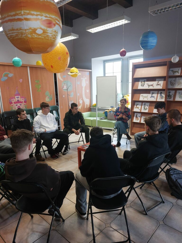 Warsztaty były okazją do rozwijania asertywności – uczestnicy nauczyli się, jak skutecznie mówić „NIE”. Zajęcia odbyły się w formie luźnej rozmowy, przeplatanej ćwiczeniami praktycznymi. Młodzież brała w nich aktywny udział, chętnie się wypowiadała, wykonywała polecenia prowadzącej, a co najważniejsze – świetnie się przy tym bawiła.
