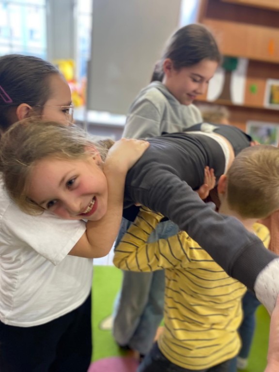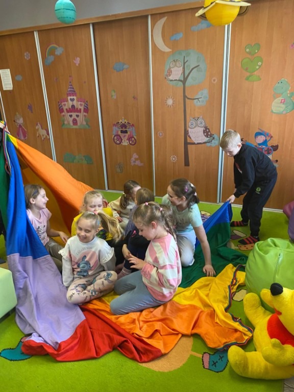 Na prośbę rodziców przeprowadziliśmy zajęcia mające na celu zniwelowanie lęku przed wizytą u stomatologa. (zajęcia „ O krokodylu, który bał się dentysty”). Cudownie bawiliśmy się podczas zajęć, na których kompromis wiódł prym i podczas zajęć detektywistycznych w poszukiwaniu zapomnianych miejsc. Najbardziej jednak w sercach utkwiły nam zajęcia pt.„ Trudne sprawy” .