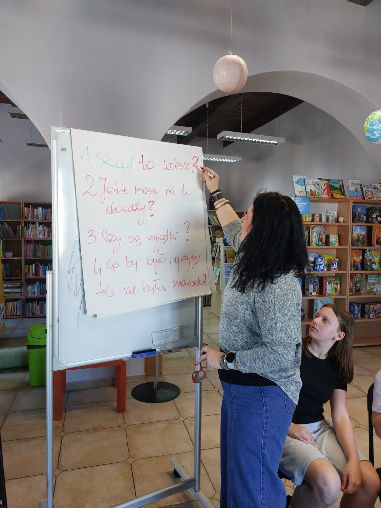 Lubańska biblioteka już drugi rok realizuje projekt profilaktyczny adresowany do młodzieży „Zdrowe decyzje=zdrowe życie”. Tym razem w spotkaniu uczestniczyli uczniowie klasy VIII C Szkoły Podstawowej nr 1 w Lubaniu. Podczas spotkania młodzież miała okazję uczestniczyć w interesującym i inspirującym wykładzie pani Magdaleny Worońko-Mazik – psycholog współpracującej z Centrum Działań Profilaktycznych w Wieliczce. Prelegentka poruszyła niezwykle ważne tematy związane ze zdrowym podejściem do odżywiania i wizerunku, a także z budowaniem własnej tożsamości i rozwijaniem umiejętności krytycznego myślenia.