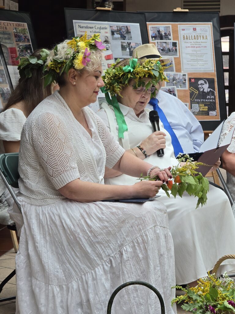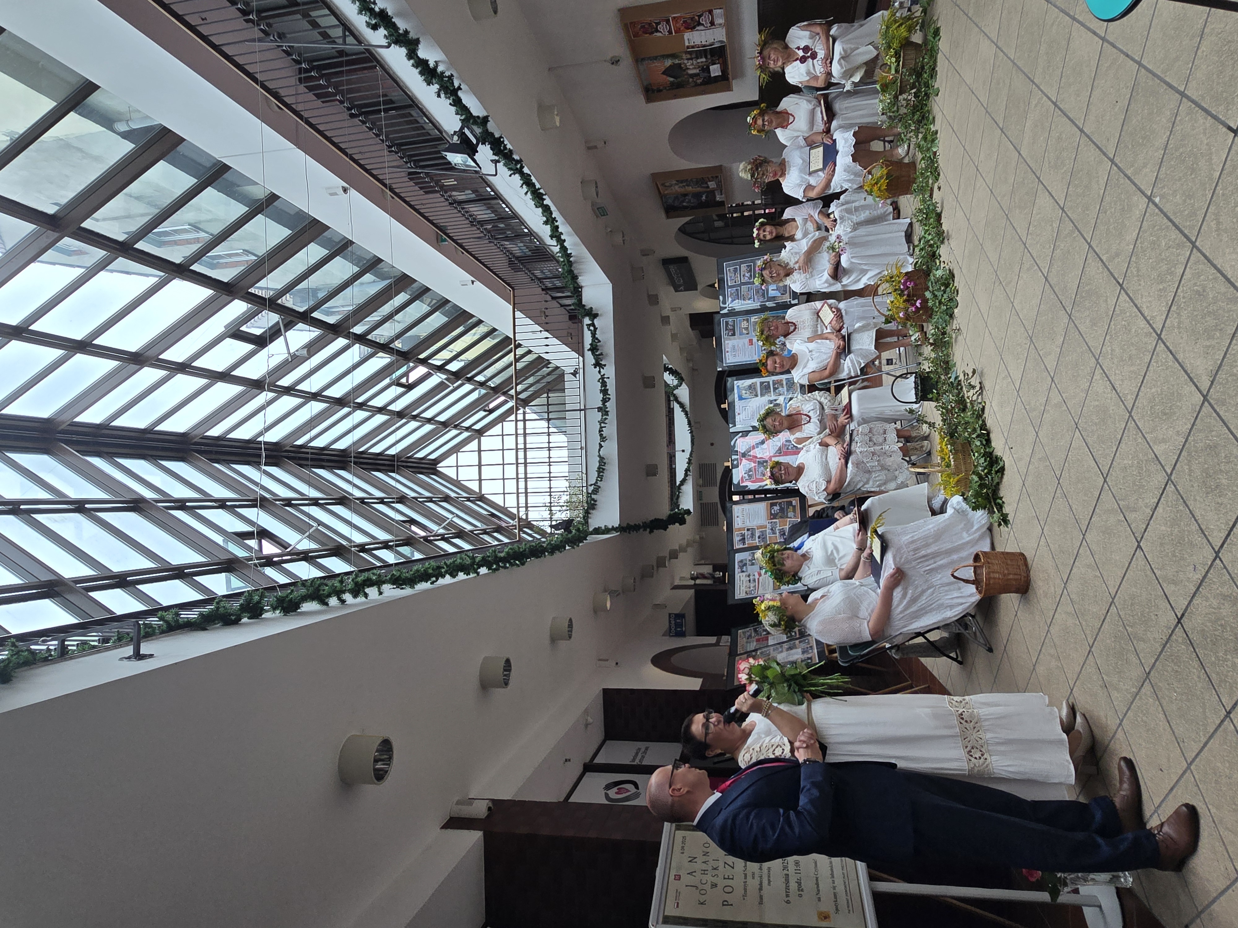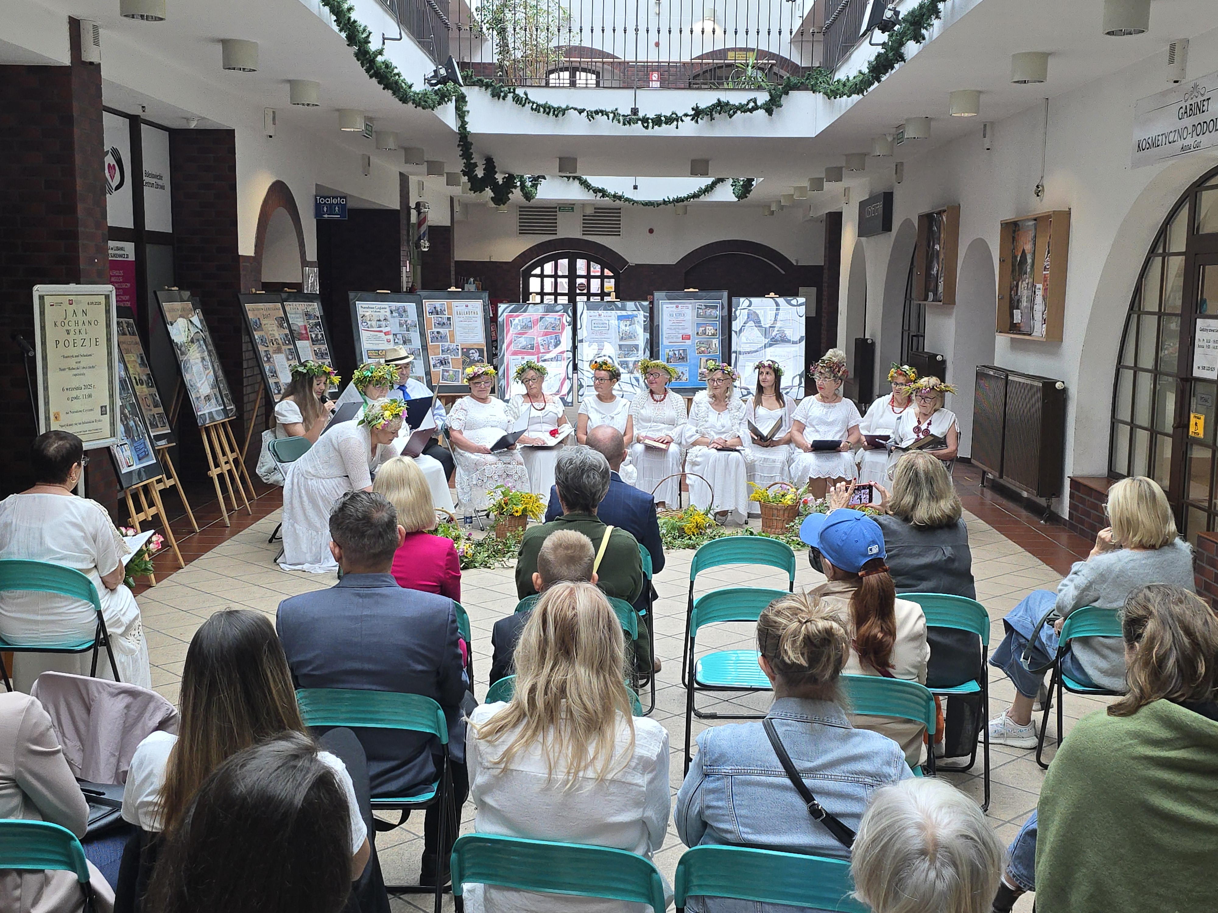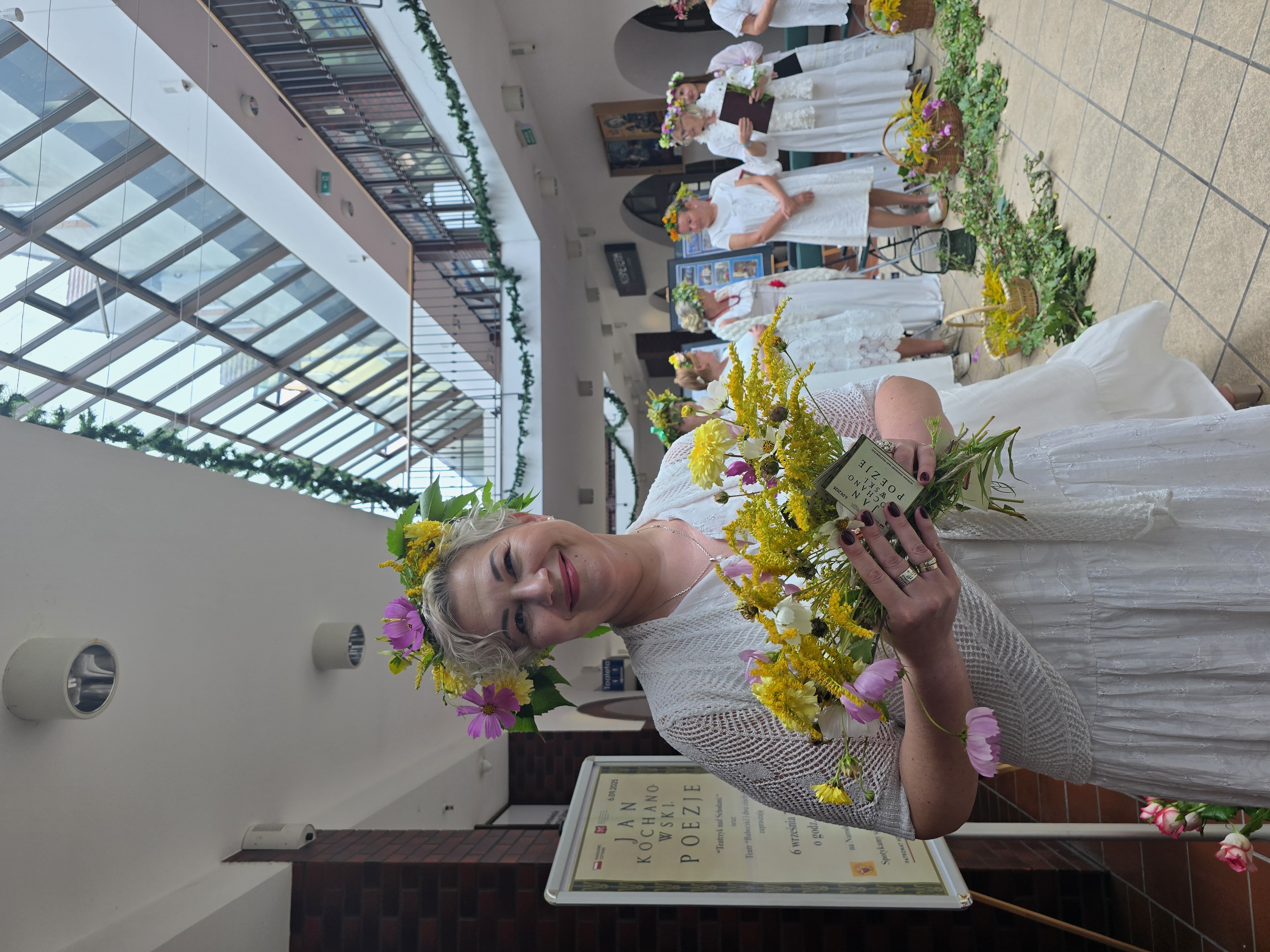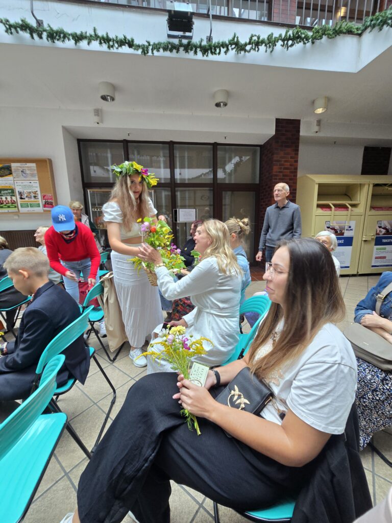 Niestety, pogoda nie pozwoliła nam na zorganizowaniu wydarzenia na dworze, ale piękne światło w środku Tretu przyjemnie pomogło rozsmakować się w poezji. Na scenie zobaczyliśmy „Teatrzyk nad Schodami” oraz Teatr „Babeczki i dwa ciacha”. W zwiewnych, jasnych strojach, z wiankami z polnych kwiatów wyglądali zjawiskowo. Ich interpretacja utworów nabrała dzięki ich zaangażowaniu nowego blasku. Piękny był koncept układania podczas wystąpienia przepięknych bukiecików, które, na pamiątkę wydarzenia, otrzymał każdy z uczestników.