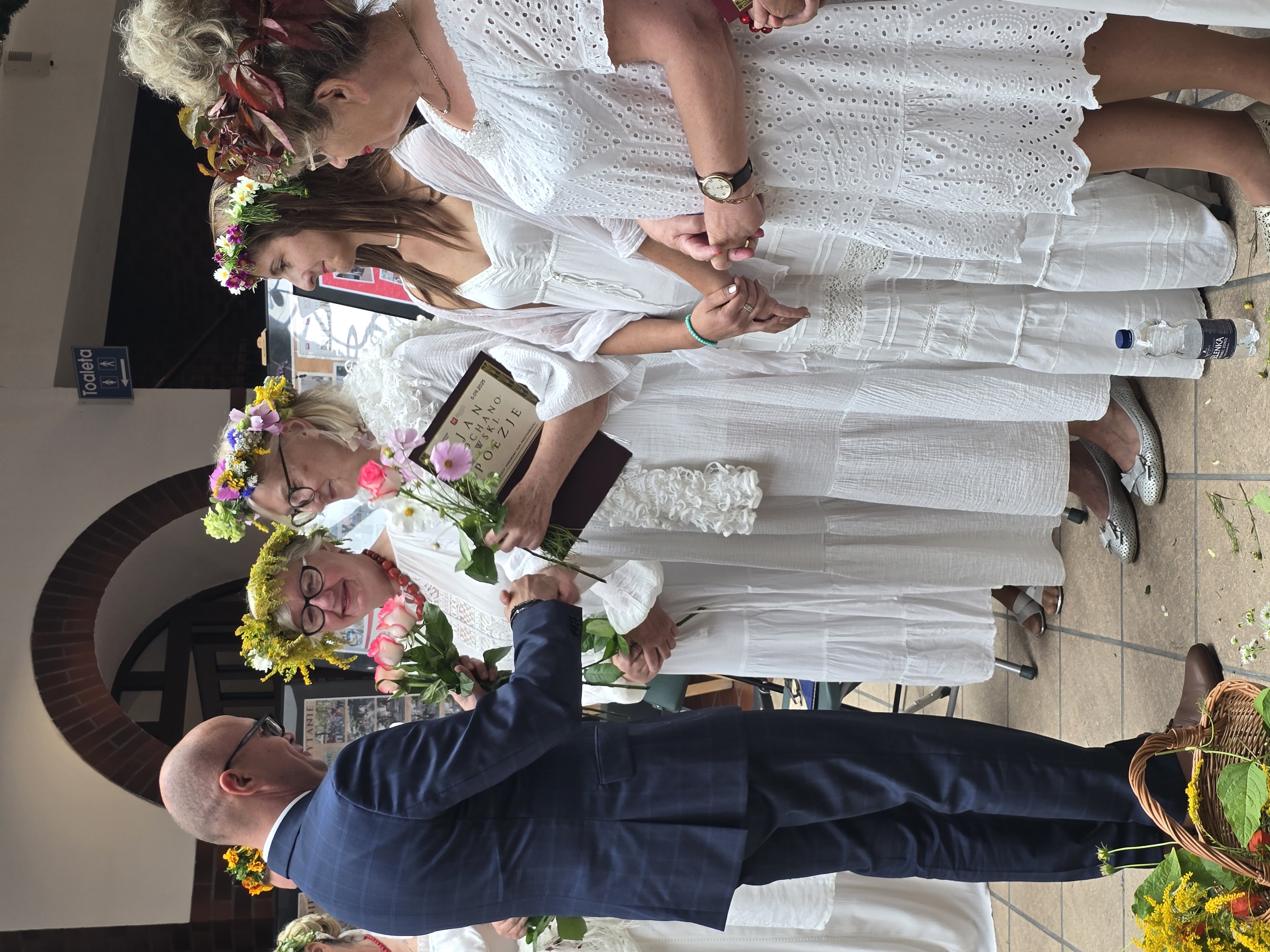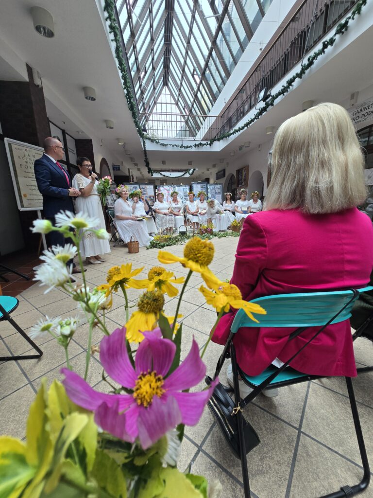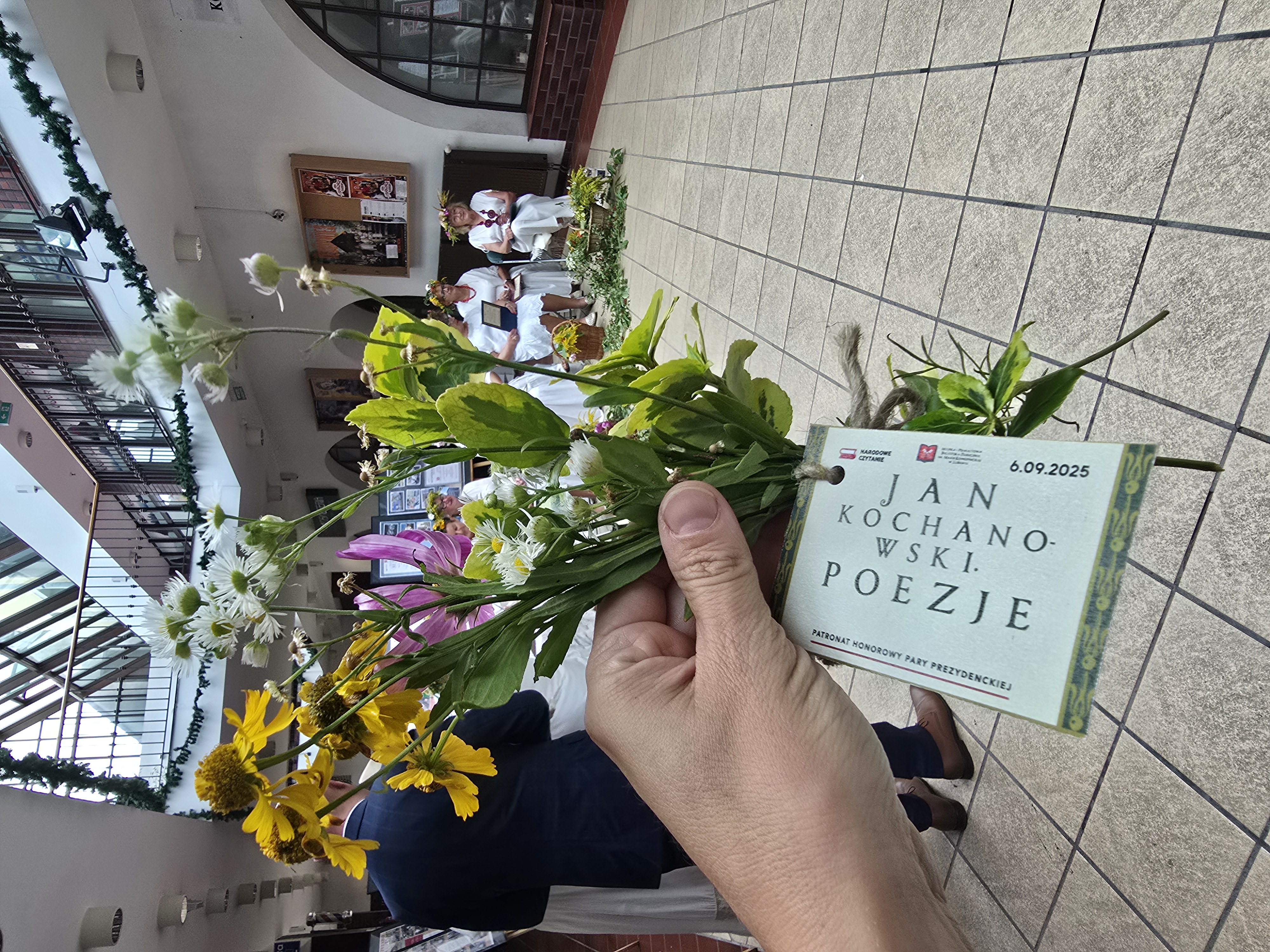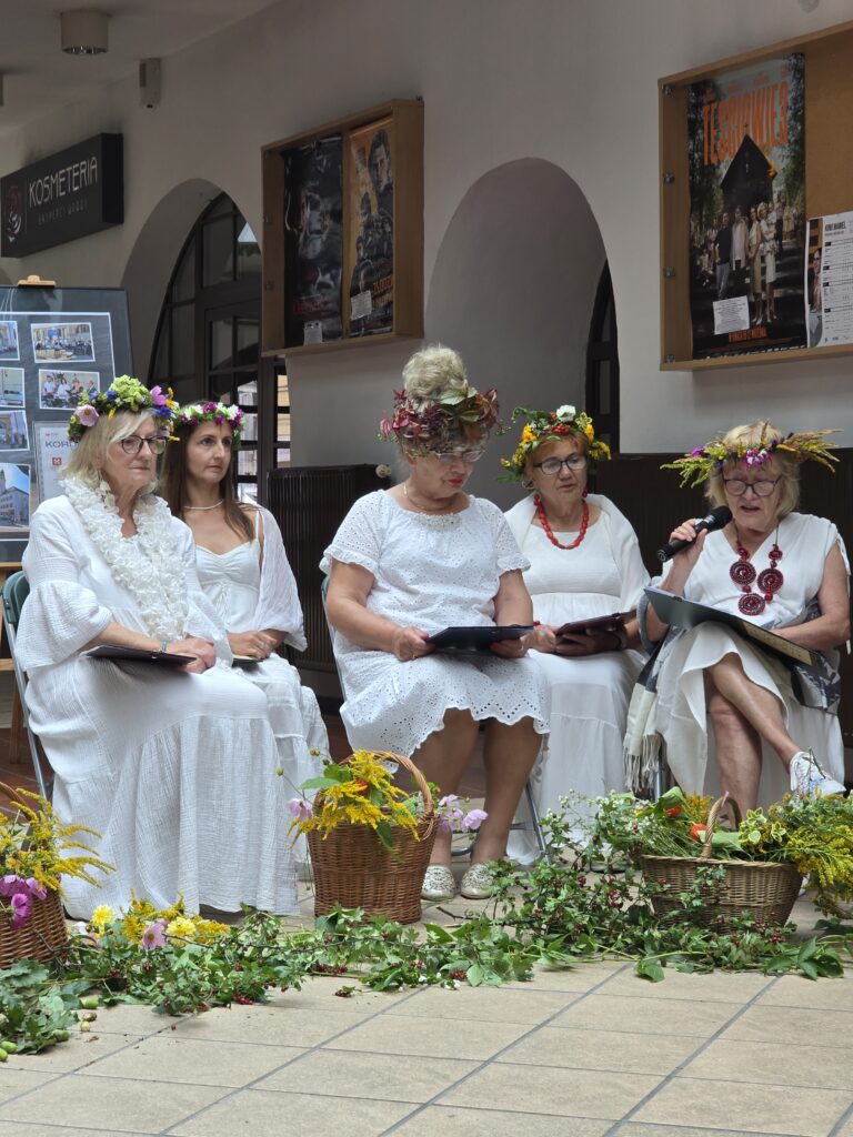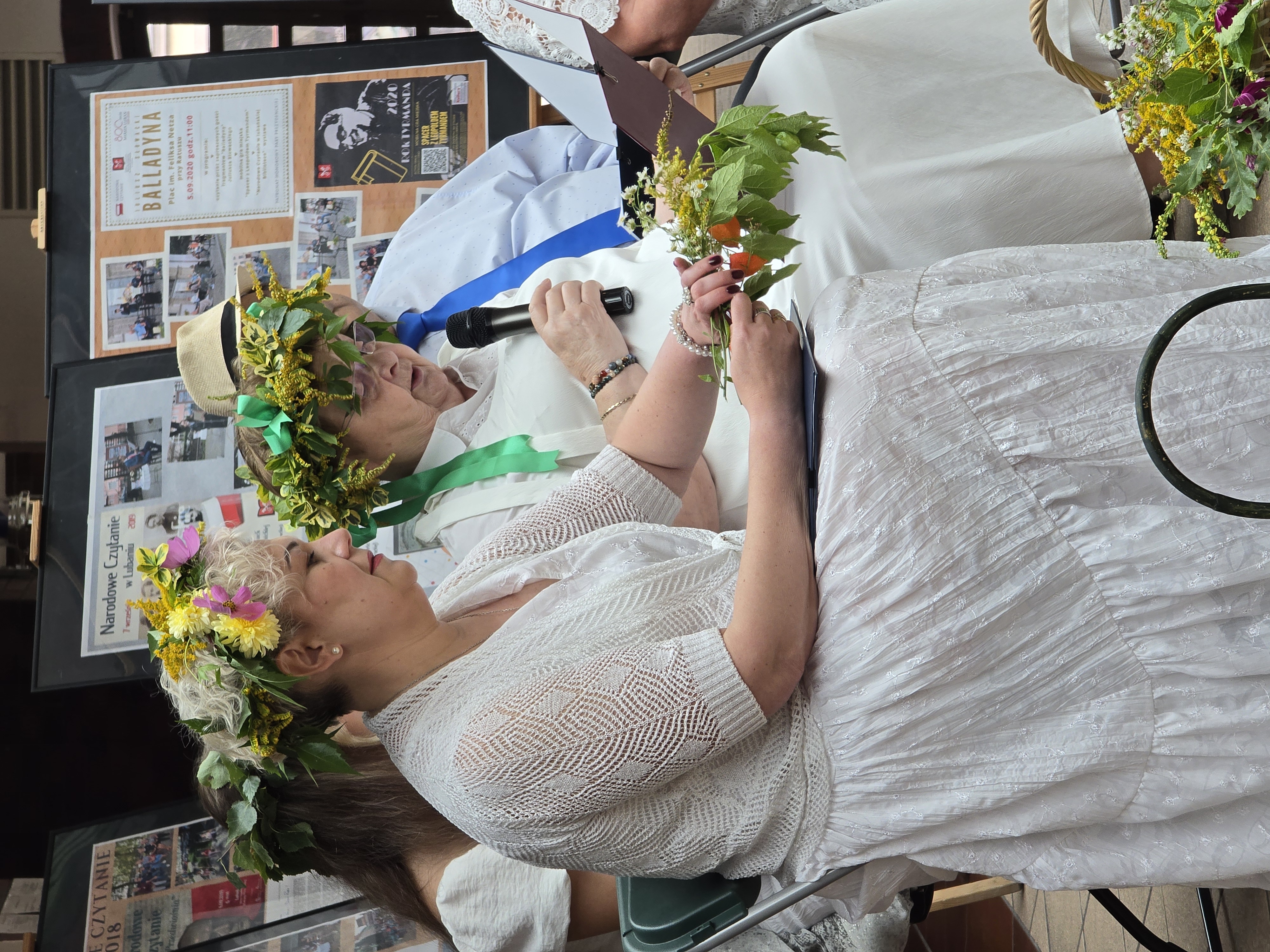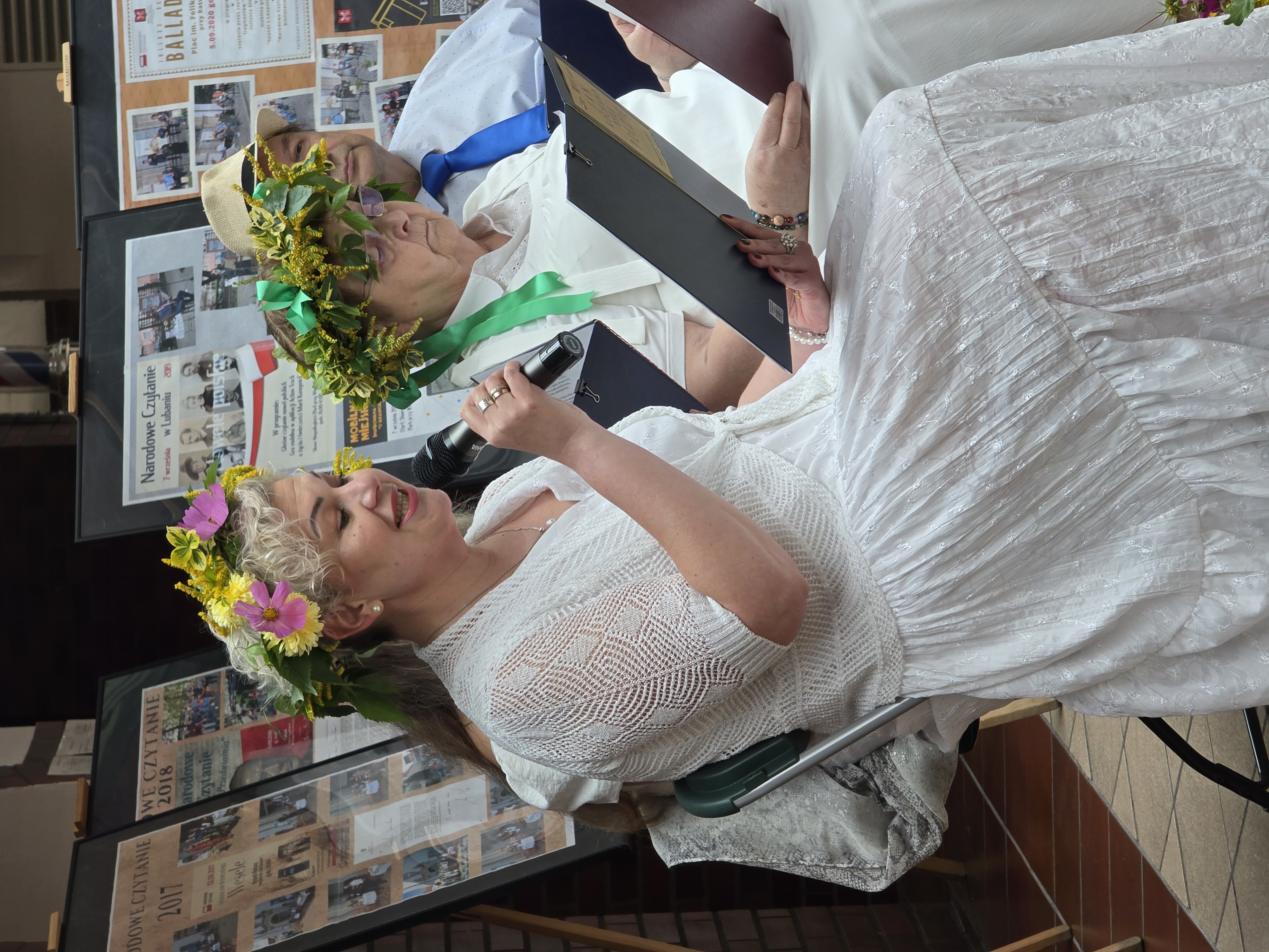 Niestety, pogoda nie pozwoliła nam na zorganizowaniu wydarzenia na dworze, ale piękne światło w środku Tretu przyjemnie pomogło rozsmakować się w poezji. Na scenie zobaczyliśmy „Teatrzyk nad Schodami” oraz Teatr „Babeczki i dwa ciacha”. W zwiewnych, jasnych strojach, z wiankami z polnych kwiatów wyglądali zjawiskowo. Ich interpretacja utworów nabrała dzięki ich zaangażowaniu nowego blasku. Piękny był koncept układania podczas wystąpienia przepięknych bukiecików, które, na pamiątkę wydarzenia, otrzymał każdy z uczestników.