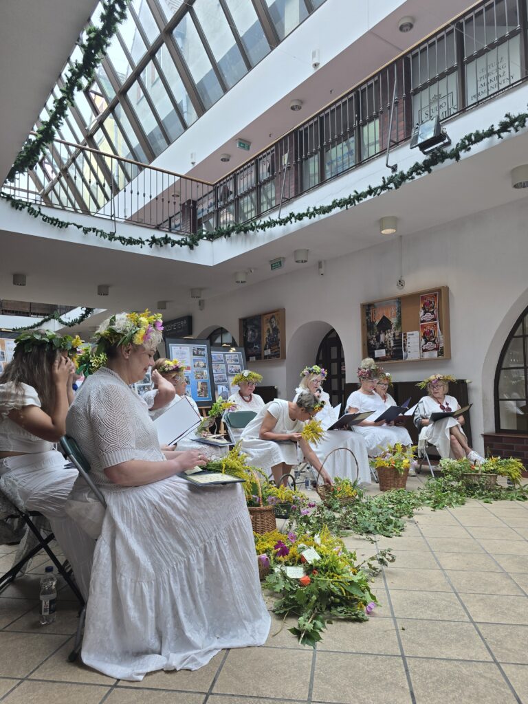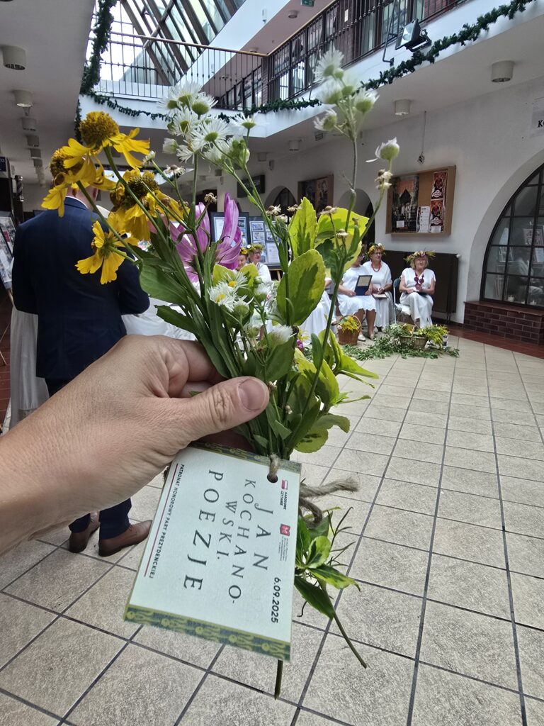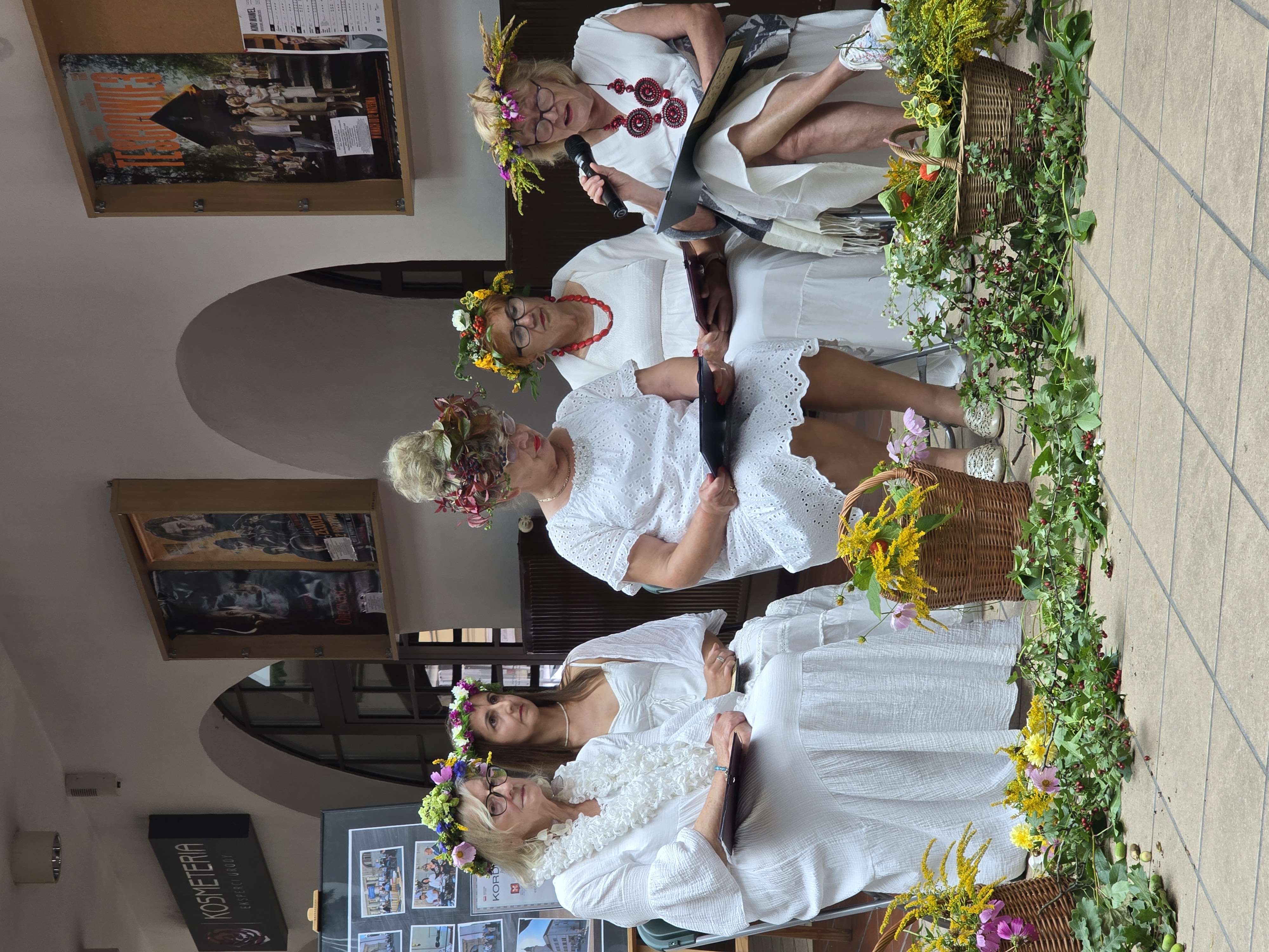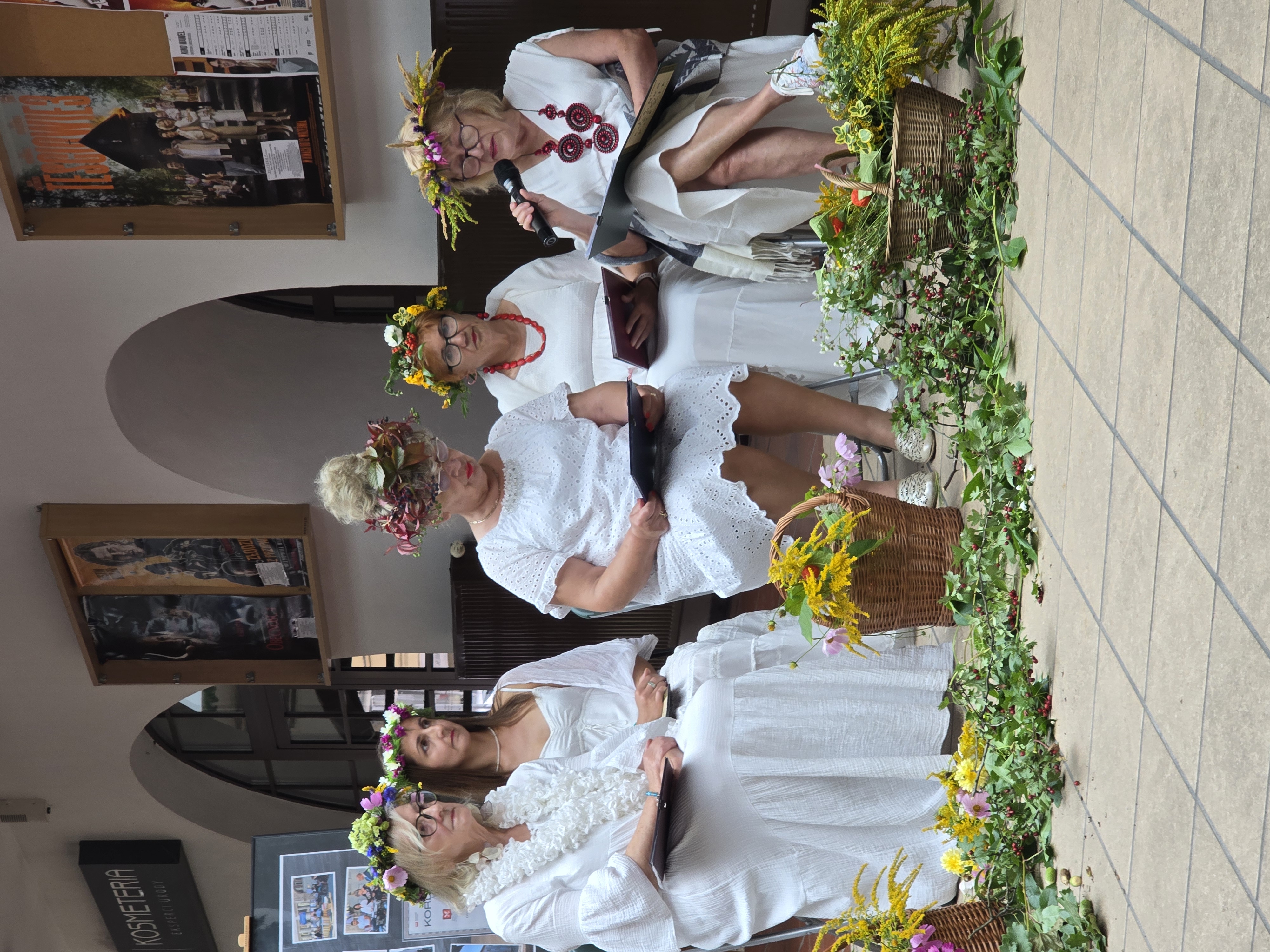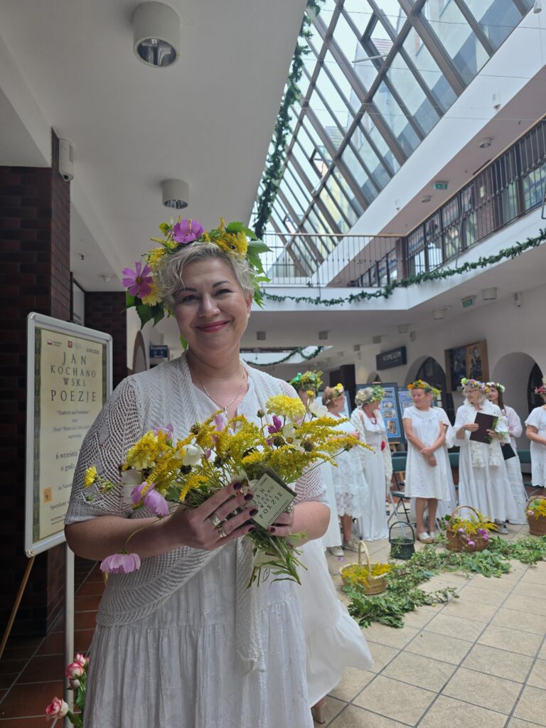Niestety, pogoda nie pozwoliła nam na zorganizowaniu wydarzenia na dworze, ale piękne światło w środku Tretu przyjemnie pomogło rozsmakować się w poezji. Na scenie zobaczyliśmy „Teatrzyk nad Schodami” oraz Teatr „Babeczki i dwa ciacha”. W zwiewnych, jasnych strojach, z wiankami z polnych kwiatów wyglądali zjawiskowo. Ich interpretacja utworów nabrała dzięki ich zaangażowaniu nowego blasku. Piękny był koncept układania podczas wystąpienia przepięknych bukiecików, które, na pamiątkę wydarzenia, otrzymał każdy z uczestników.