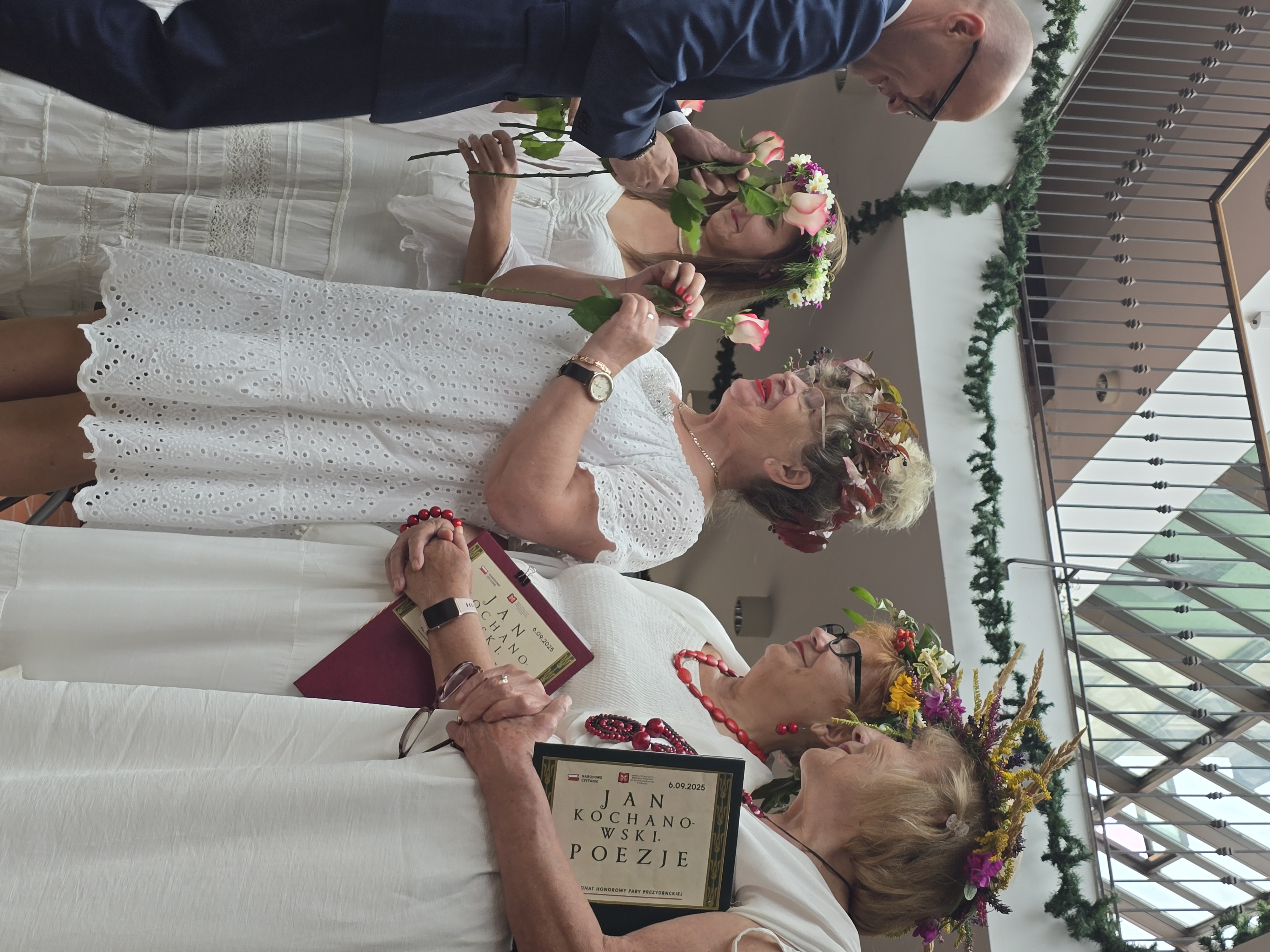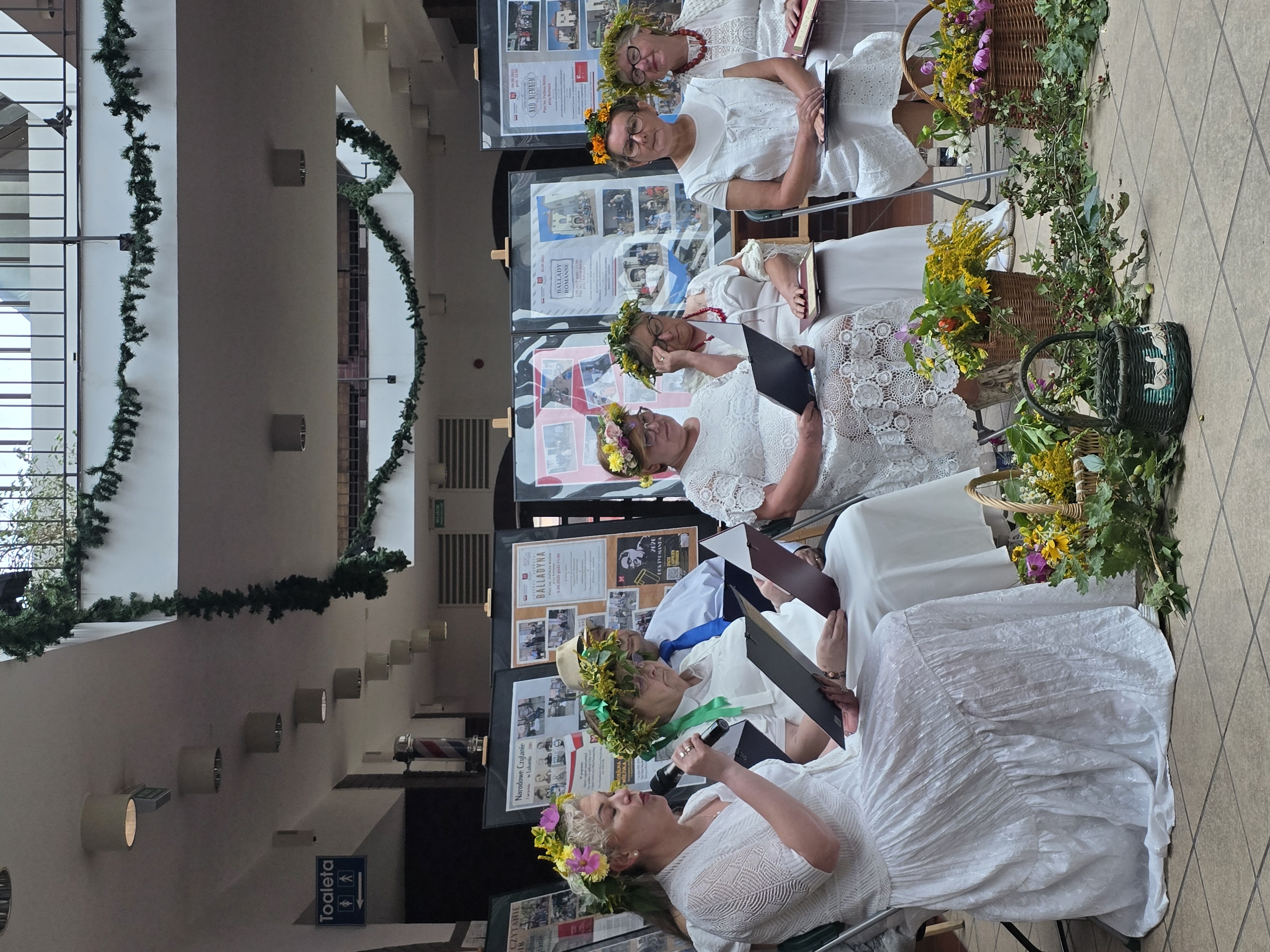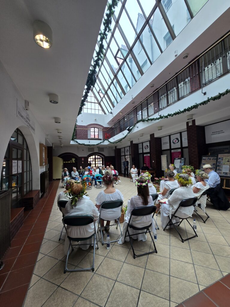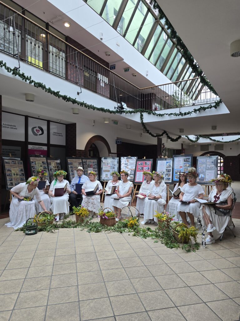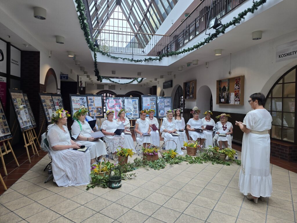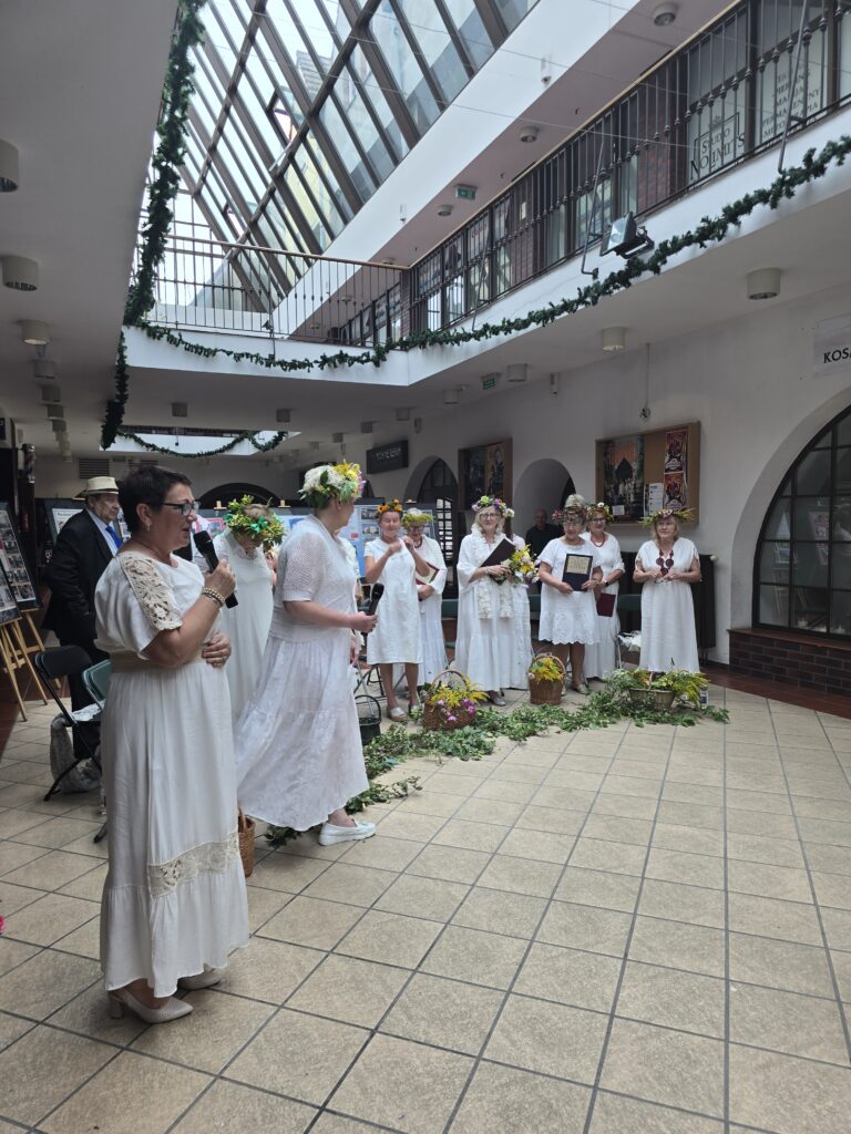 Niestety, pogoda nie pozwoliła nam na zorganizowaniu wydarzenia na dworze, ale piękne światło w środku Tretu przyjemnie pomogło rozsmakować się w poezji. Na scenie zobaczyliśmy „Teatrzyk nad Schodami” oraz Teatr „Babeczki i dwa ciacha”. W zwiewnych, jasnych strojach, z wiankami z polnych kwiatów wyglądali zjawiskowo. Ich interpretacja utworów nabrała dzięki ich zaangażowaniu nowego blasku. Piękny był koncept układania podczas wystąpienia przepięknych bukiecików, które, na pamiątkę wydarzenia, otrzymał każdy z uczestników.