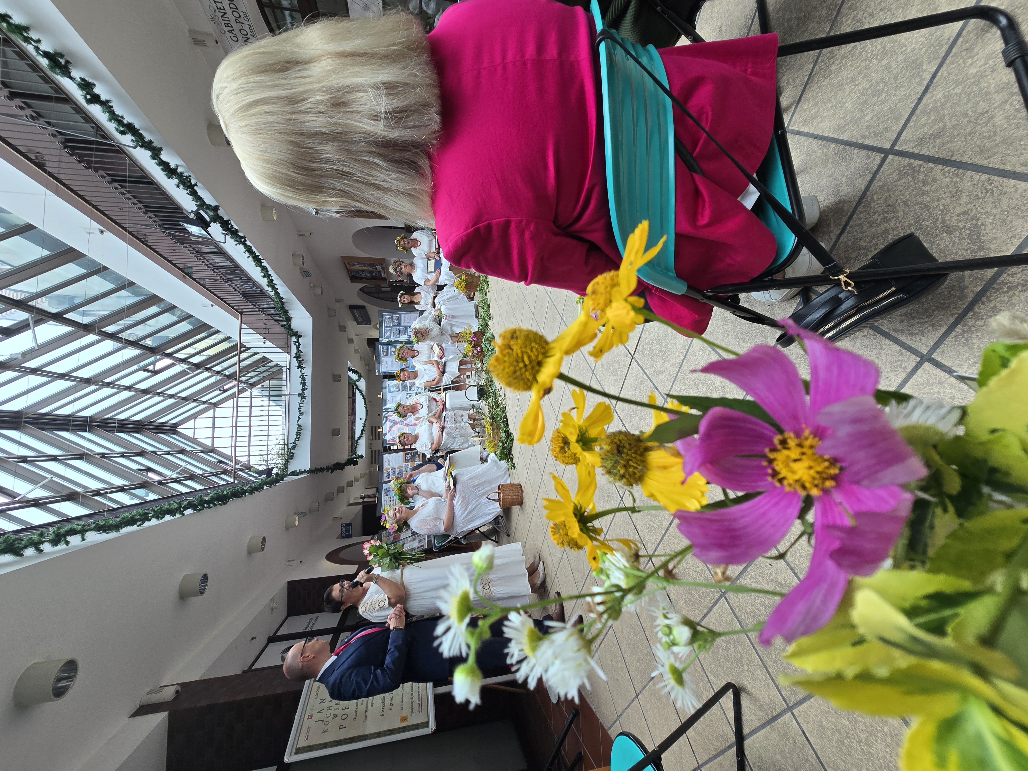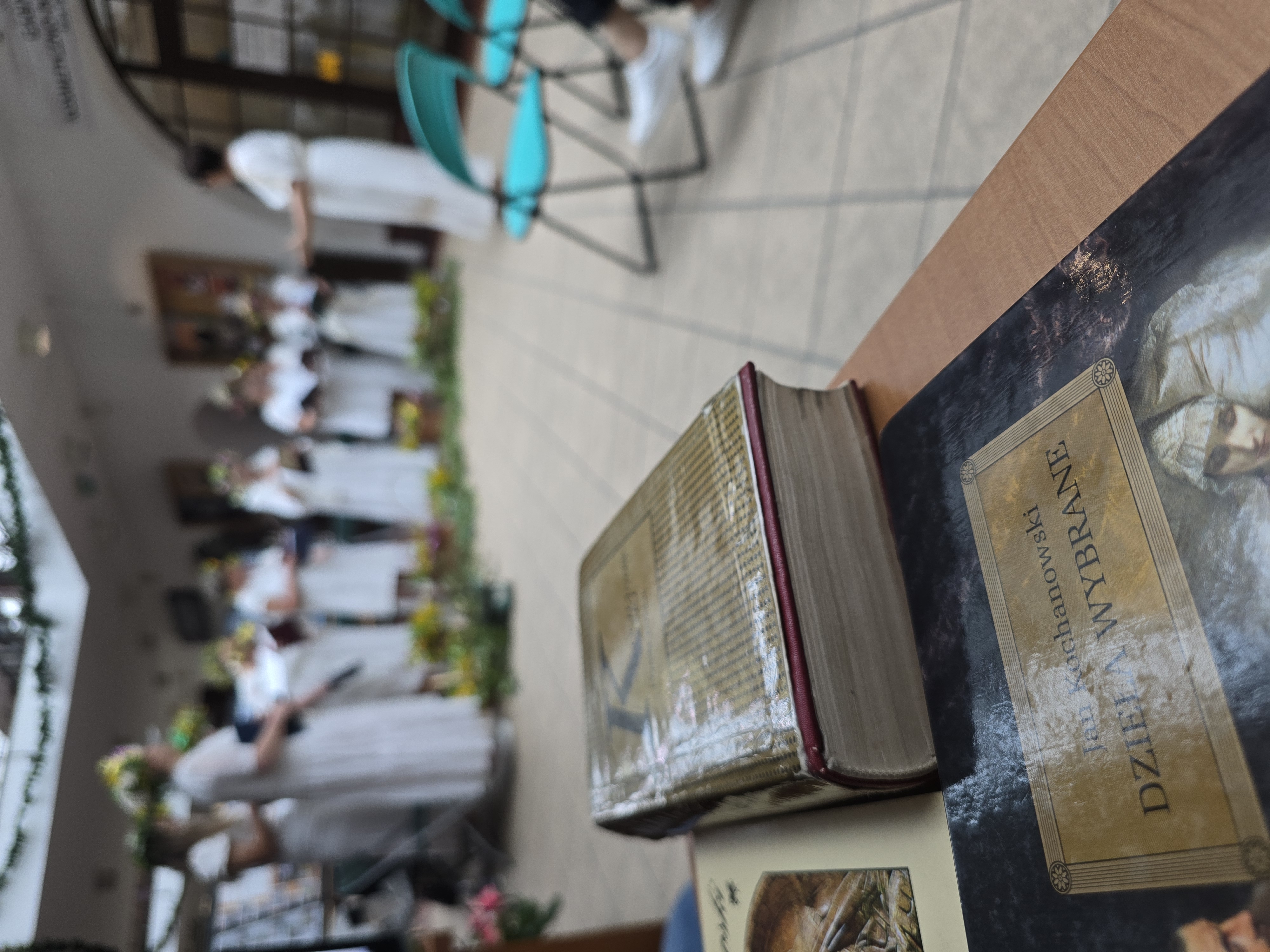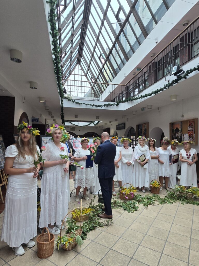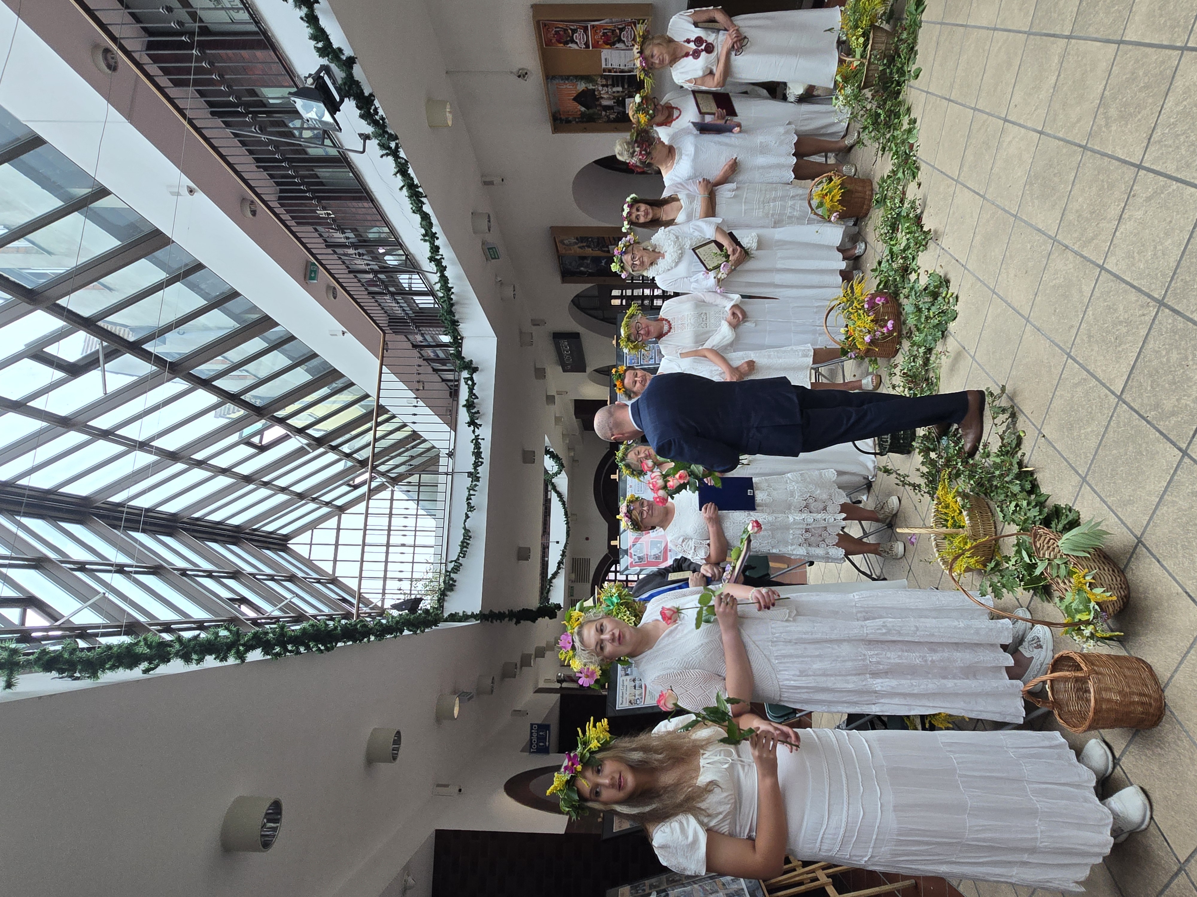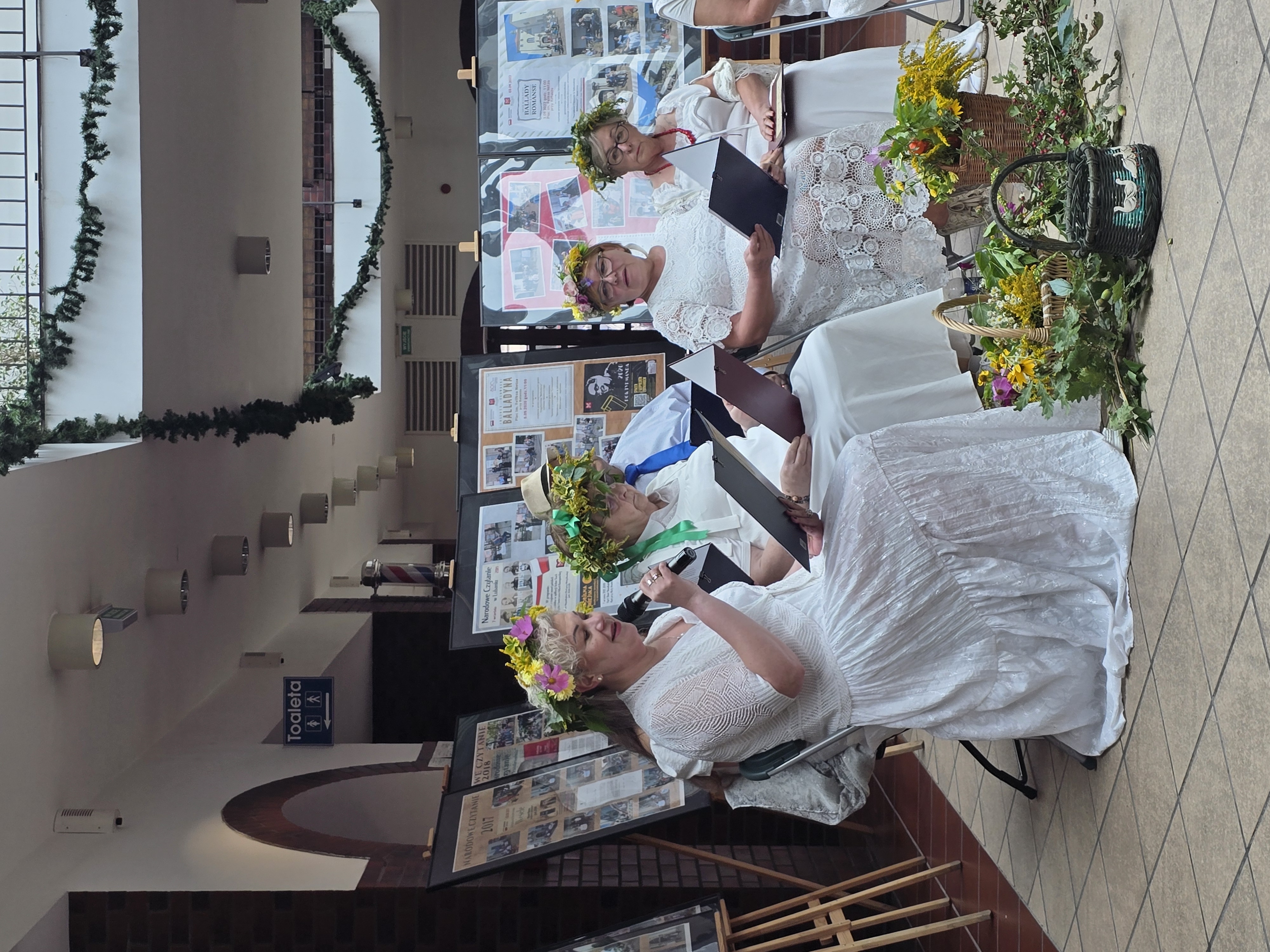 Niestety, pogoda nie pozwoliła nam na zorganizowaniu wydarzenia na dworze, ale piękne światło w środku Tretu przyjemnie pomogło rozsmakować się w poezji. Na scenie zobaczyliśmy „Teatrzyk nad Schodami” oraz Teatr „Babeczki i dwa ciacha”. W zwiewnych, jasnych strojach, z wiankami z polnych kwiatów wyglądali zjawiskowo. Ich interpretacja utworów nabrała dzięki ich zaangażowaniu nowego blasku. Piękny był koncept układania podczas wystąpienia przepięknych bukiecików, które, na pamiątkę wydarzenia, otrzymał każdy z uczestników.