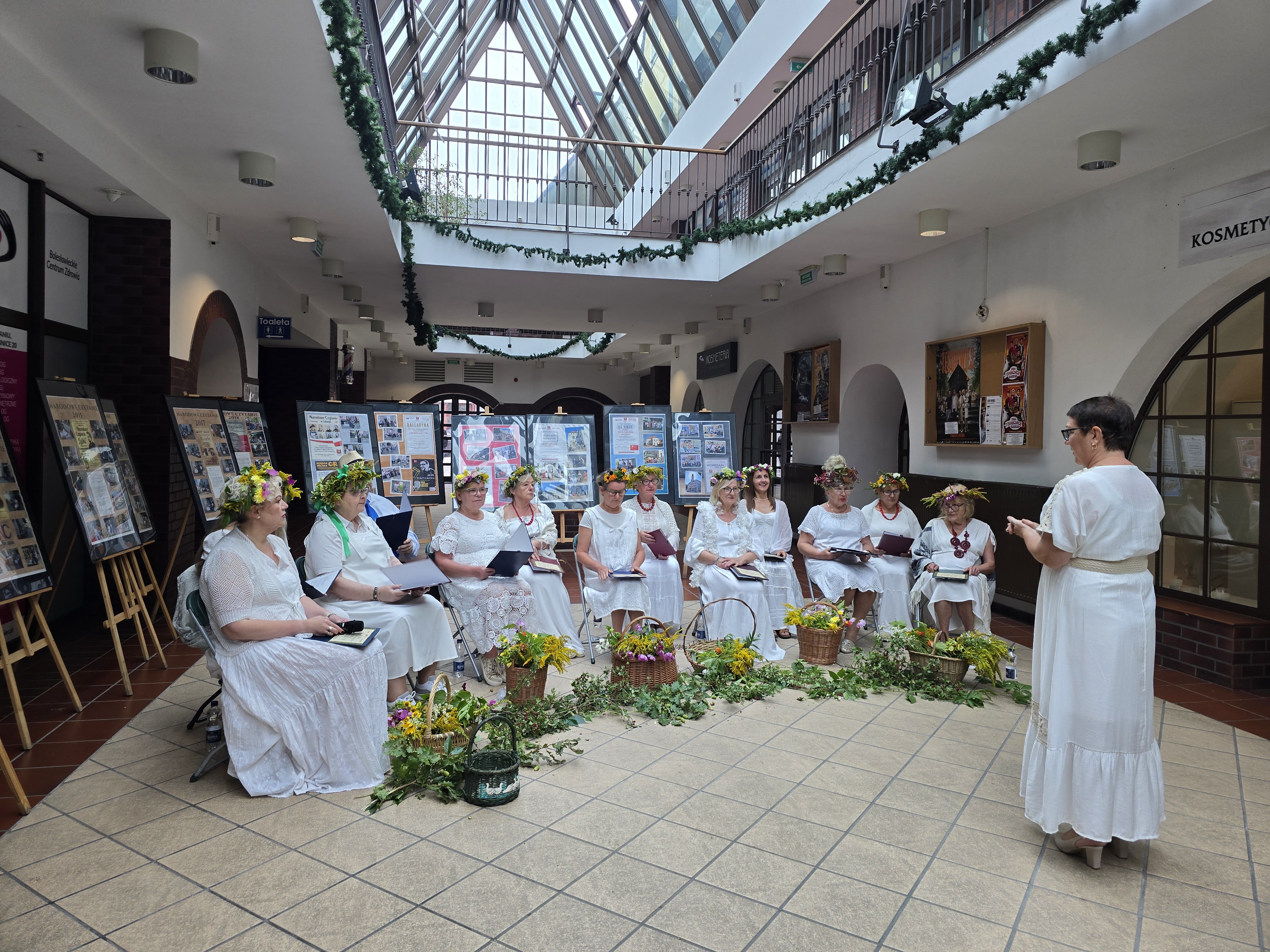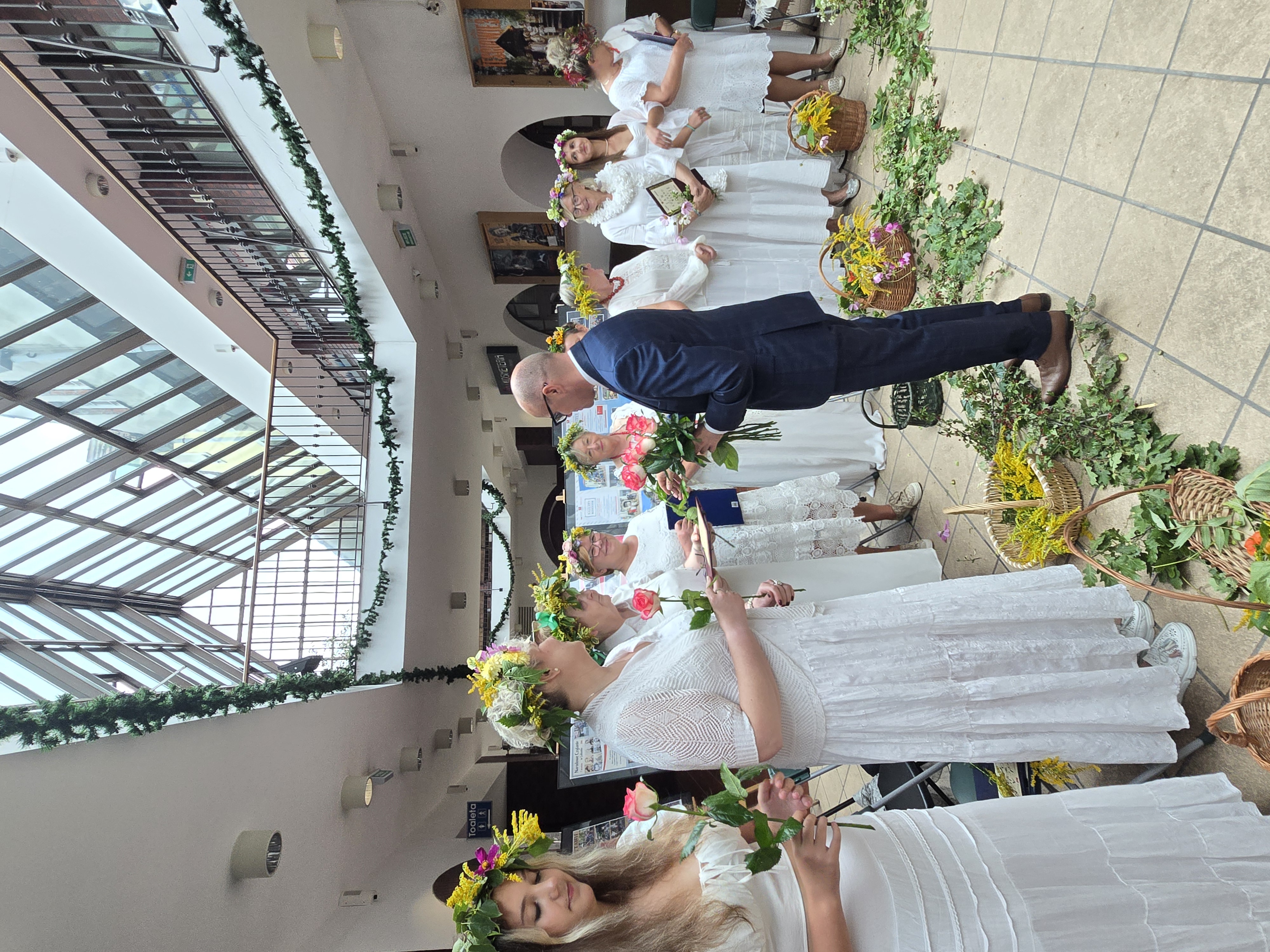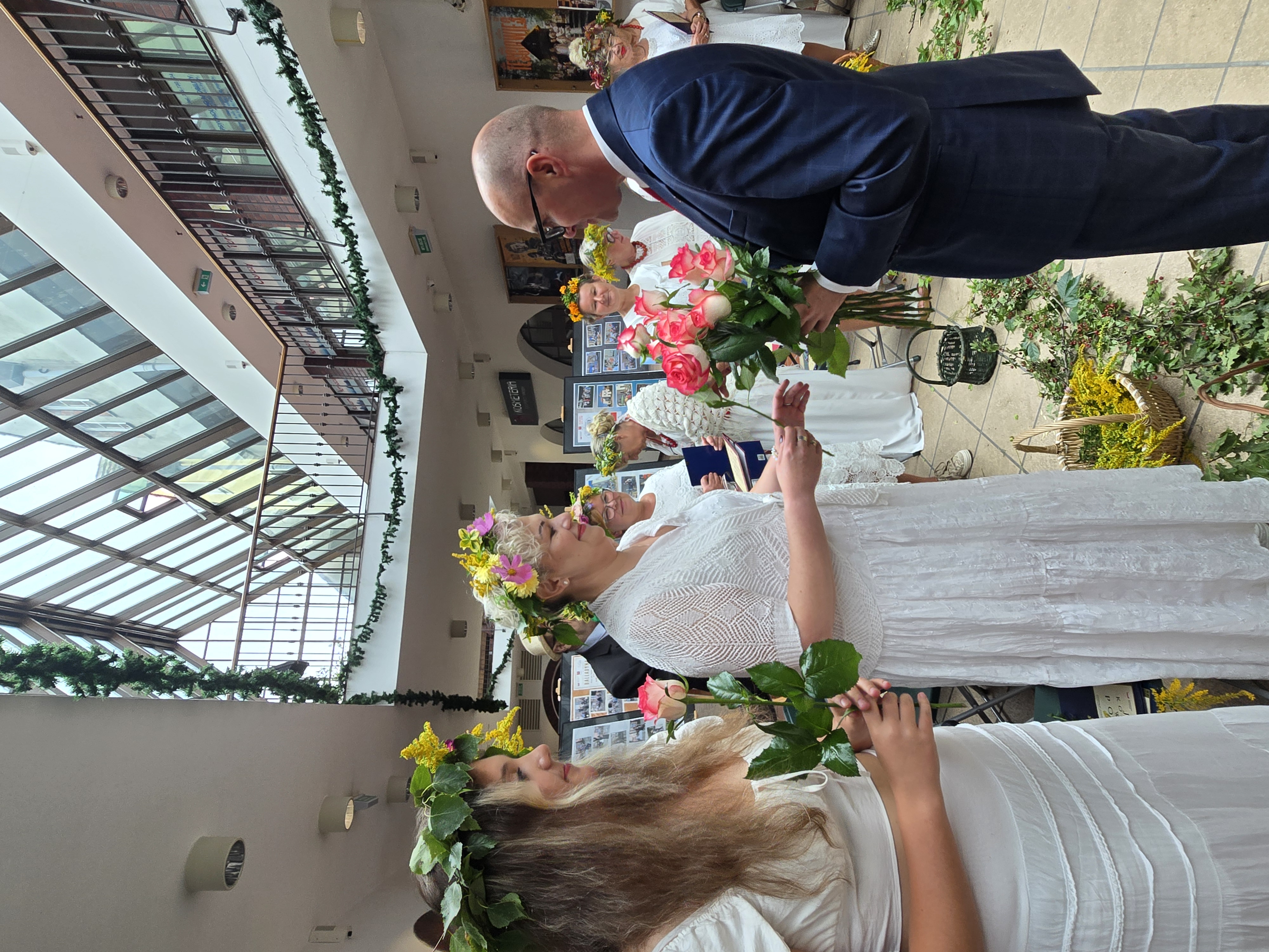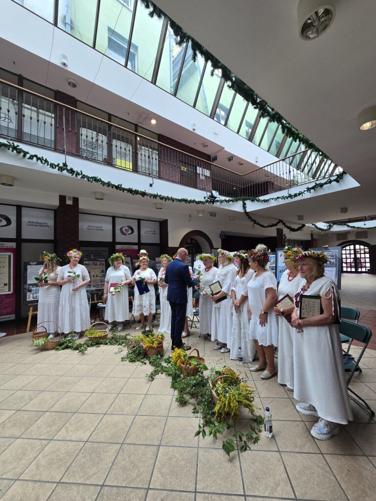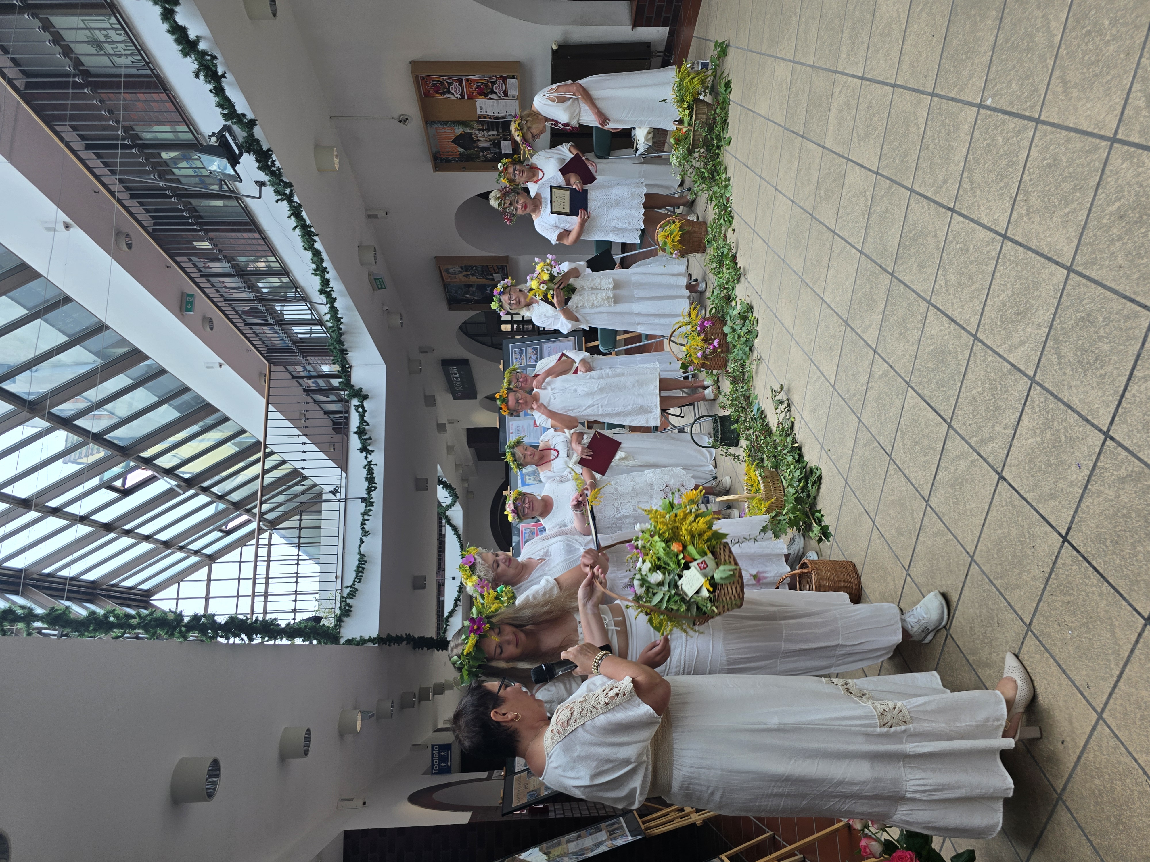 Niestety, pogoda nie pozwoliła nam na zorganizowaniu wydarzenia na dworze, ale piękne światło w środku Tretu przyjemnie pomogło rozsmakować się w poezji. Na scenie zobaczyliśmy „Teatrzyk nad Schodami” oraz Teatr „Babeczki i dwa ciacha”. W zwiewnych, jasnych strojach, z wiankami z polnych kwiatów wyglądali zjawiskowo. Ich interpretacja utworów nabrała dzięki ich zaangażowaniu nowego blasku. Piękny był koncept układania podczas wystąpienia przepięknych bukiecików, które, na pamiątkę wydarzenia, otrzymał każdy z uczestników.