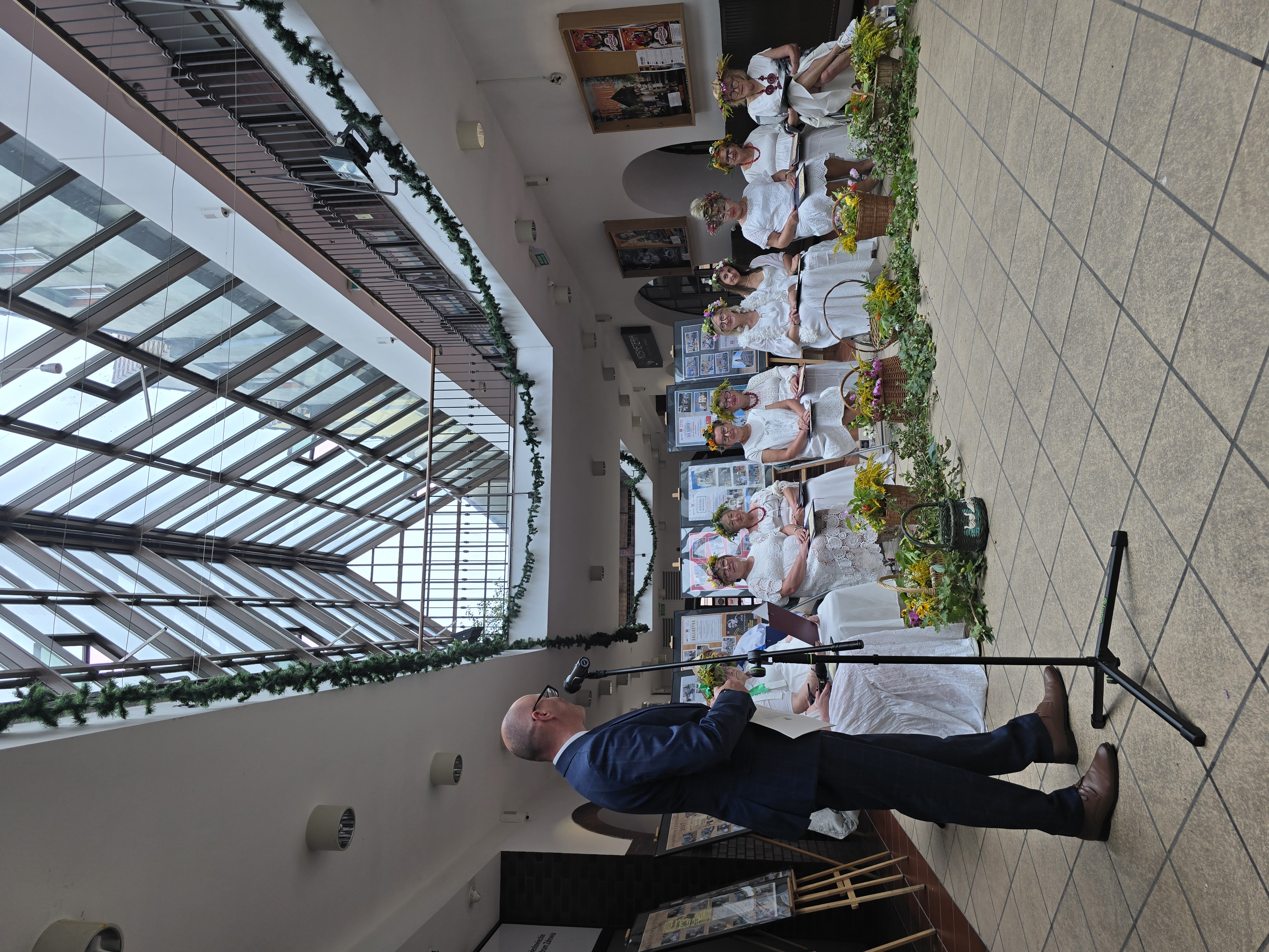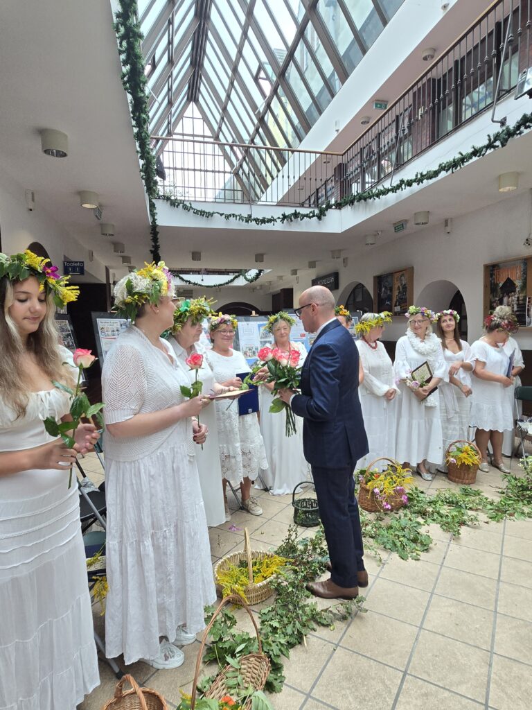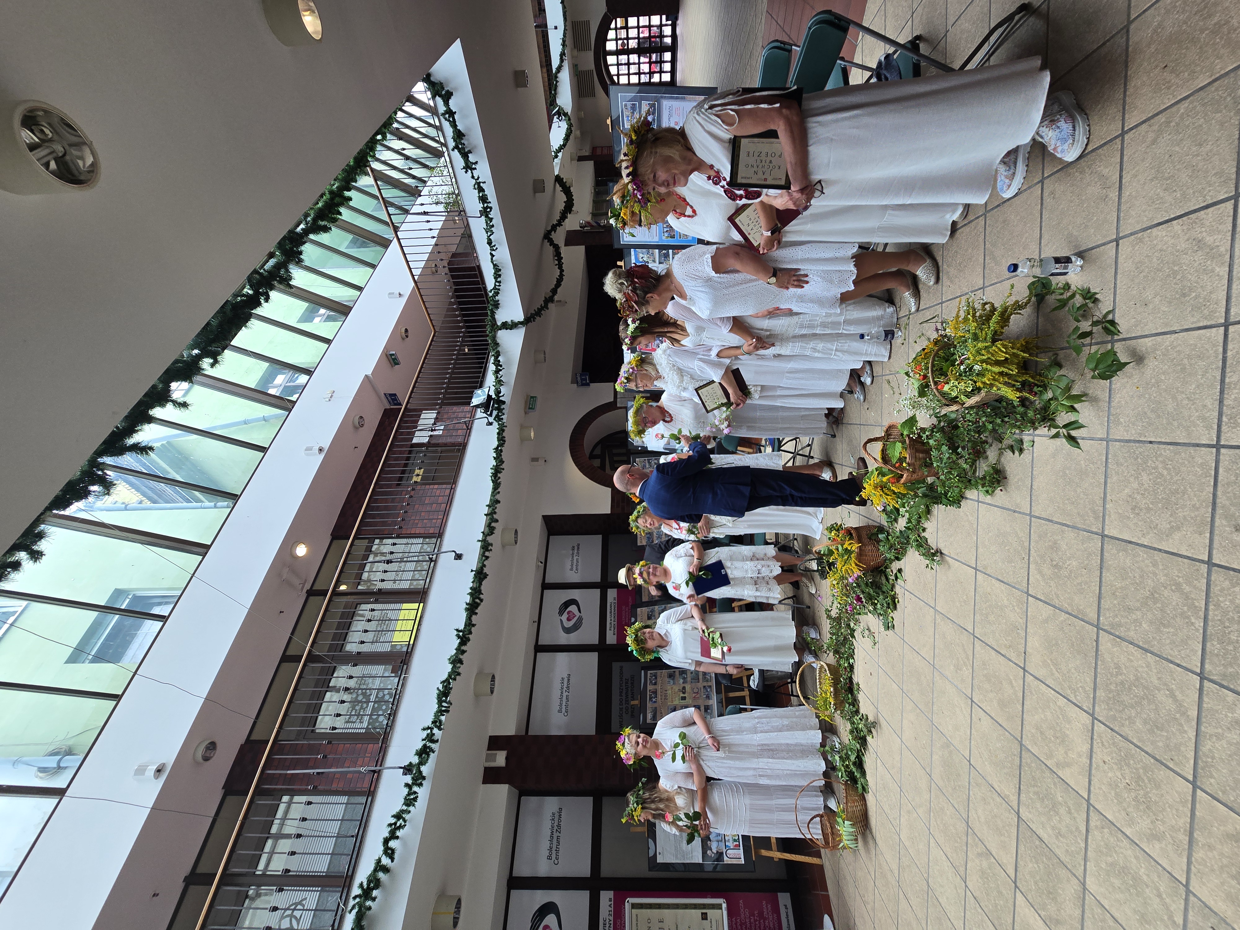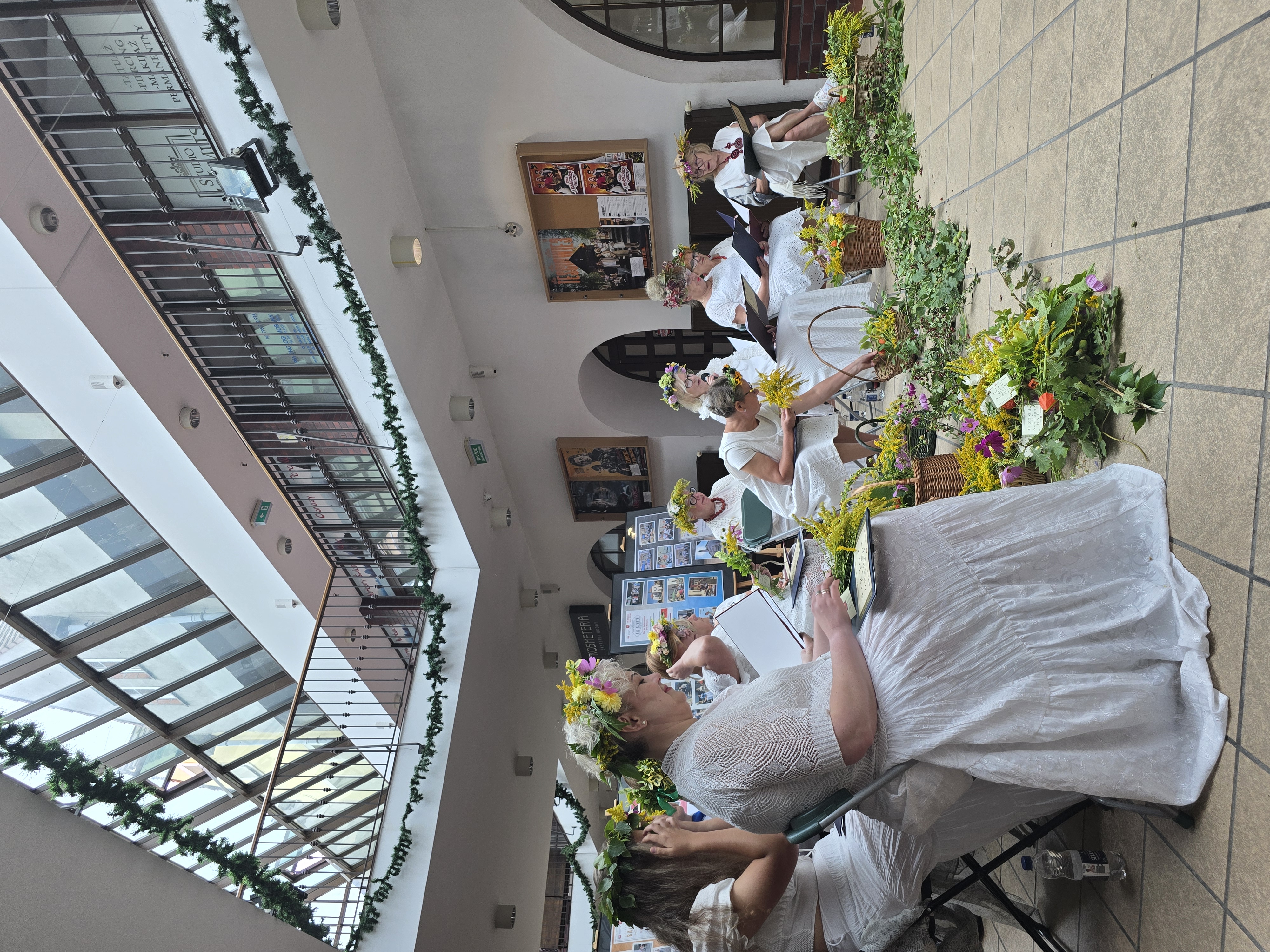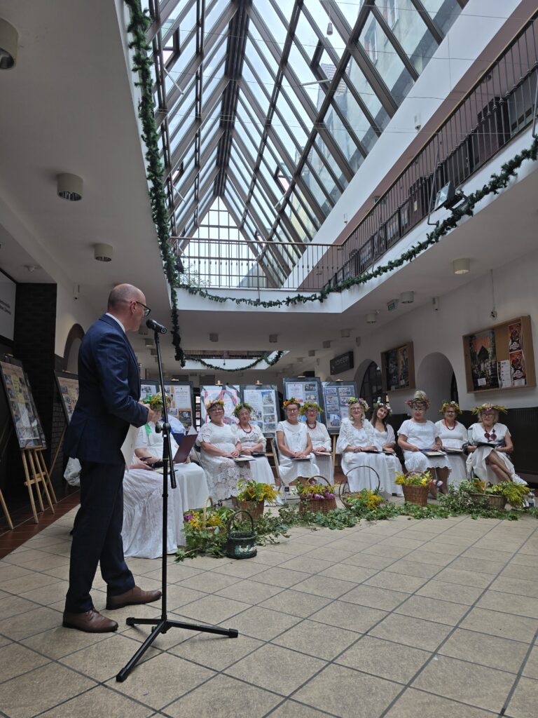 Niestety, pogoda nie pozwoliła nam na zorganizowaniu wydarzenia na dworze, ale piękne światło w środku Tretu przyjemnie pomogło rozsmakować się w poezji. Na scenie zobaczyliśmy „Teatrzyk nad Schodami” oraz Teatr „Babeczki i dwa ciacha”. W zwiewnych, jasnych strojach, z wiankami z polnych kwiatów wyglądali zjawiskowo. Ich interpretacja utworów nabrała dzięki ich zaangażowaniu nowego blasku. Piękny był koncept układania podczas wystąpienia przepięknych bukiecików, które, na pamiątkę wydarzenia, otrzymał każdy z uczestników.