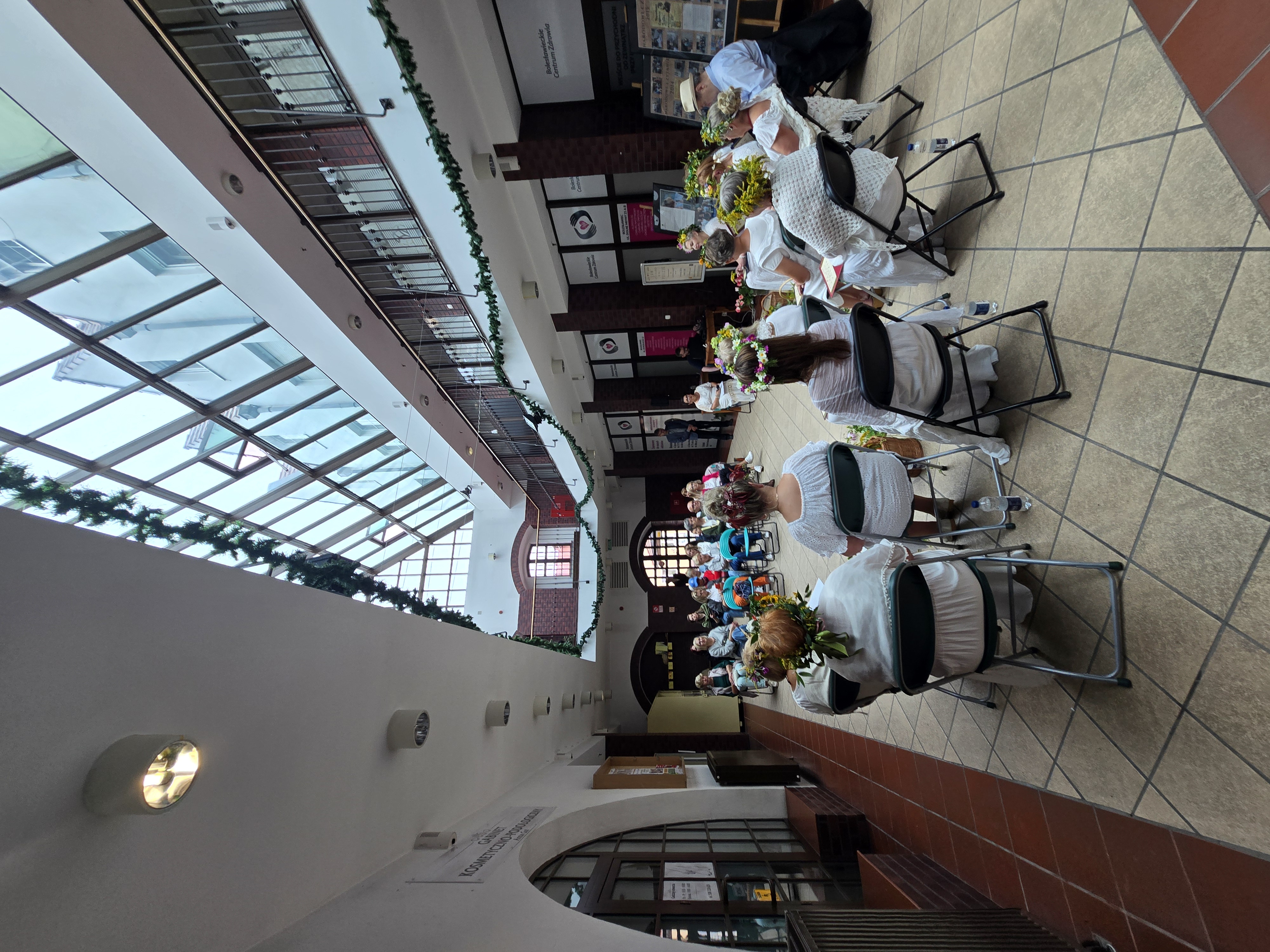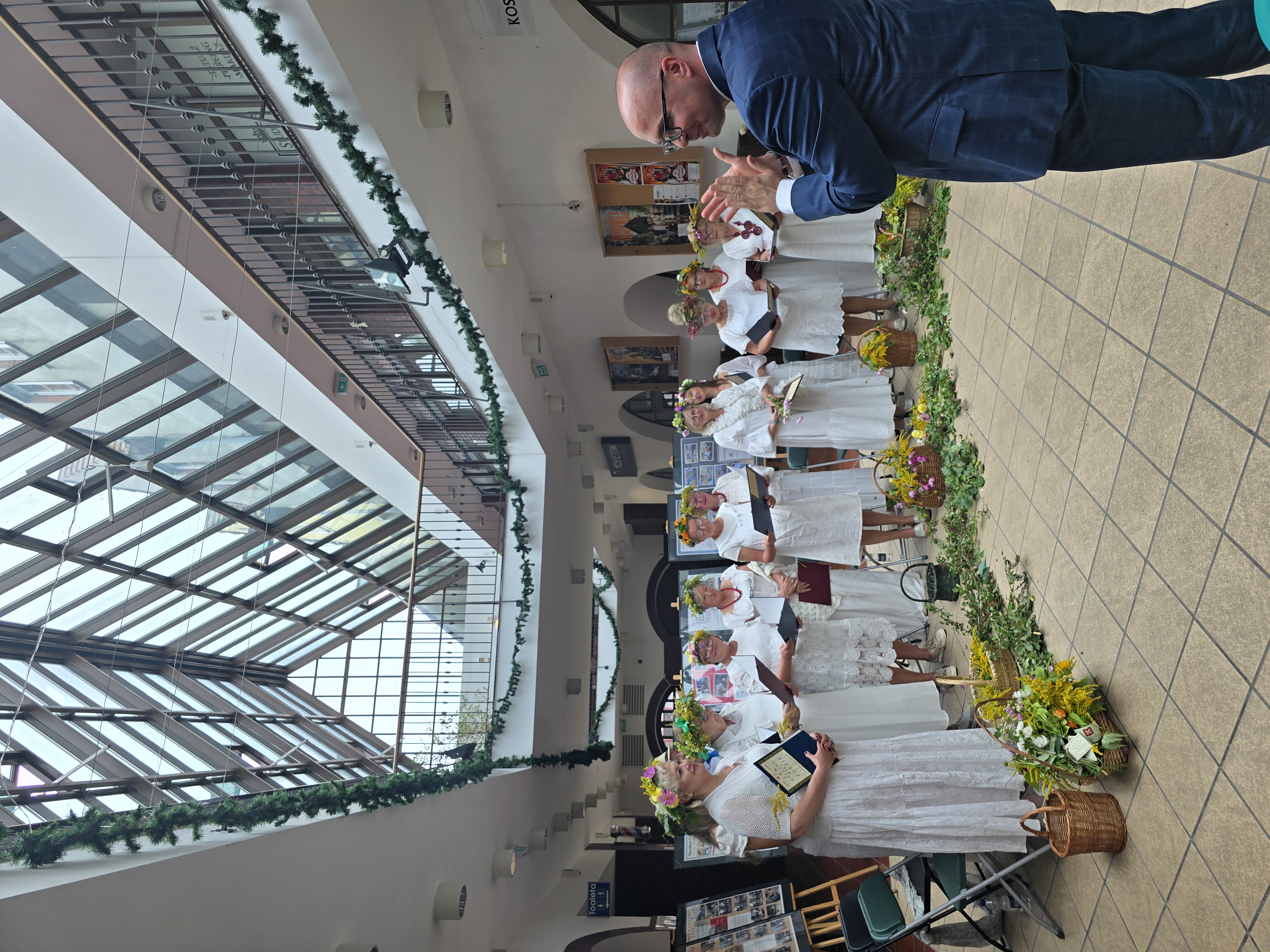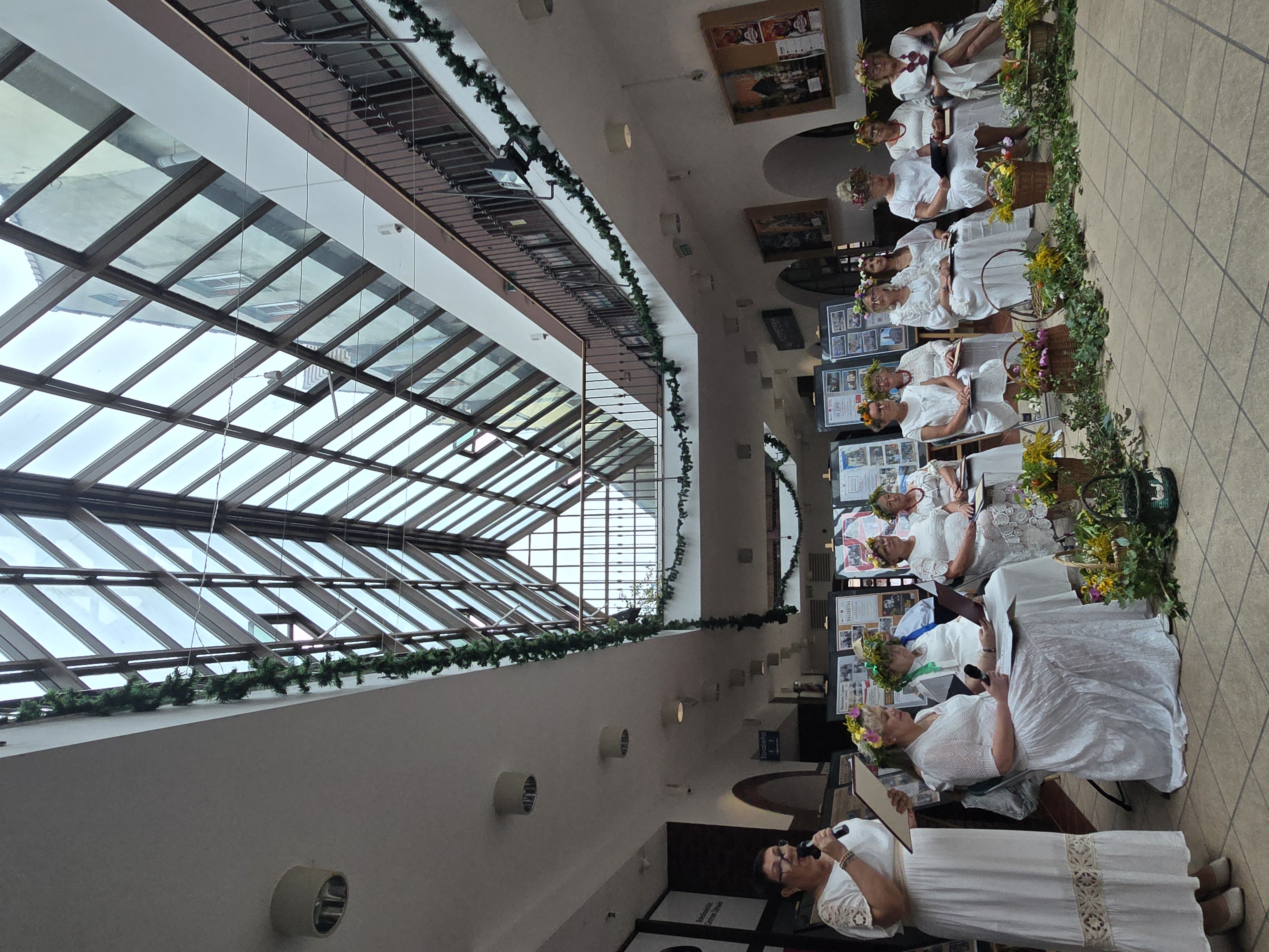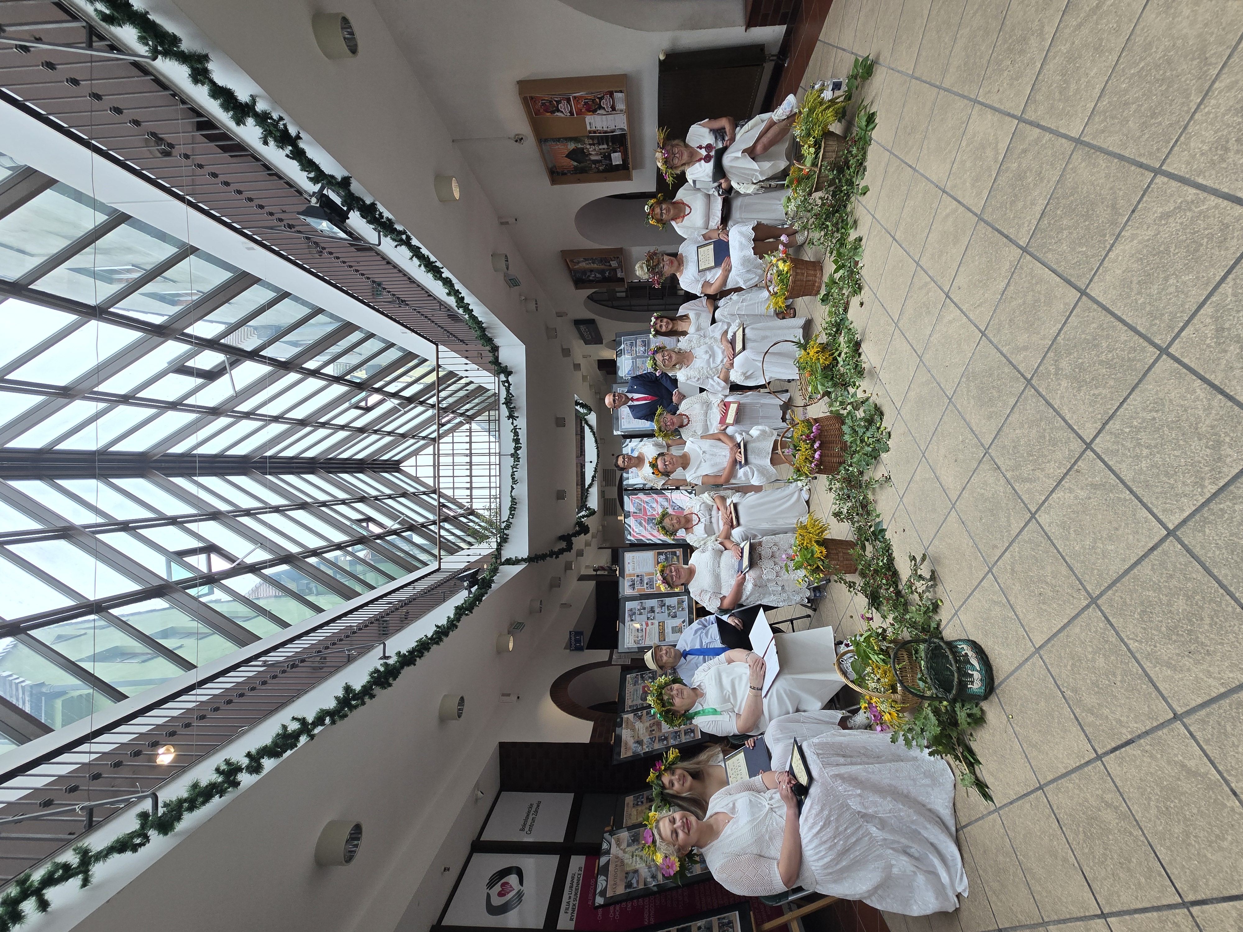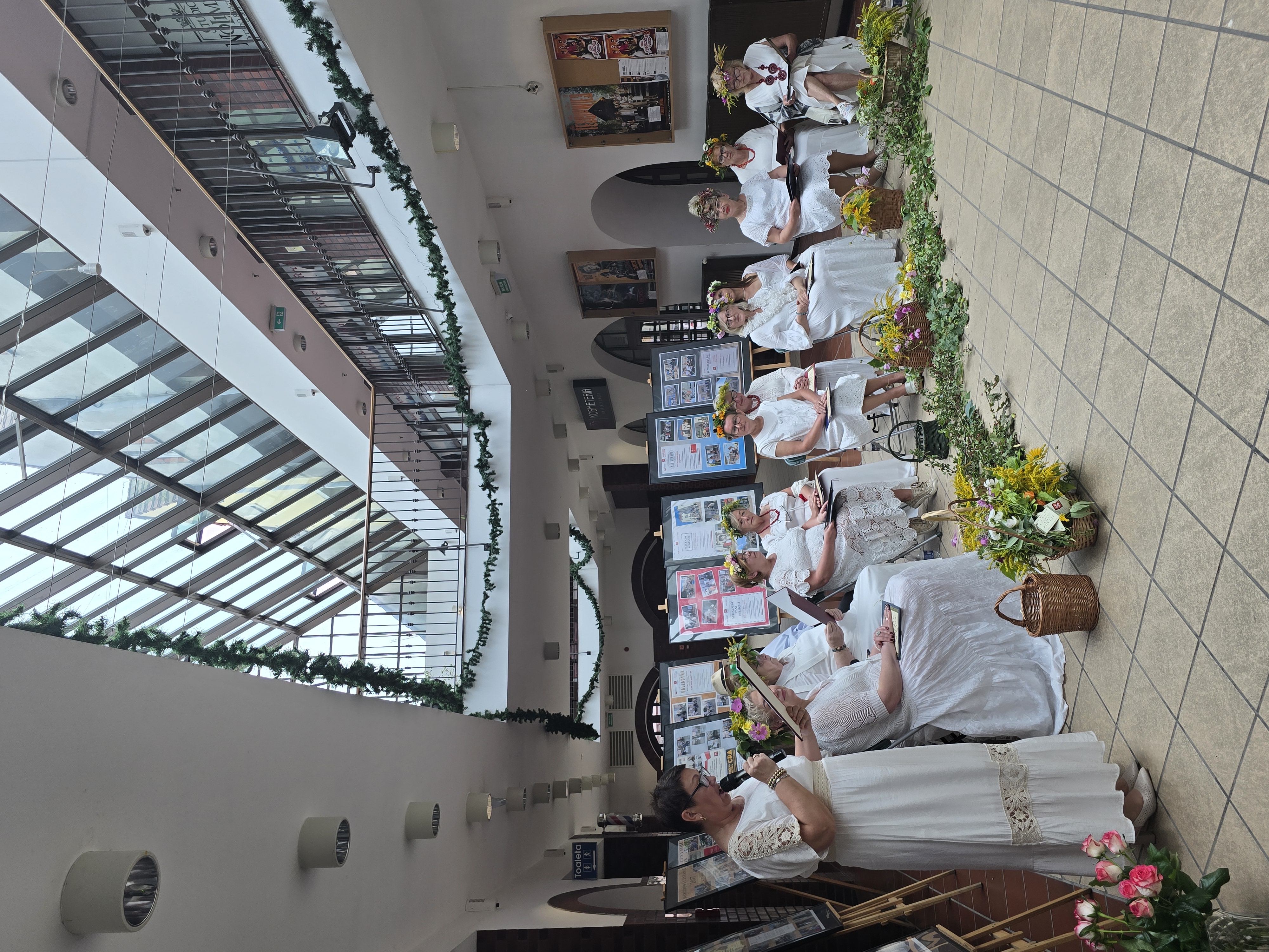 Niestety, pogoda nie pozwoliła nam na zorganizowaniu wydarzenia na dworze, ale piękne światło w środku Tretu przyjemnie pomogło rozsmakować się w poezji. Na scenie zobaczyliśmy „Teatrzyk nad Schodami” oraz Teatr „Babeczki i dwa ciacha”. W zwiewnych, jasnych strojach, z wiankami z polnych kwiatów wyglądali zjawiskowo. Ich interpretacja utworów nabrała dzięki ich zaangażowaniu nowego blasku. Piękny był koncept układania podczas wystąpienia przepięknych bukiecików, które, na pamiątkę wydarzenia, otrzymał każdy z uczestników.