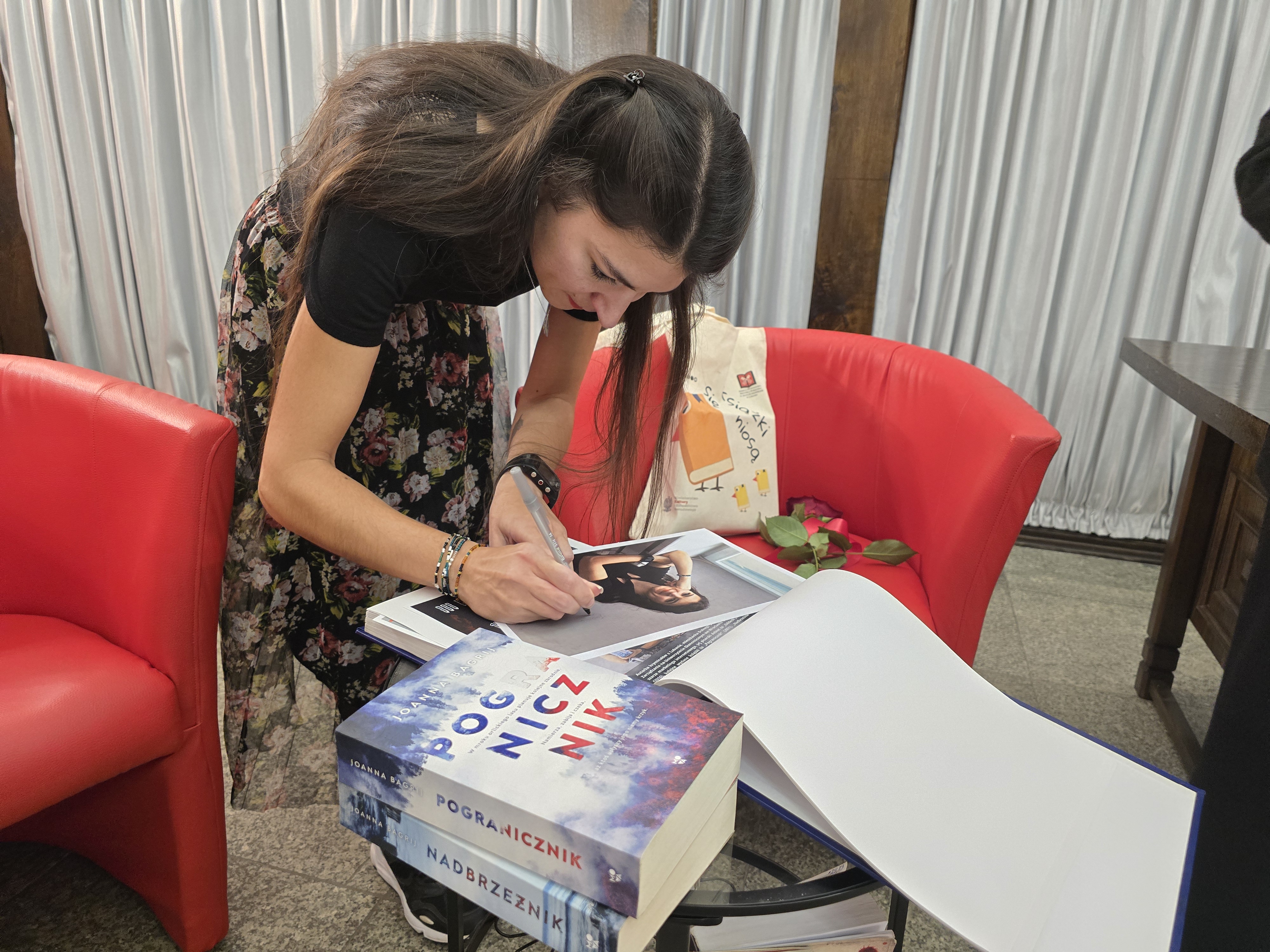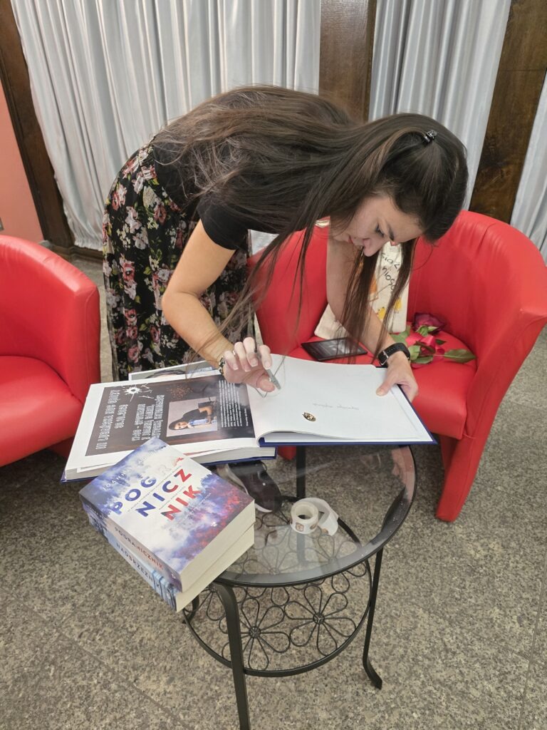 Zaczynała już w podstawówce, pisząc opowiadania i historie, które już wtedy przychodziły jej do głowy. Dość wcześnie zaczęła pisać bardziej krwawe powieści, bo w 2016, kiedy ta część literatury dopiero raczkowała, wydała swoją pierwszą książkę „Oddech śmierci”. Autorka opowiadała o swoich początkach, o poszukiwaniach wydawcy i późniejszej jego zmianie. Mogliśmy posłuchać o drodze, jaką musi przejść początkujący autor. O słuchaniu opinii czytelników i ewolucji różnych aspektów serii. Nie zabrakło także pytań o Lenę, główną bohaterkę.