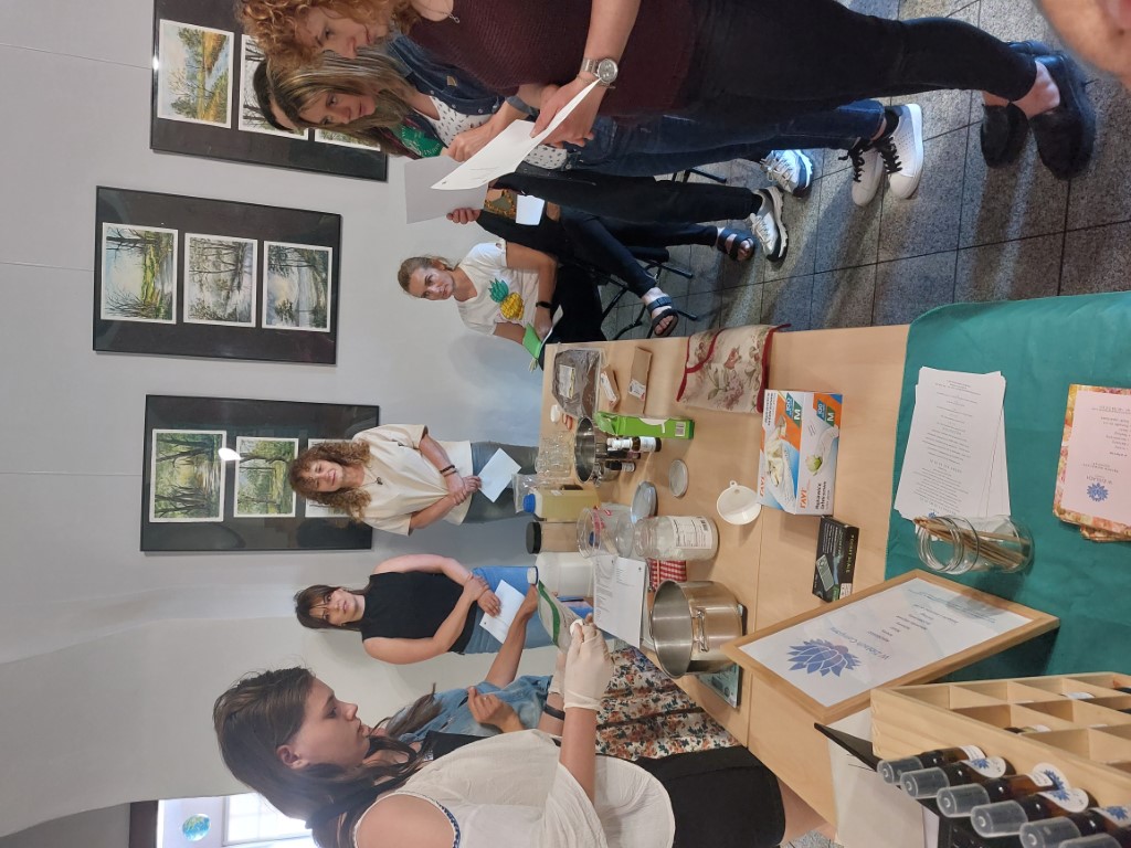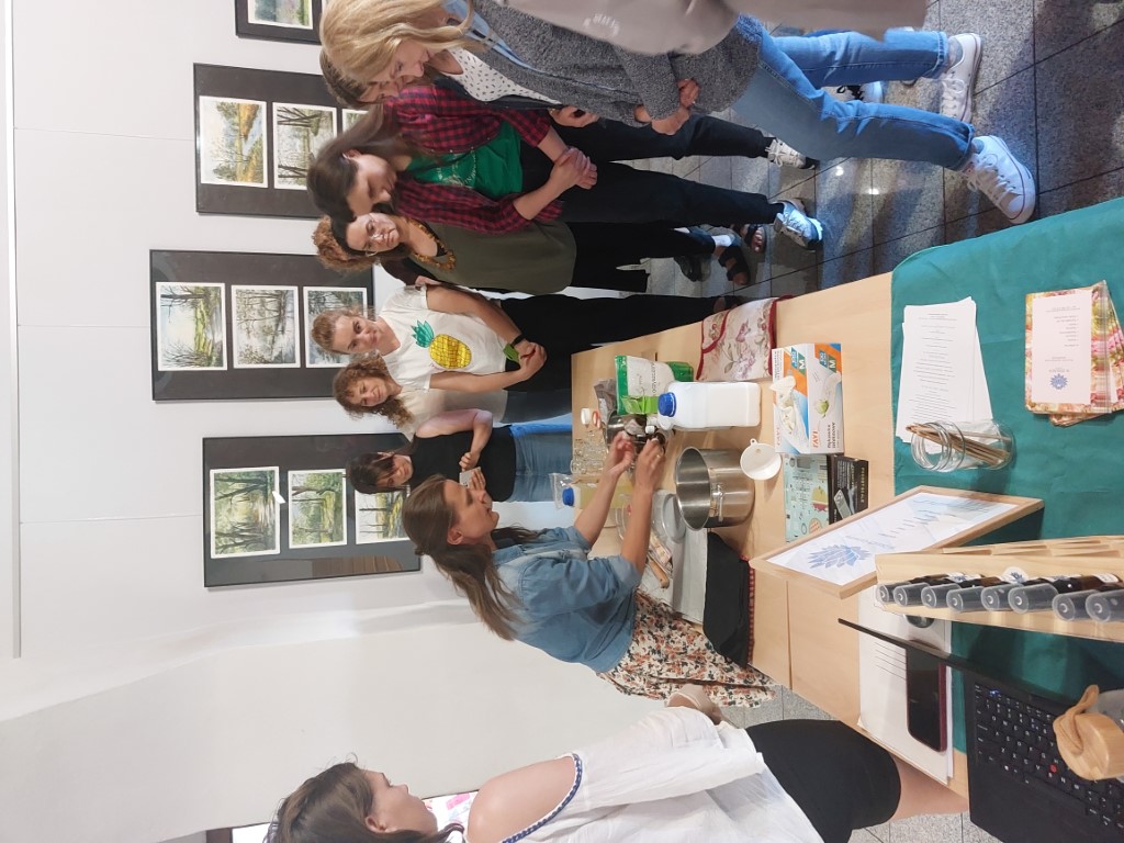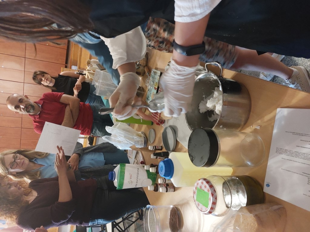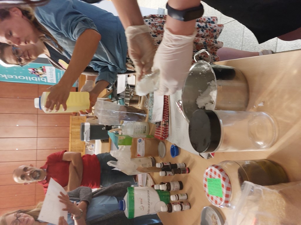 Zwieńczeniem spotkania było wspólne stworzenie dezodorantu na bazie oleju kokosowego, sody oczyszczonej, chlorku magnezu i olejku zapachowego oraz peelingu cukrowego z cukru trzcinowego, oleju z pestek winogron i nasion wiesiołka. Zapach olejków eterycznych unosił się w powietrzu. Na zakończenie każdy z gości mógł zadać pytanie prowadzącej, obejrzeć (powąchać) jej wyroby i zabrać ze sobą to, co wspólnie zostało wykonane.