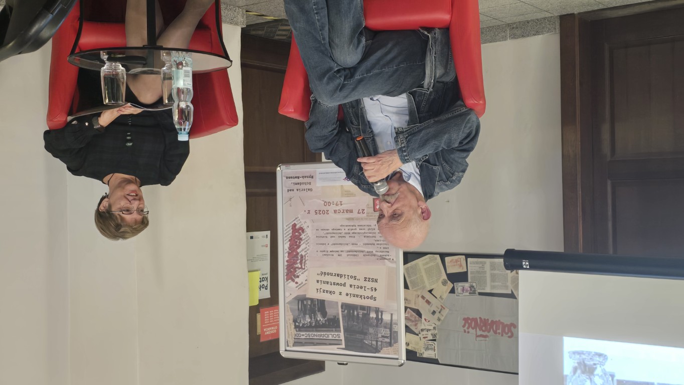 Najpierw głos zabrał Łukasz Sołtysik, który z chęcią przybył do nas z wrocławskiego oddziału IPN. Nakreślił jak wyglądały narodziny „Solidarności” na Dolnym Śląsku w 1980 roku. Następnie głos zabrał Pan Zdzisław Bykowski, który opowiedział nam o tym okresie bardziej lokalnie. Jak to wszystko rozgrywało się w lubańskich zakładach i w zakładach ościennych miast w latach 1980-1989.