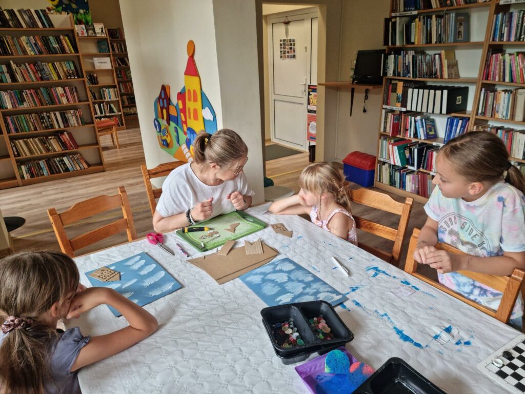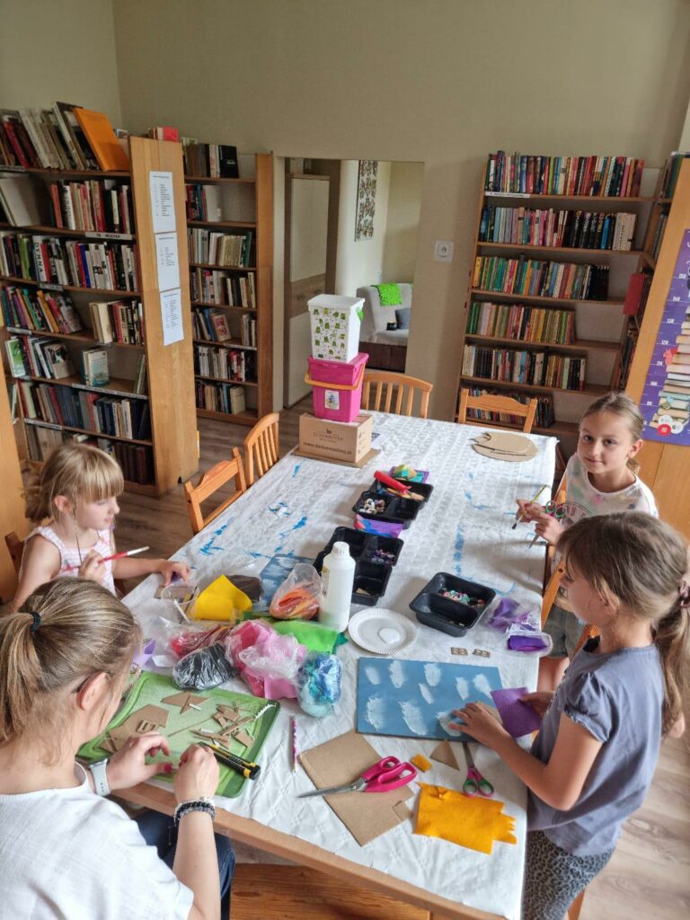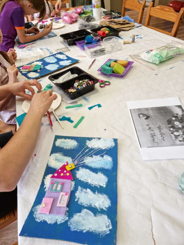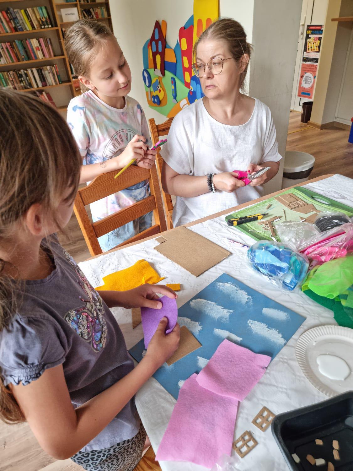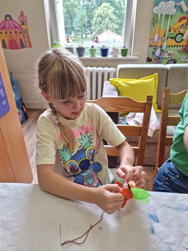 W pierwszym tygodniu zajęć wakacyjnych, w Filii nr 3 na Osiedlu Piastów, dzieci opowiadały tę historię o miłości i przywiązaniu, poprzez tworzenie pięknych prac plastycznych. To była świetna zabawa, szczególnie przy wyborze guzików.