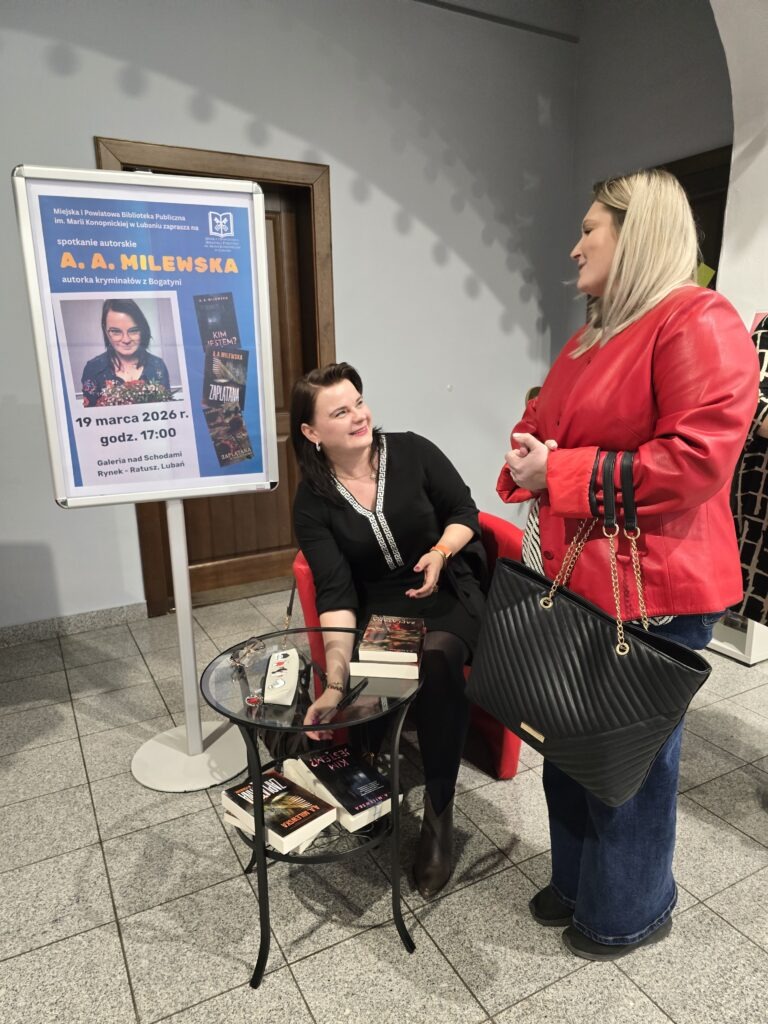 Bardzo lubimy, gdy w naszej bibliotece pojawiają się autorzy z naszego regionu. Zdajemy sobie sprawę, że w taki sposób zaczynali najwięksi pisarze, dlatego zawsze staramy się dawać im duże wsparcie. Tym razem zostaliśmy zaszczyceni obecnością autorki kryminałów z Bogatyni – Pani Agnieszka A. Milewska – autorka (znana jako A.A. Milewska).