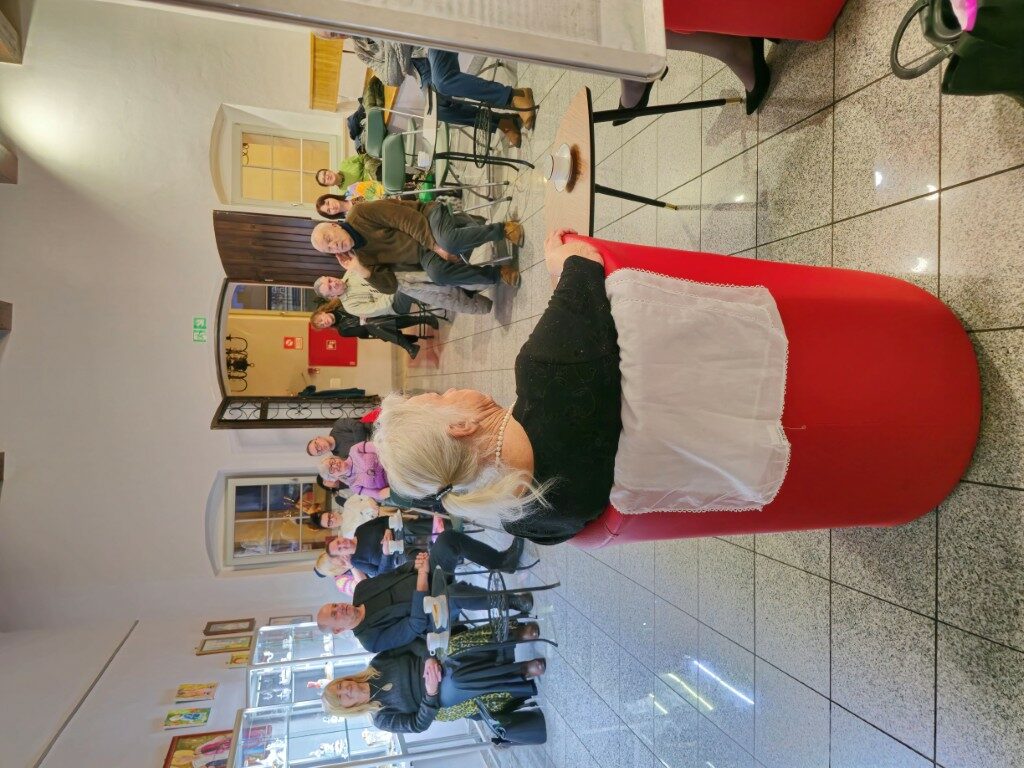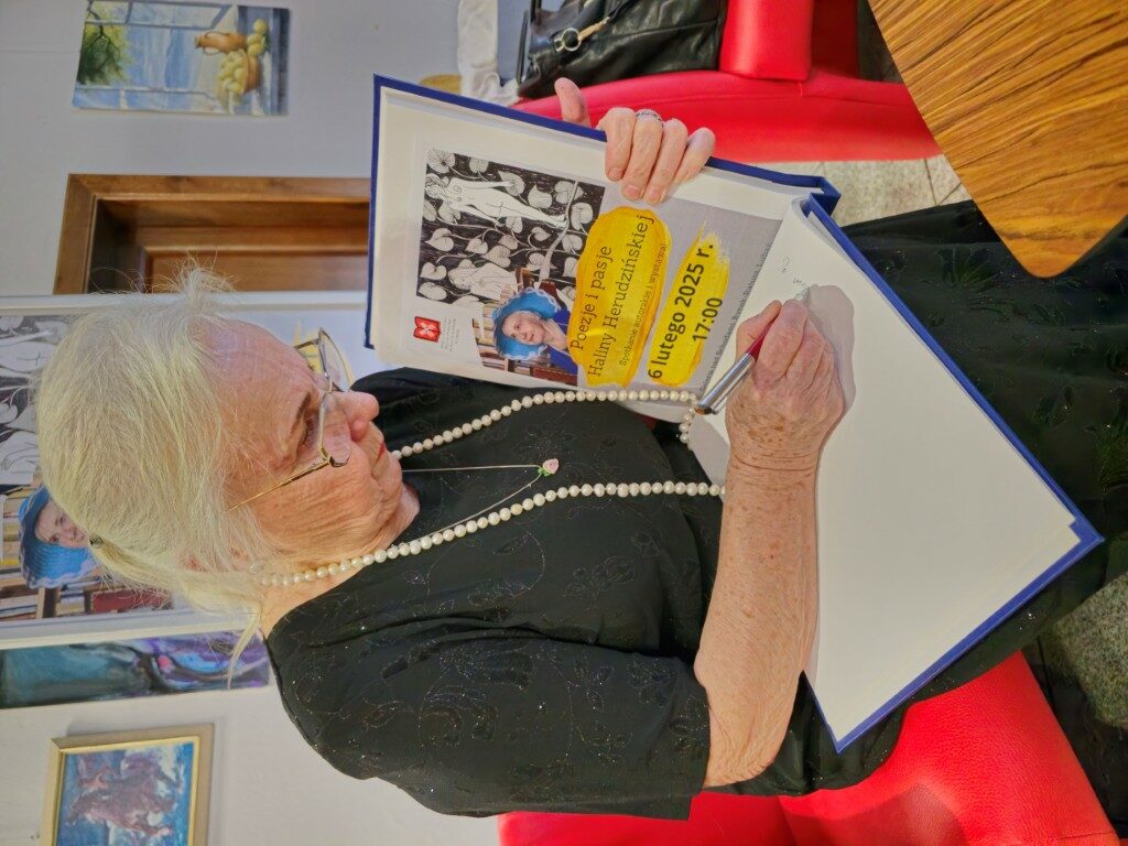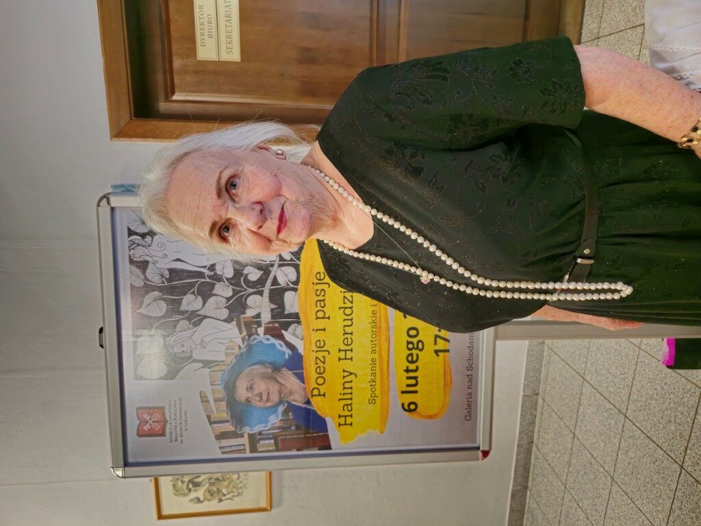 Pani Halina to prawdziwa dama, która zaprezentowała kolekcję pięknych rzeczy. W gablotach została zaprezentowała porcelana, na ścianach zawisły wyjątkowe obrazy. A Galeria nad Schodami została zapełniona miłośnikami wierszy. Dowiedzieliśmy się, jak to się stało, że sięgnęła po pióro i po prostu zaczęła pisać. Autorka opowiedziała o swojej drodze artystycznej, inspiracjach oraz procesie twórczym. Podkreśliła, jak ważne jest dla niej czerpanie z codziennych doświadczeń oraz emocji, które stara się przelewać na papier.