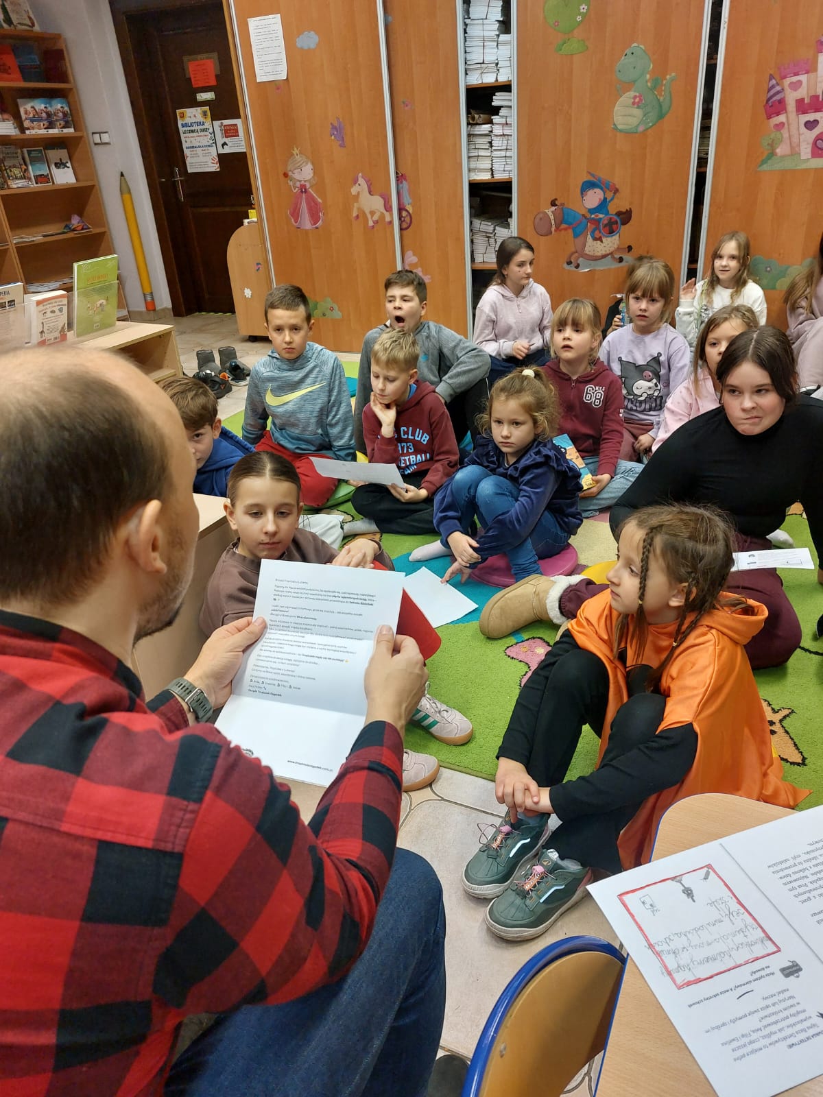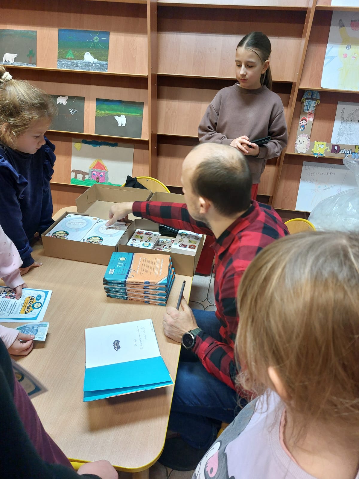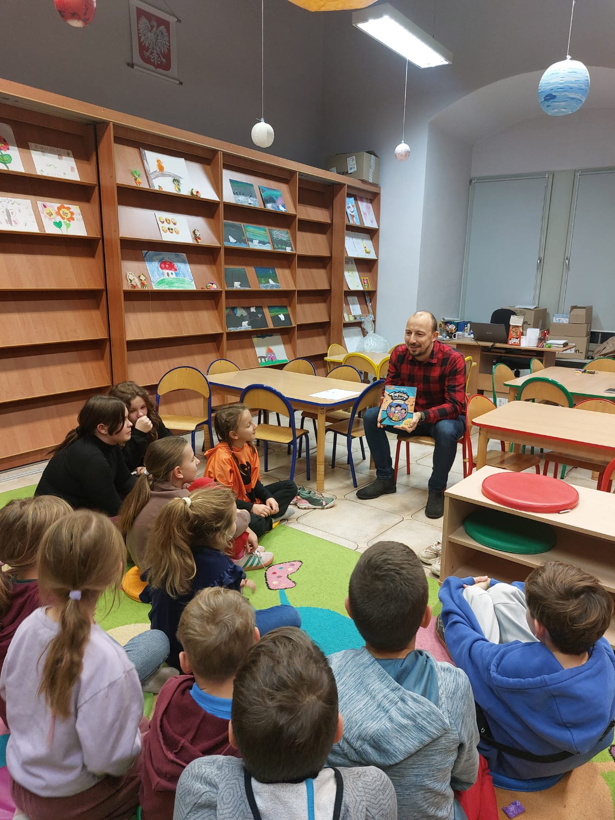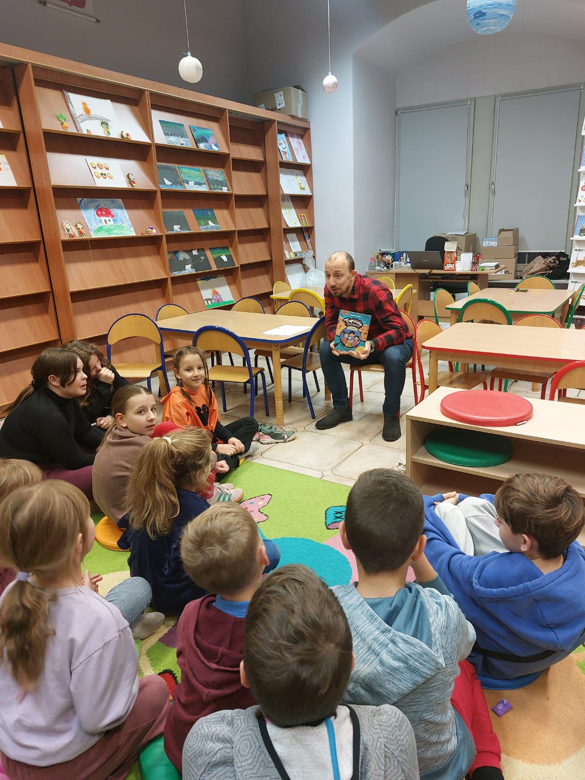 Dziękujemy autorowi oraz jego przemiłej ekipie za świetne odwiedziny i sprawienie, że nasi mali detektywi opuszczali bibliotekę z wypiekami na szczęśliwych buziach.