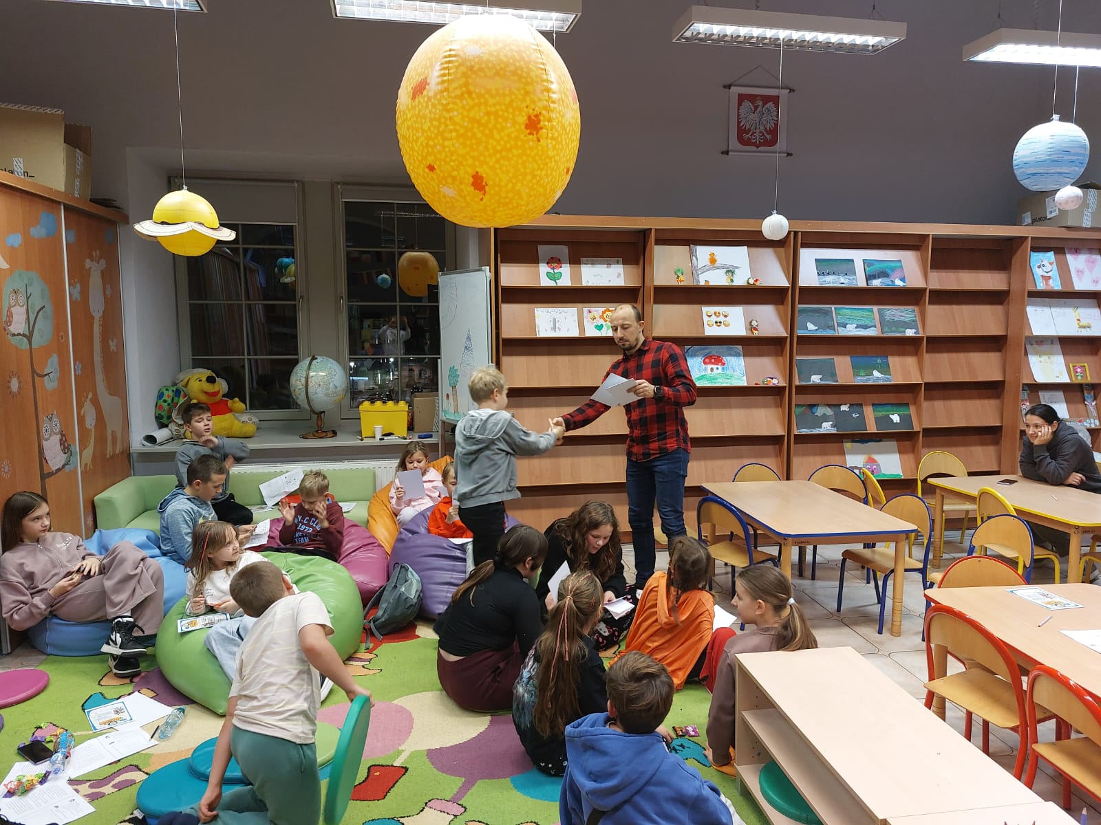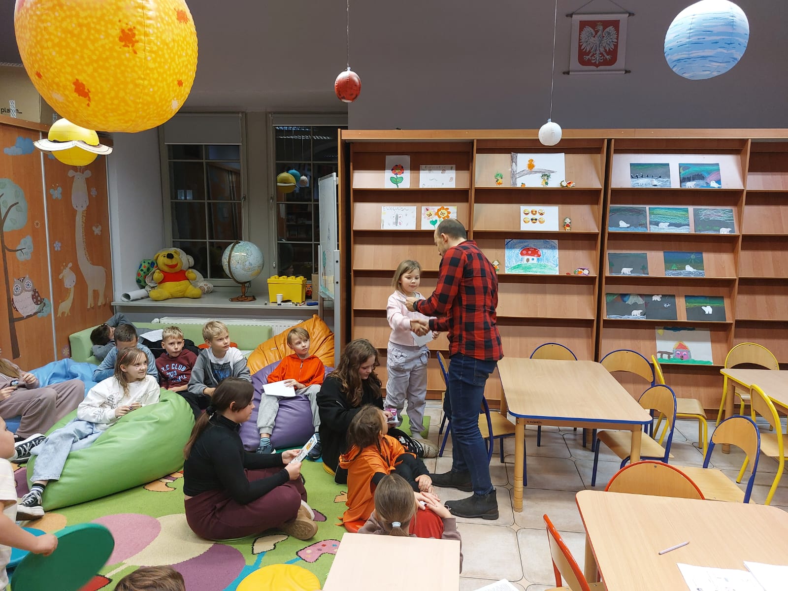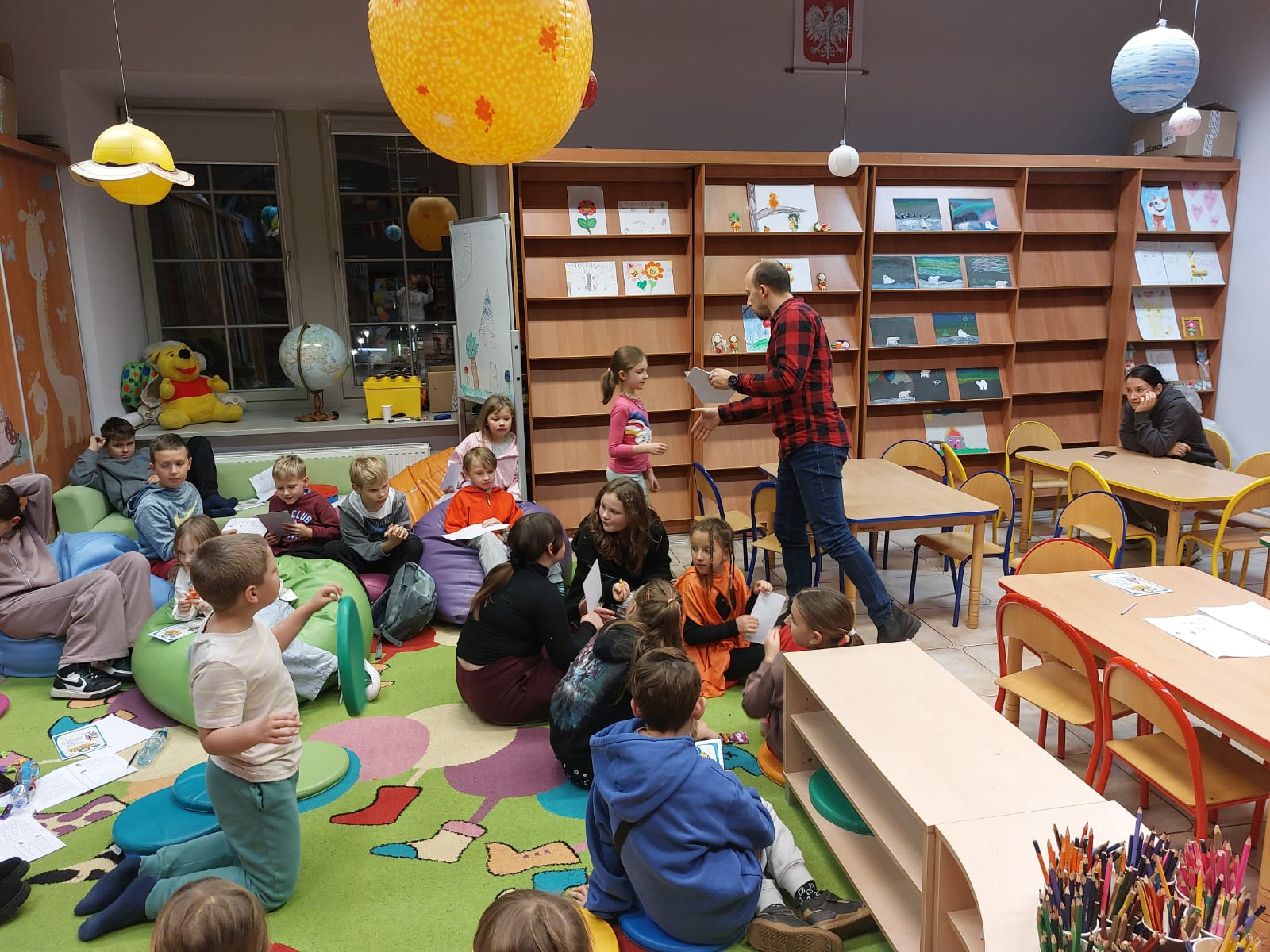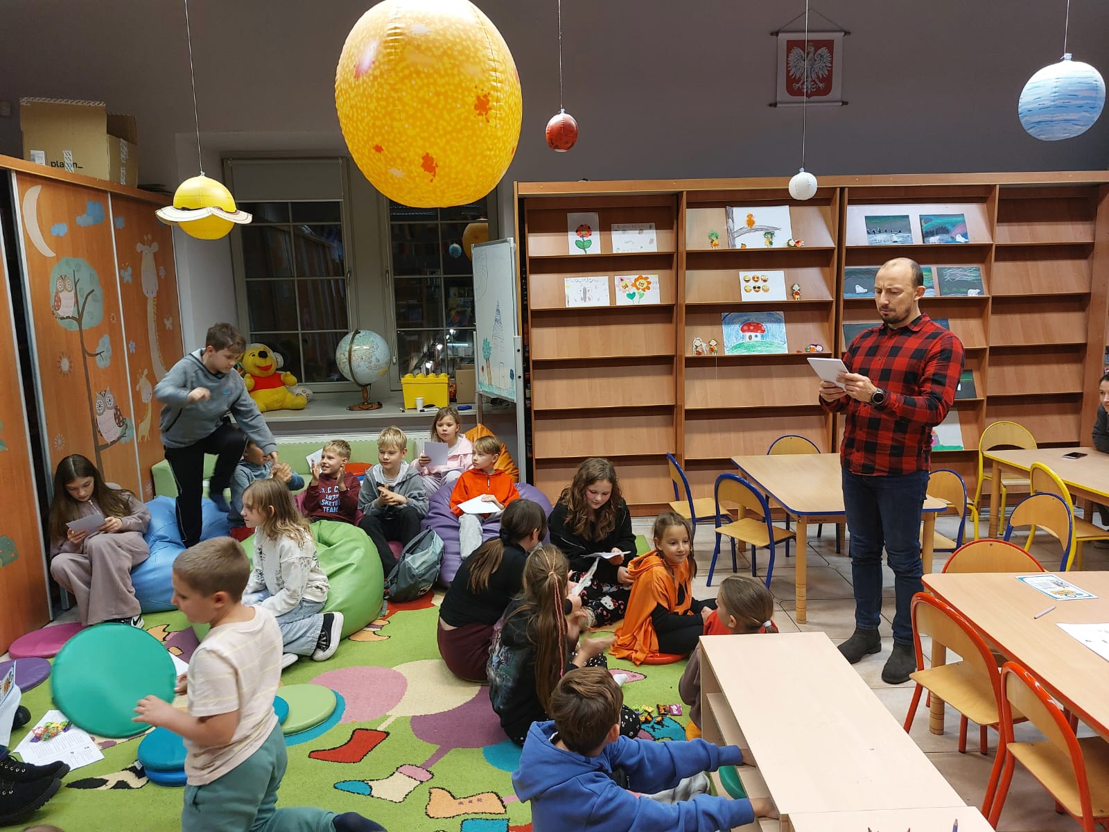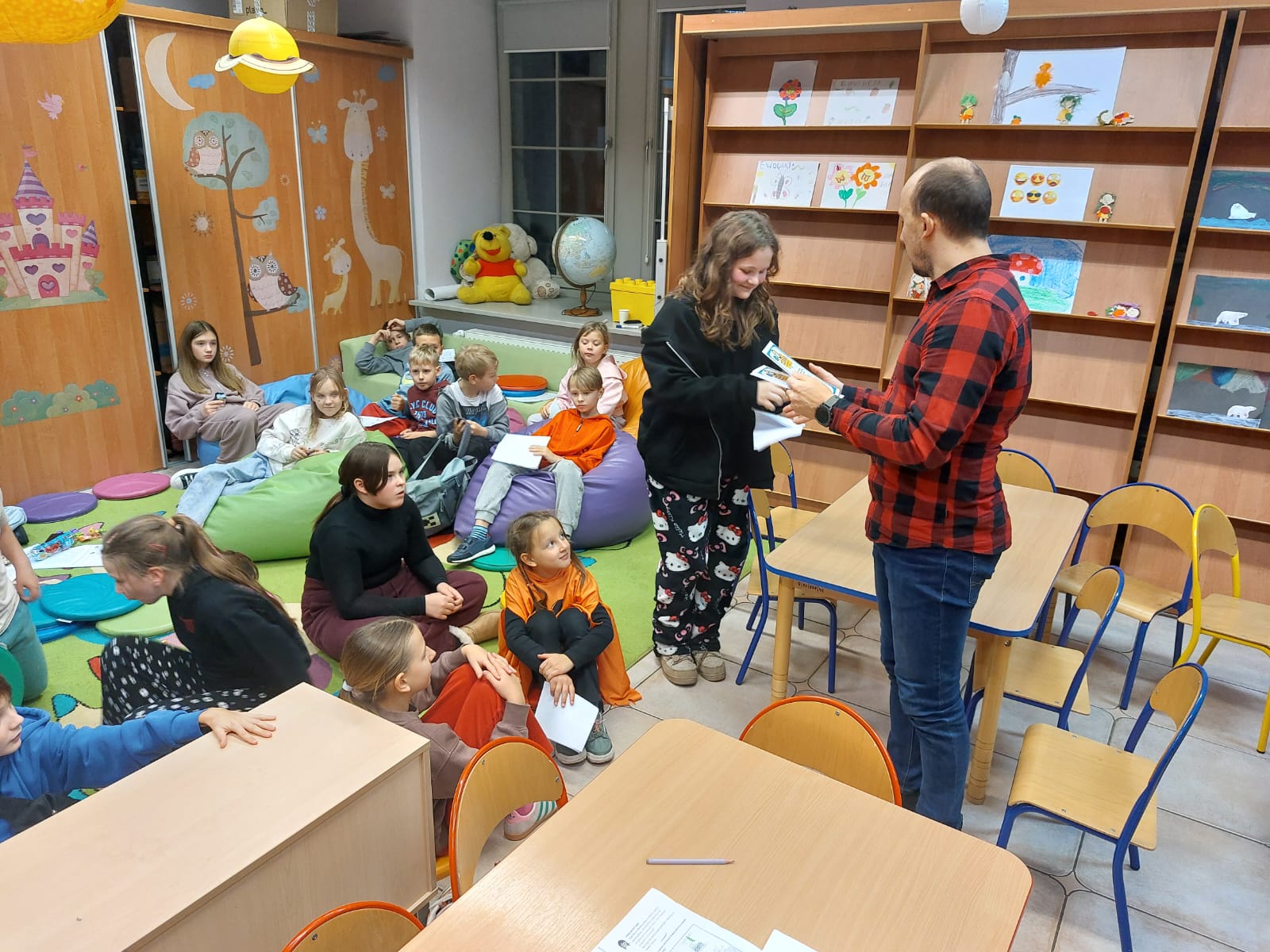 Dziękujemy autorowi oraz jego przemiłej ekipie za świetne odwiedziny i sprawienie, że nasi mali detektywi opuszczali bibliotekę z wypiekami na szczęśliwych buziach.