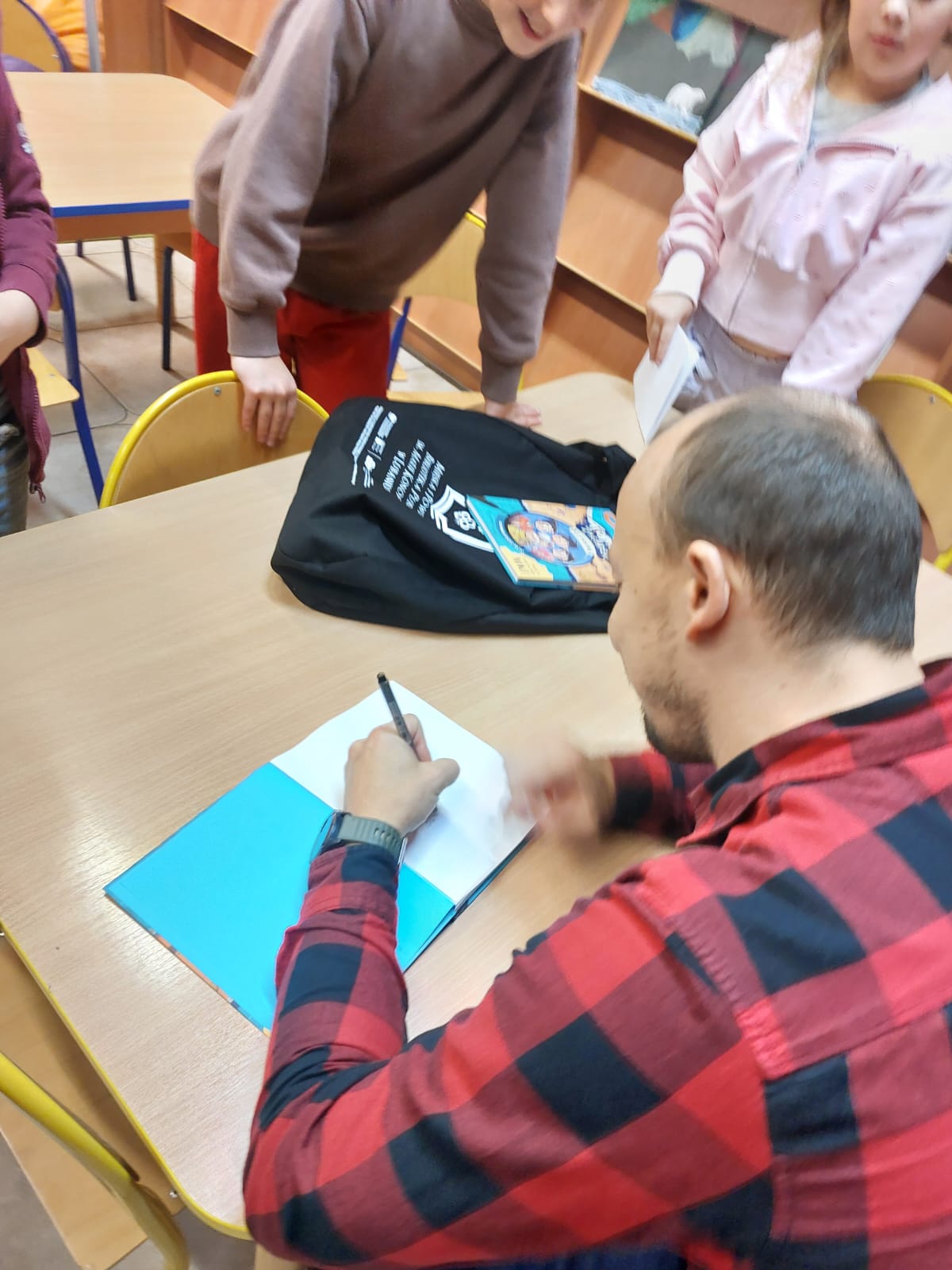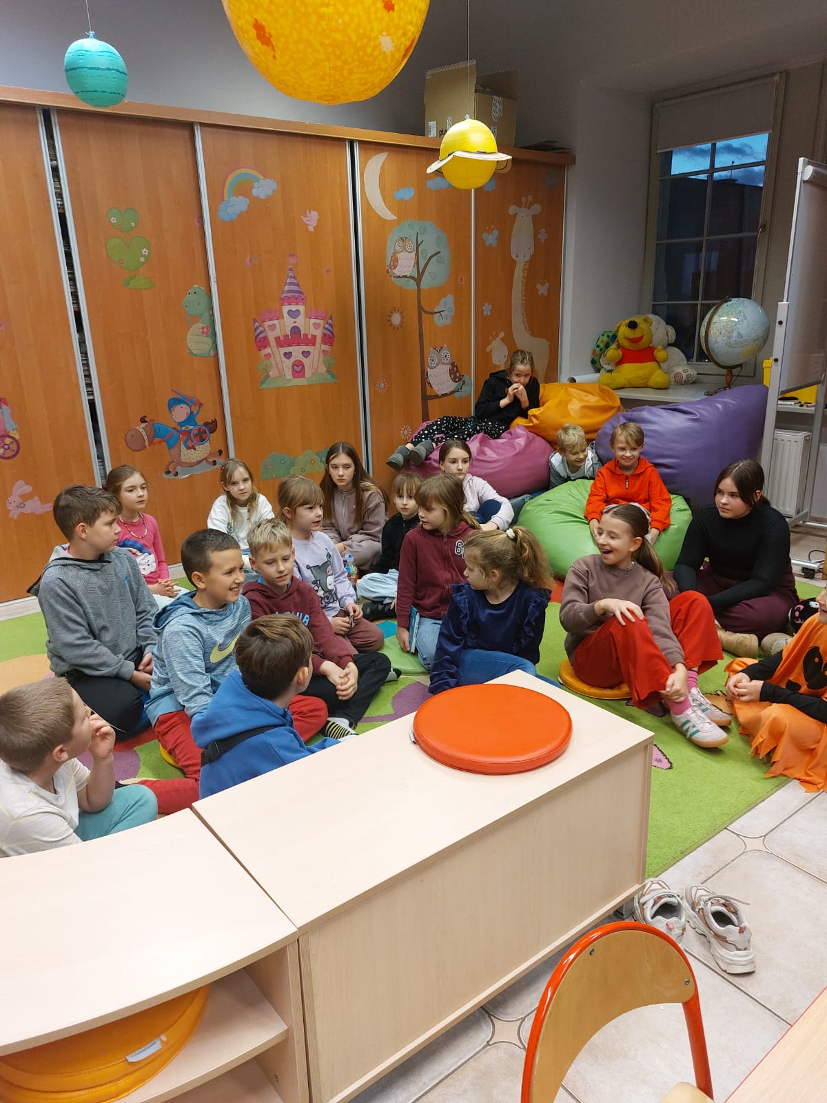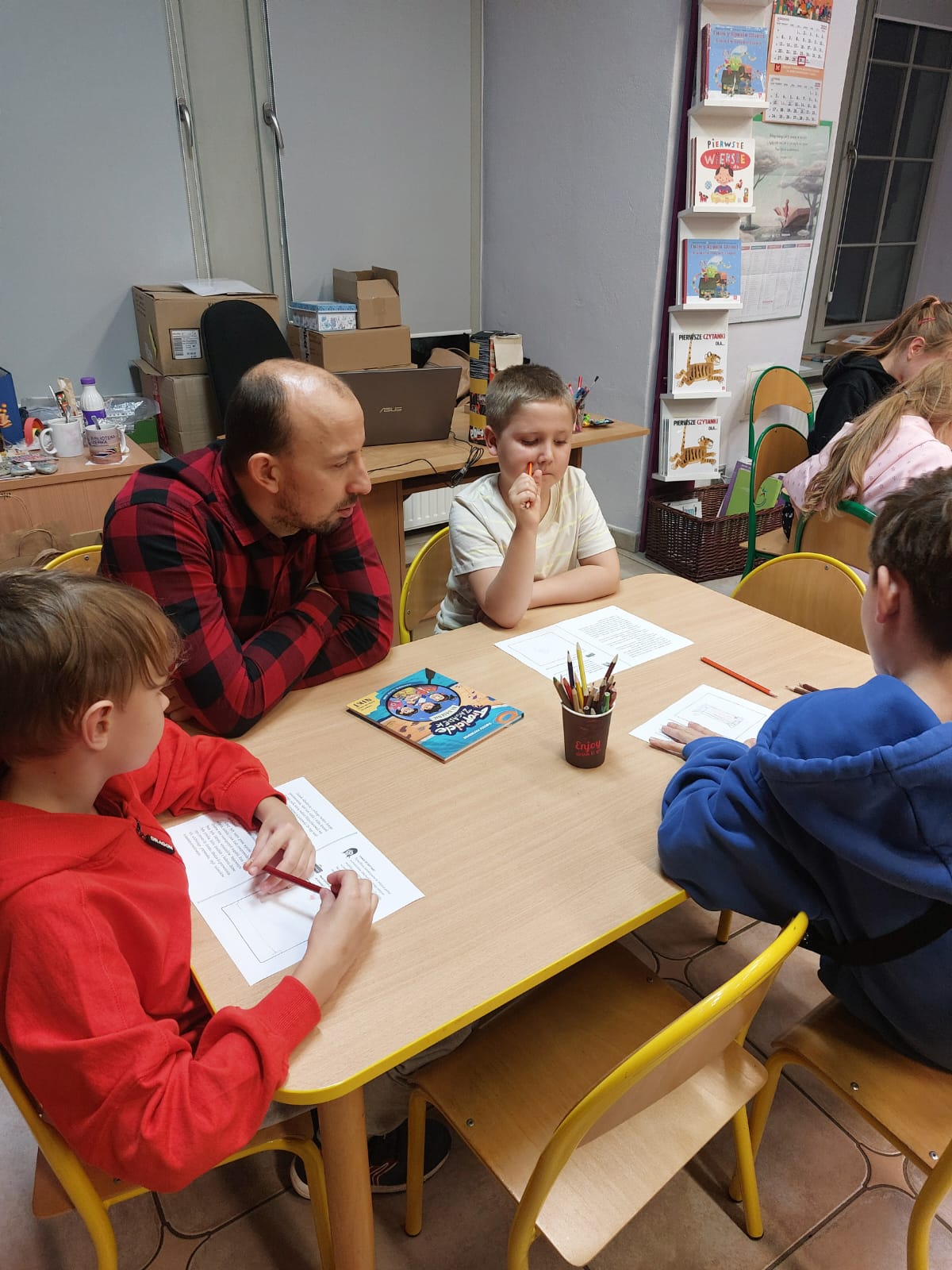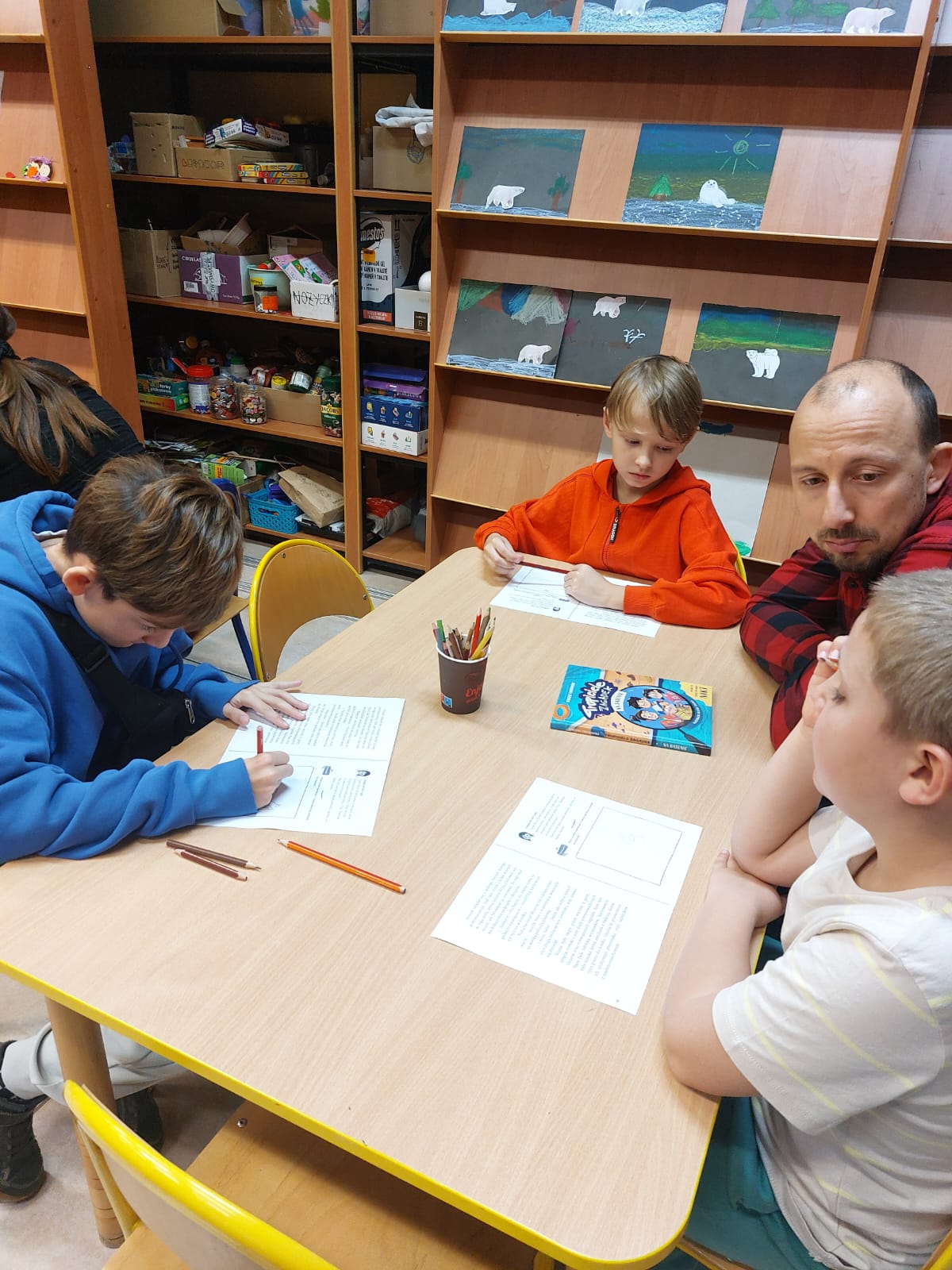 Dziękujemy autorowi oraz jego przemiłej ekipie za świetne odwiedziny i sprawienie, że nasi mali detektywi opuszczali bibliotekę z wypiekami na szczęśliwych buziach.