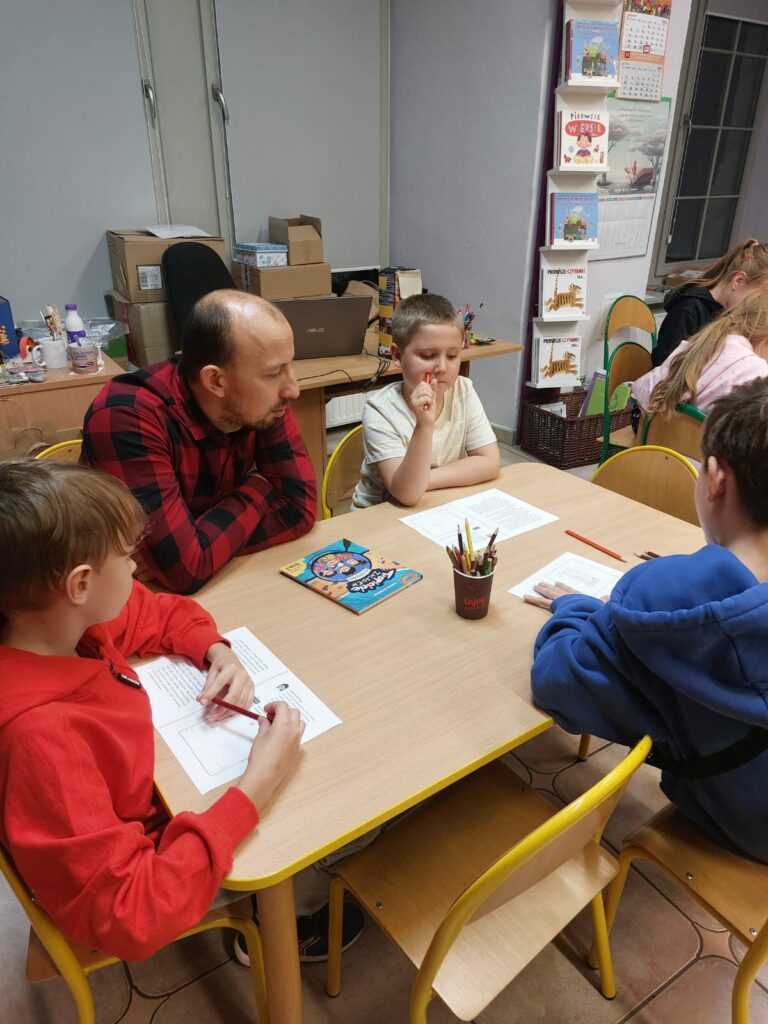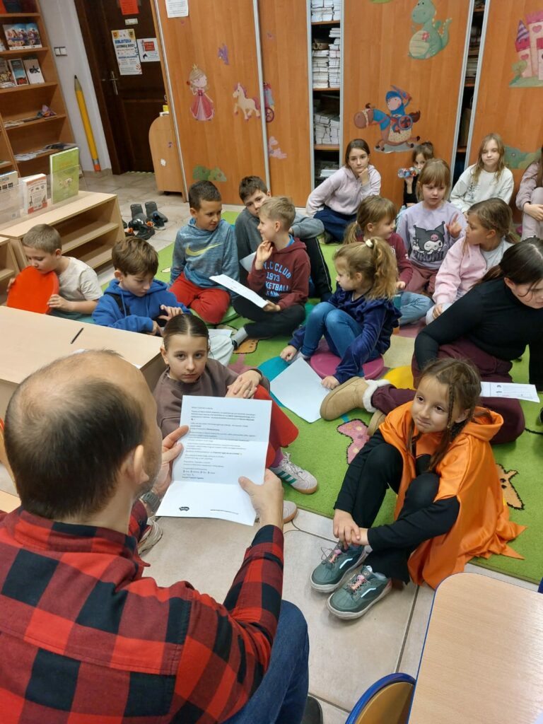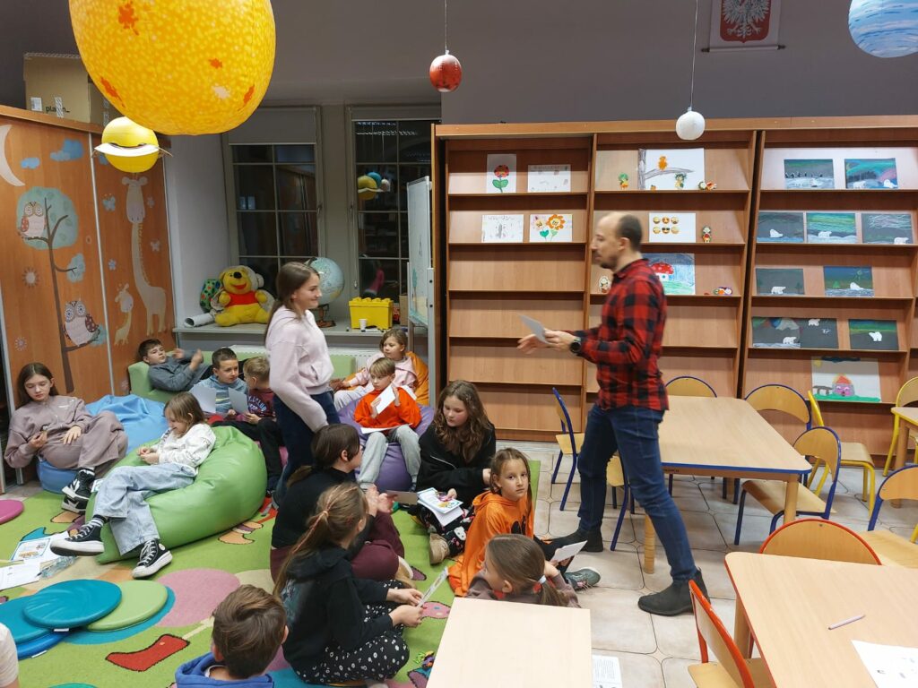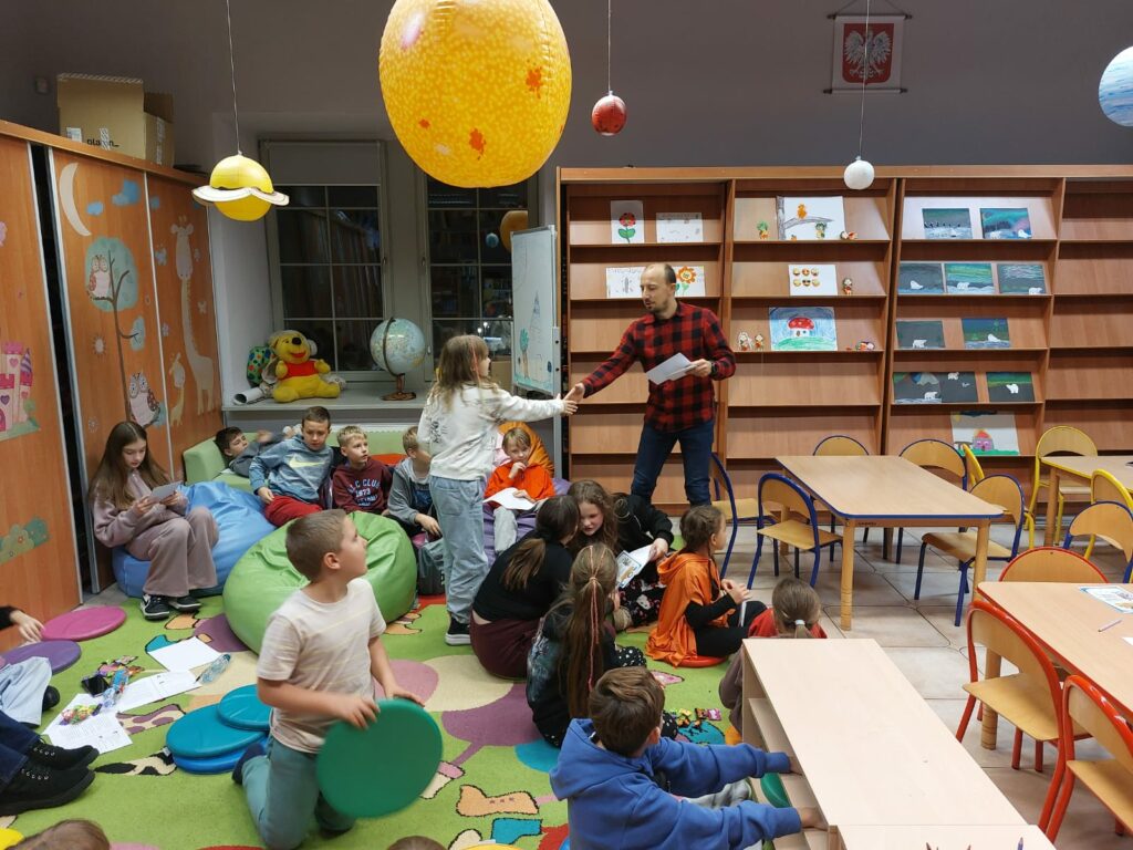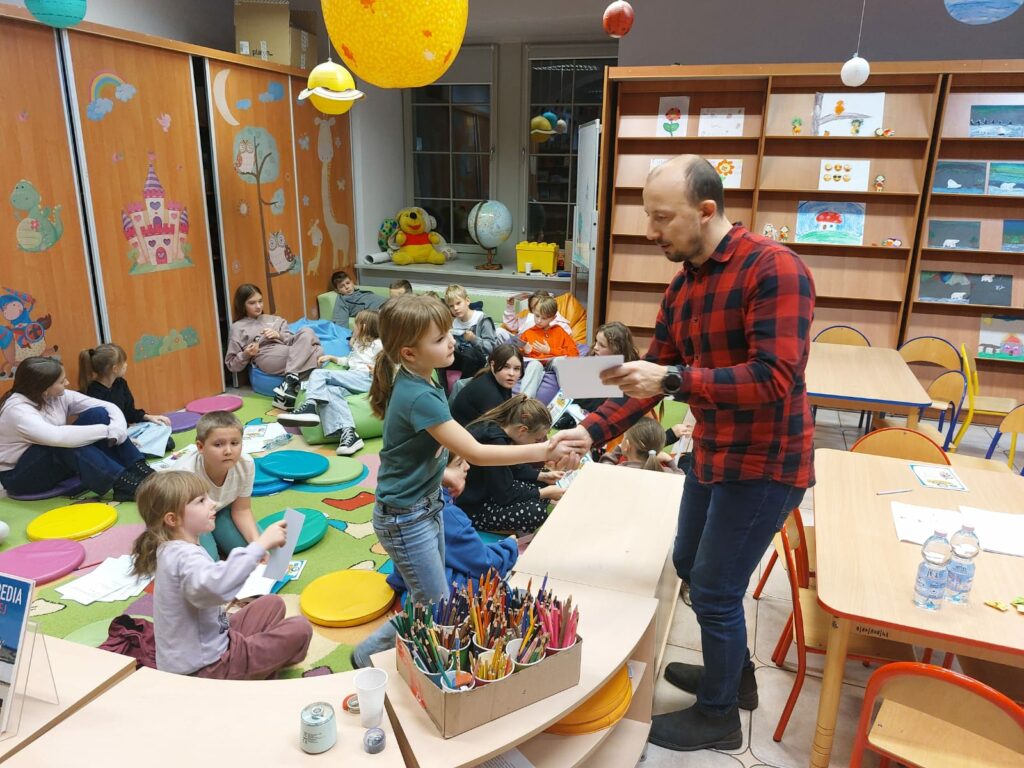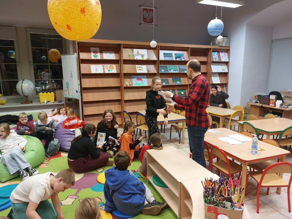 Wodzirejem imprezy był pan Bartosz Piotrowski – autor książki pt. „Tropiciele Zagadek. Na basenie”. Tropiciele Zagadek to genialna książka, która wciąga jak gra przygodowa, rozwija logiczne myślenie i spostrzegawczość, uczy, że nie każda tajemnica kryje złe intencje.