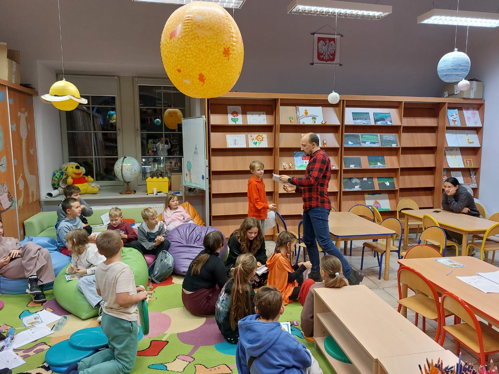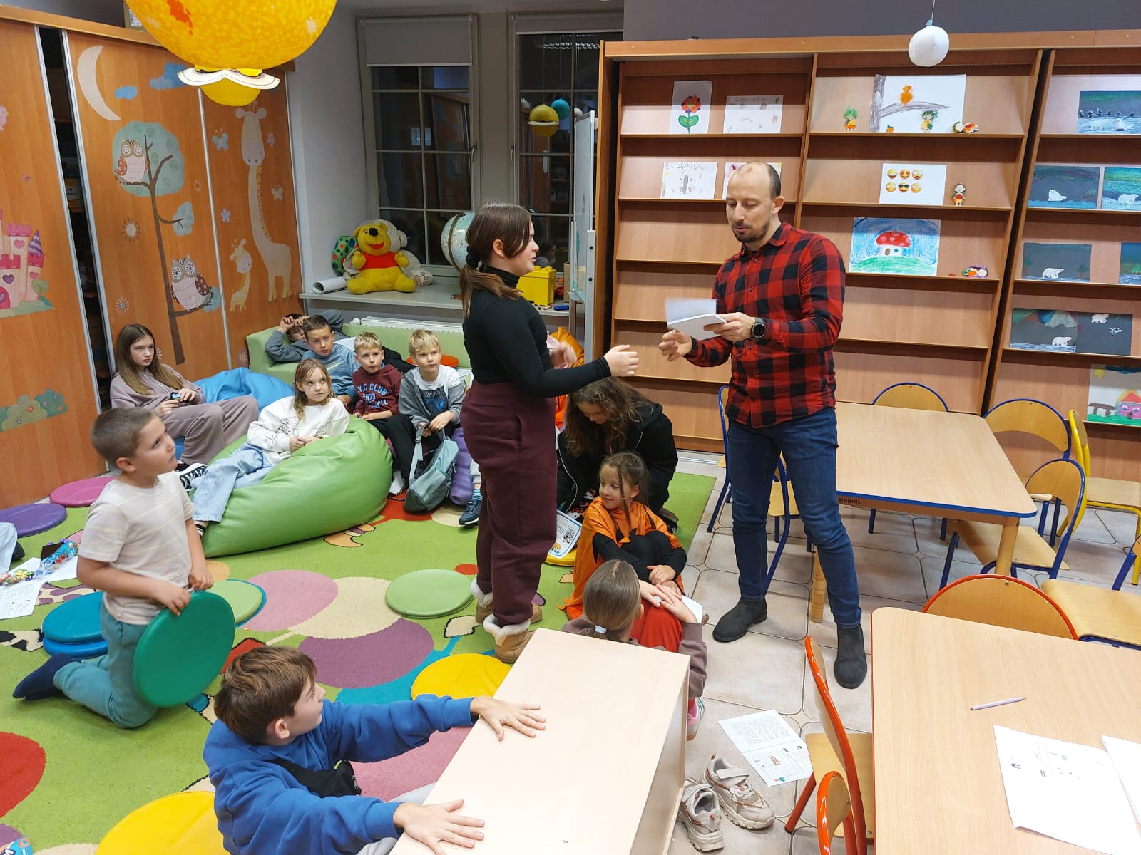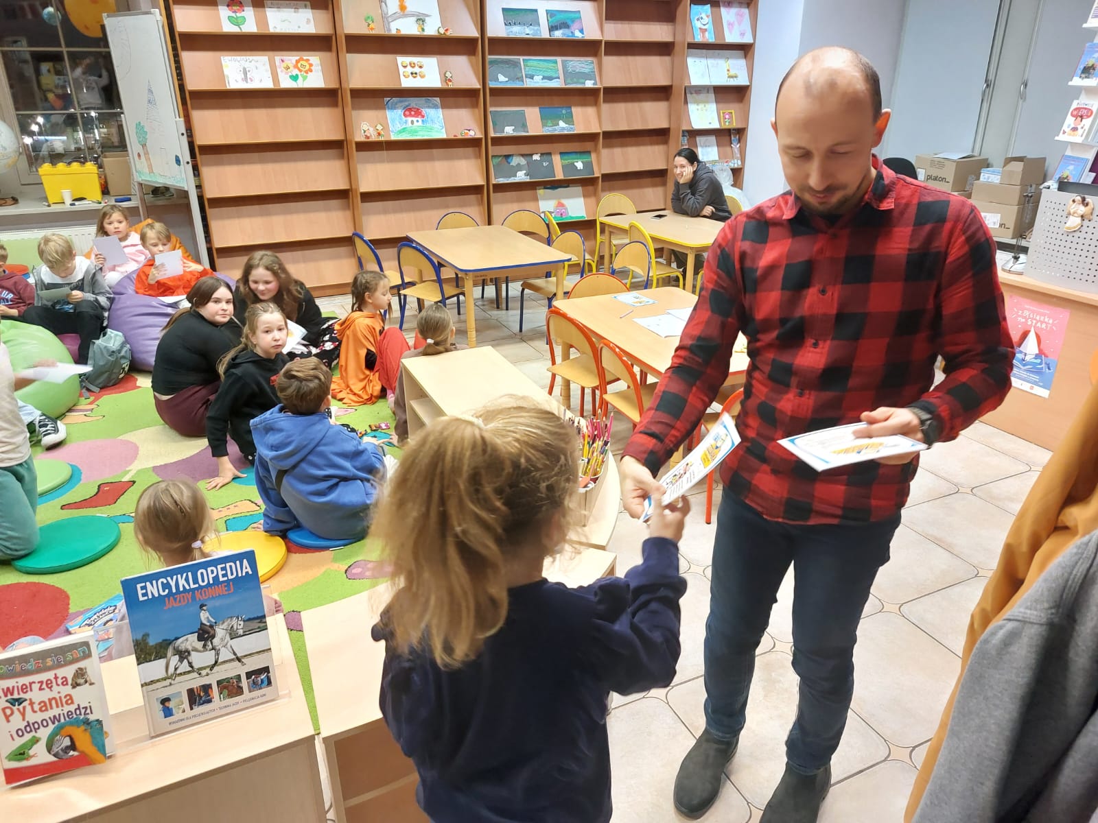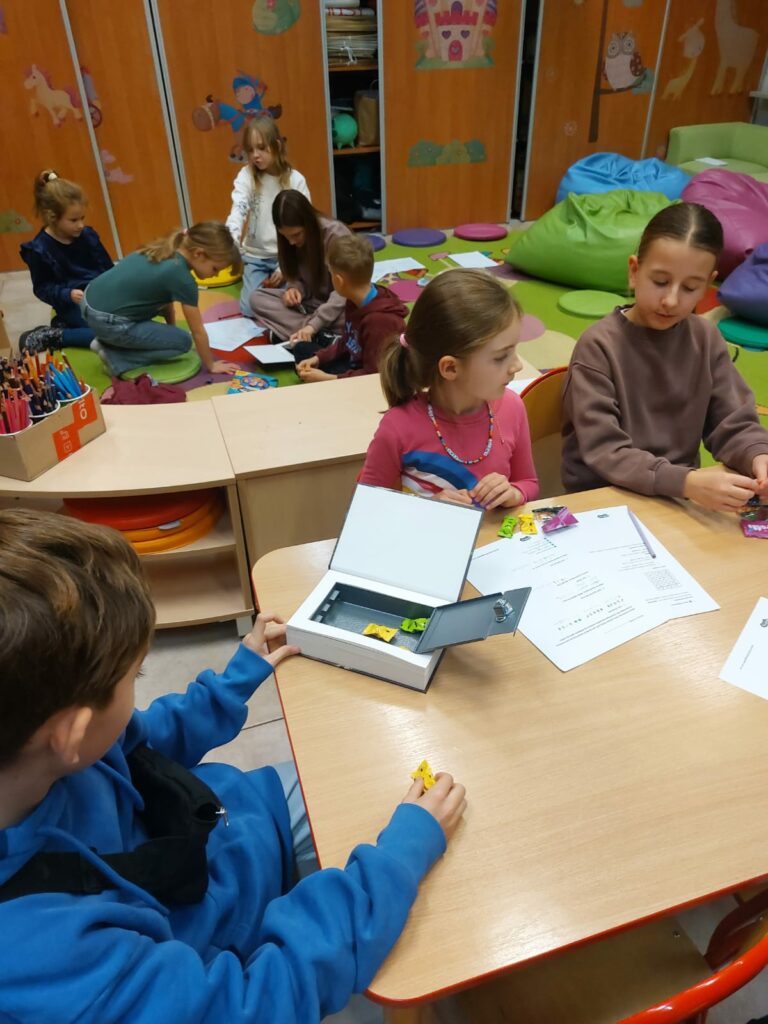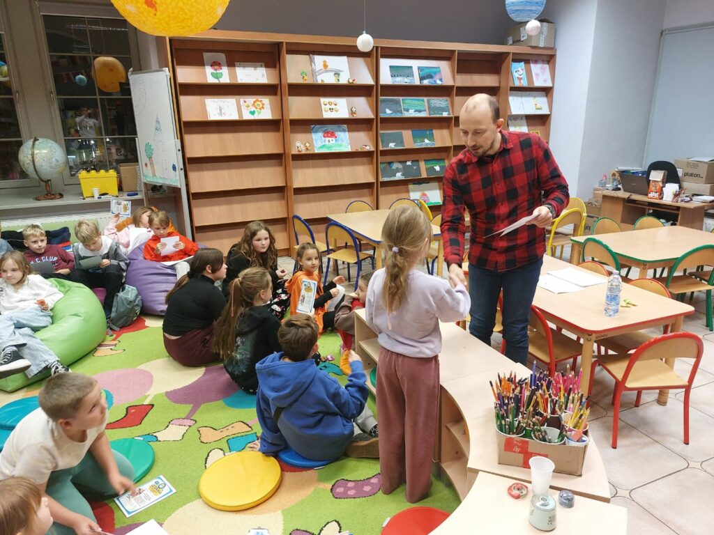 Wodzirejem imprezy był pan Bartosz Piotrowski – autor książki pt. „Tropiciele Zagadek. Na basenie”. Tropiciele Zagadek to genialna książka, która wciąga jak gra przygodowa, rozwija logiczne myślenie i spostrzegawczość, uczy, że nie każda tajemnica kryje złe intencje.