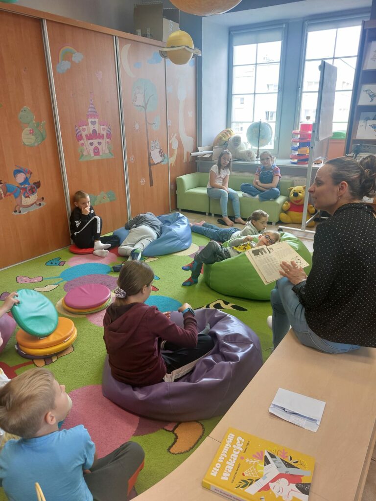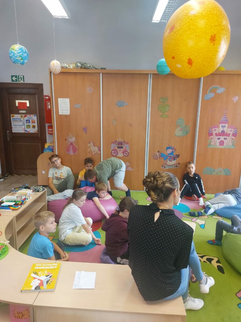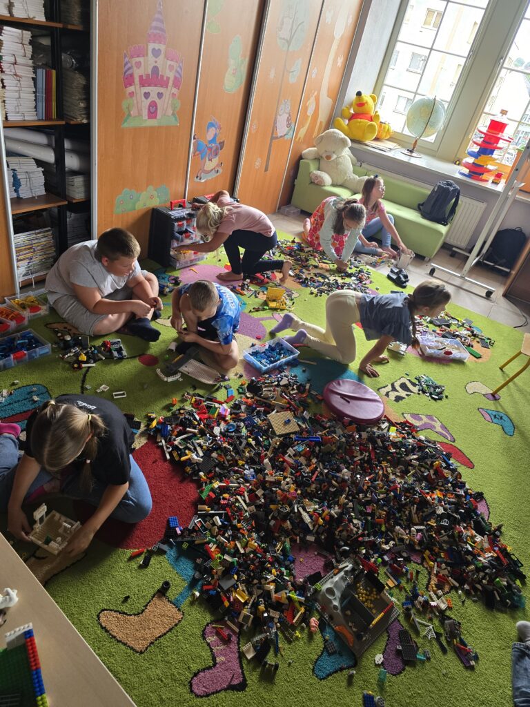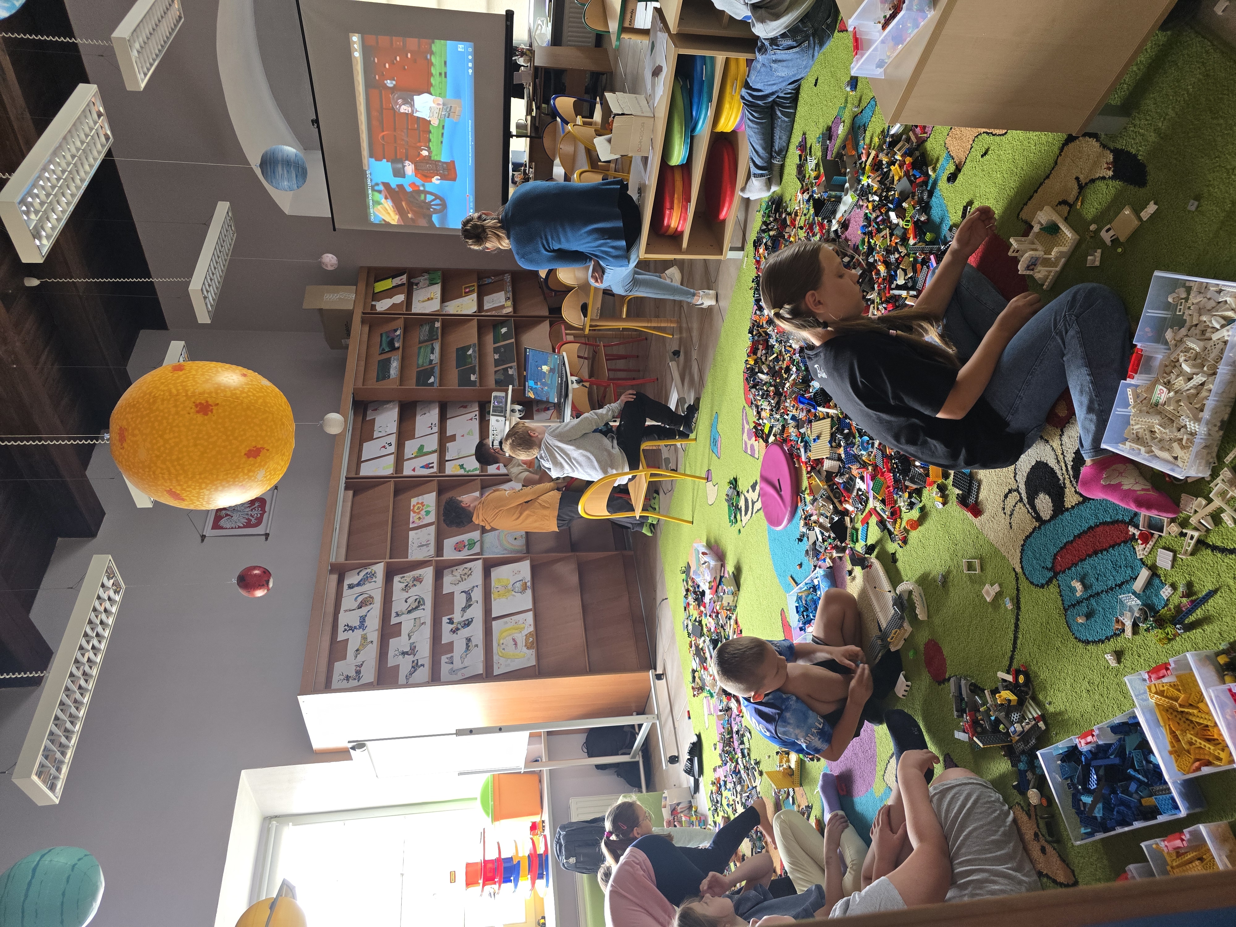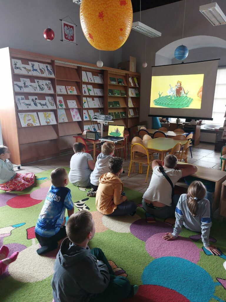 Kolejny dzień to spotkanie z youtuberem Poskładannym. Na rzutniku dzieci obejrzały półgodzinny filmik przedstawiający historię Polski, stworzony przy pomocy klocków Lego. Kolejnym krokiem było zanurzenie się w bibliotecznych zasobach klocków i stworzenie swoich własnych historii.