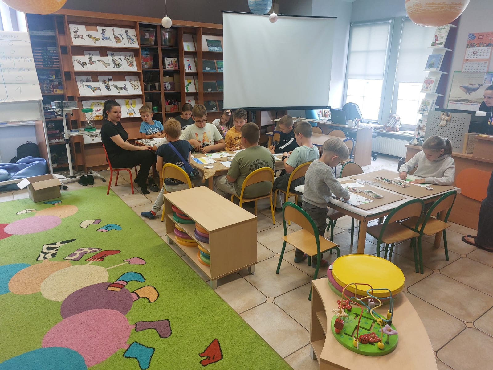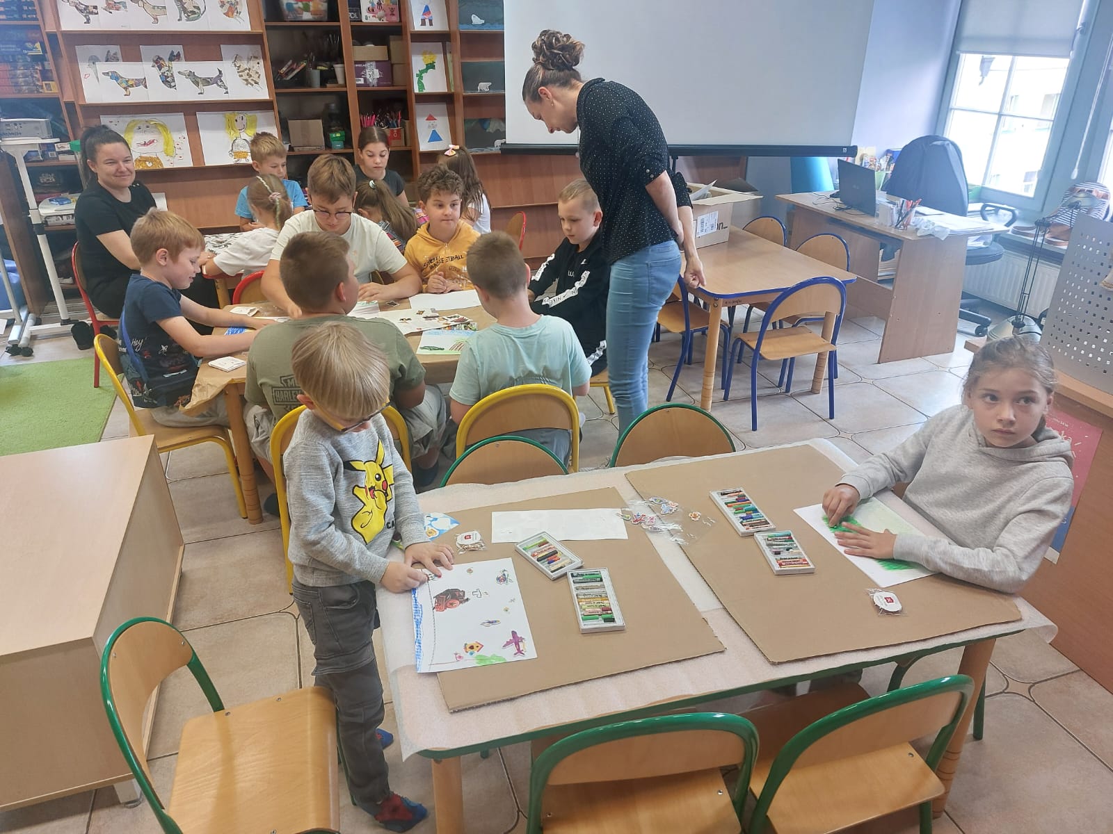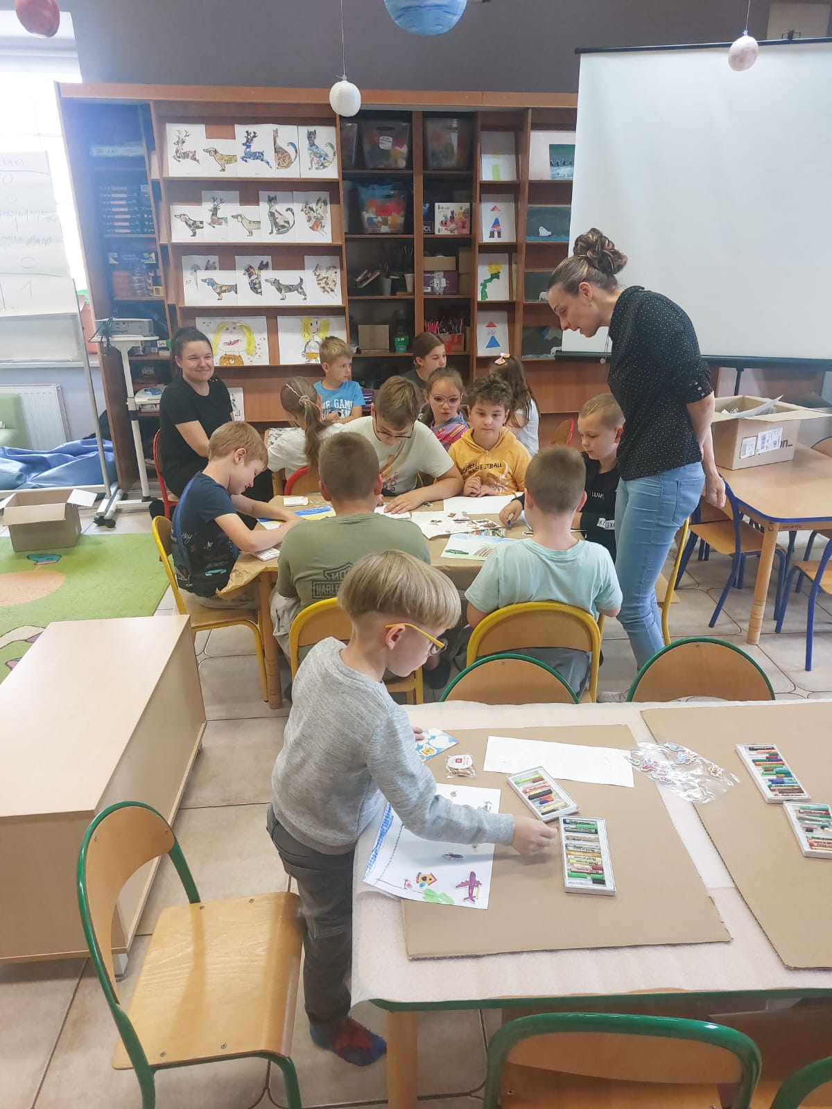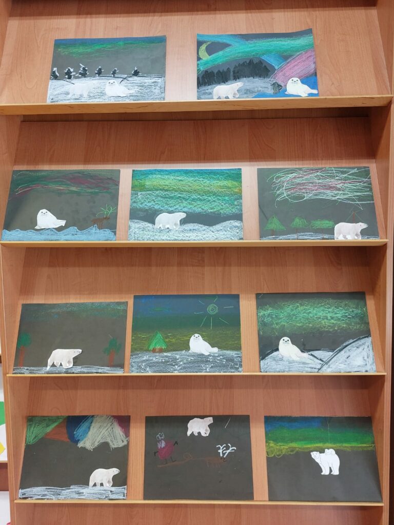 Pierwszy tydzień półkolonii w bibliotece zaczął się od zwiedzania Arktyki i Antarktydy z Nelą Podróżniczką; zwieńczeniem zajęć były piękne zorze polarne wykonane przez dzieci.