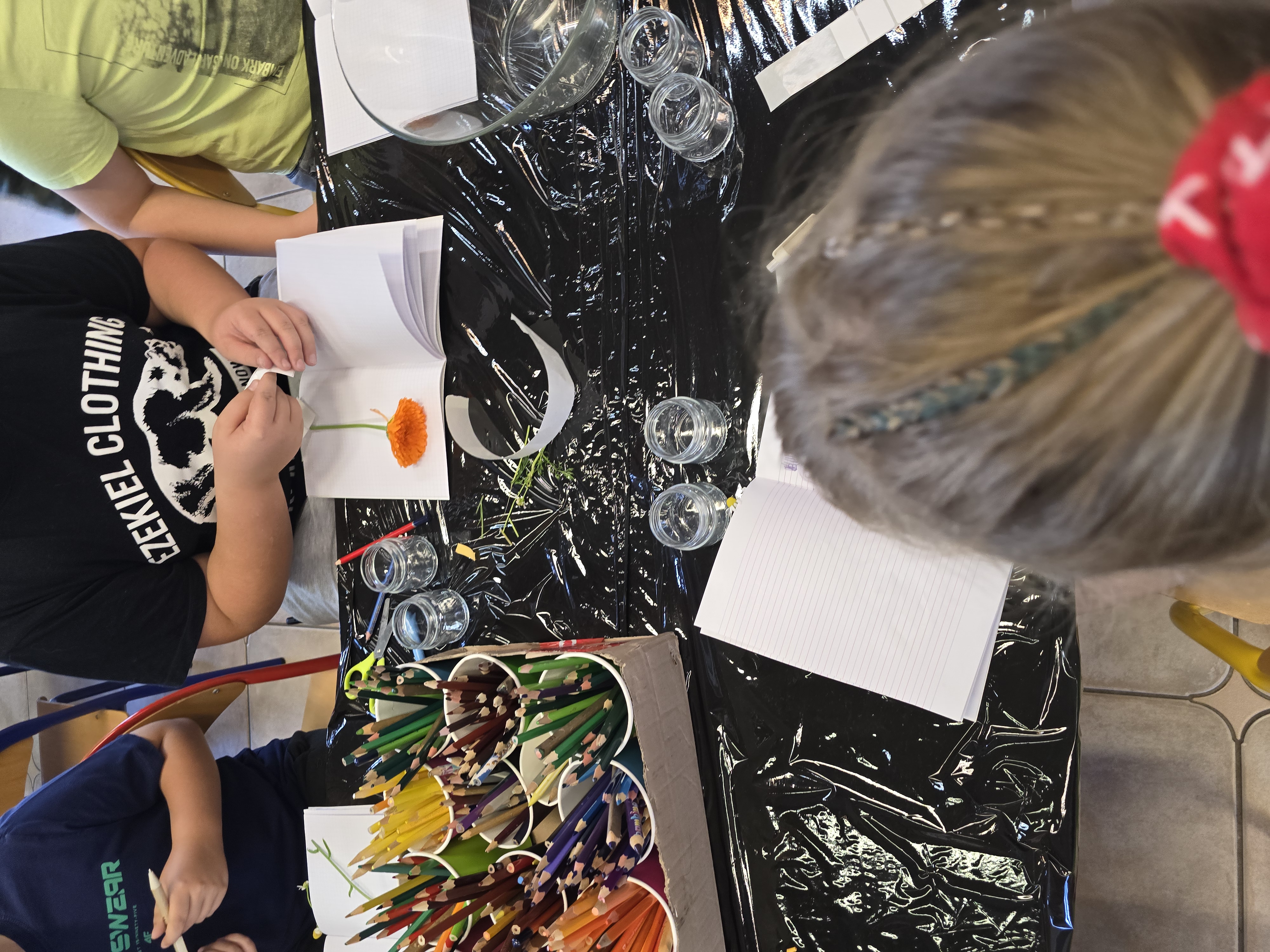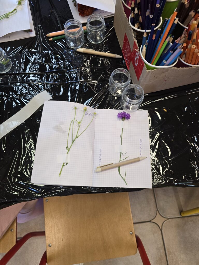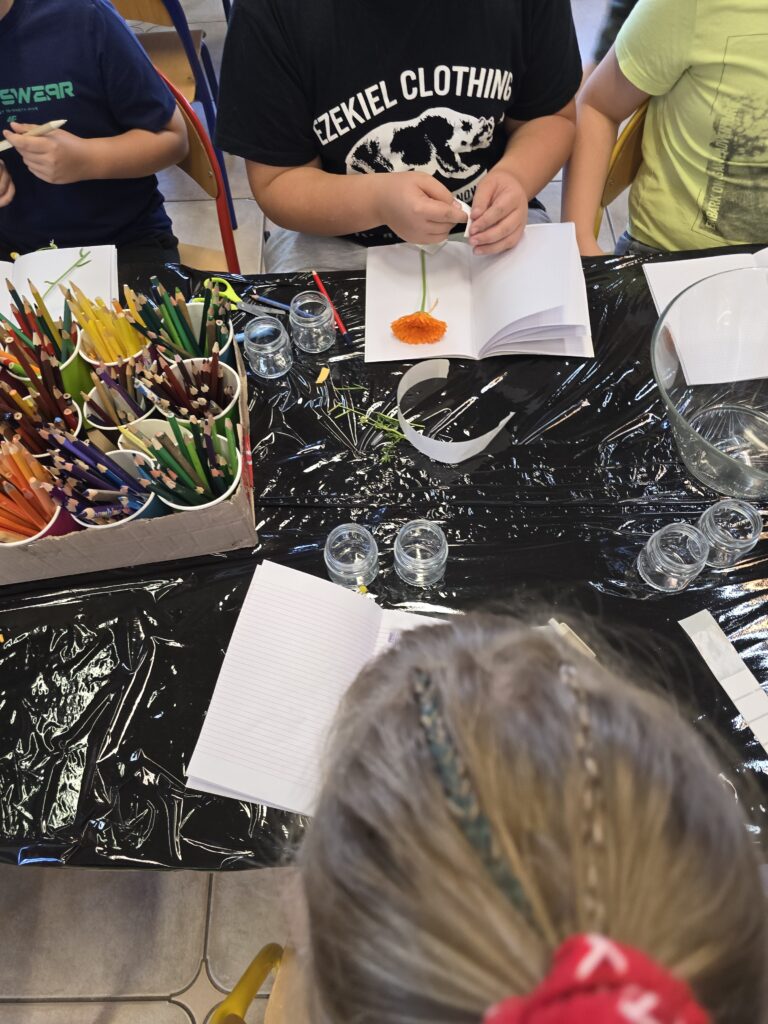 Kolejnym krokiem było stworzenie mini-zielnika- dzieci wklejały i opisywały poznane zioła w zeszytach. W ten sposób poznały miętę, nagietka, lawendę, aksamitkę, szałwię, koniczynę czerwoną, rumianek, krwawnik, bławatka oraz ich zastosowanie w ziołolecznictwie i kosmetyce.