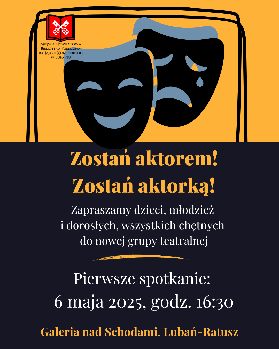 Zapraszamy dzieci, młodzież i dorosłych, wszystkich chętnych do nowej grupy teatralnej.